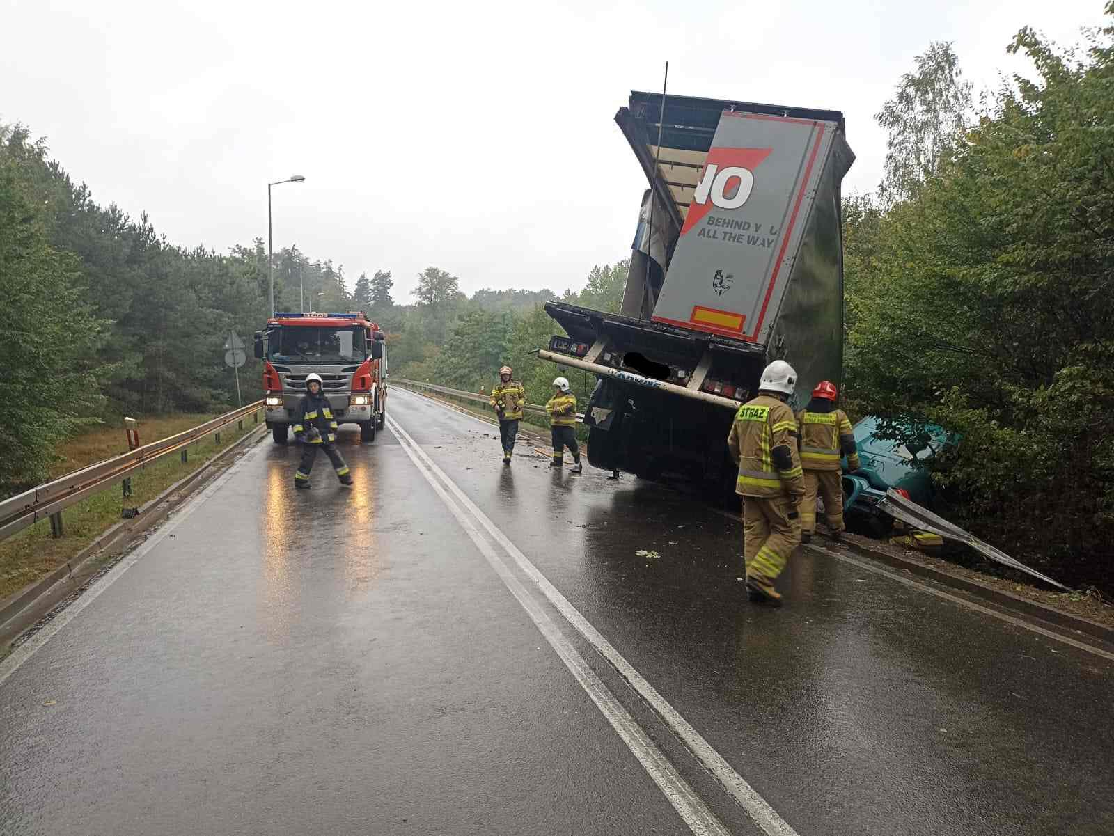 W dniu 10.09.2024 o godz. 09:19 do Stanowiska Kierowania Komendanta Powiatowego w Piszu wpłynęło zgłoszenie o zderzeniu się dwóch samochodów ciężarowych na drodze krajowej nr 58, na wjeździe do miejscowości Ruciane-Nida od miejscowości Pisz. Po dojeździe na miejsce zdarzenia pierwszych zastępów zastano kolizję samochodu dostawczego z samochodem ciężarowym (samochód dostawczy znajdował się w rowie, kabina samochodu ciężarowego znajdowała się w rowie, a naczepa blokowała jeden pas ruchu). Pojazdami podróżowały łącznie dwie osoby dorosłe. Na szczęście nikomu nic poważnego się nie stało. Po przebadaniu osób przez Zespół Ratownictwa Medycznego (ZRM) pozostały one na miejscu zdarzenia. Działania zastępów polegały na zabezpieczeniu miejsca zdarzenia, odłączeniu akumulatorów w pojazdach oraz pomocy w kierowaniu ruchem drogowym (ruch wahadłowy). Na czas działań odcinek drogi był częściowo zablokowany. Na zdarzenie najechał Zastępca Warmińsko-Mazurskiego Komendanta Wojewódzkiego PSP str. bryg Mariusz Gęsicki wraz z grupą operacyjną, przejmując dowodzenie nad akcją. W działaniach brały udział zastępy z JRG Pisz, OSP Ruciane-Nida oraz OSP Wiartel w sile 18 ratowników.
