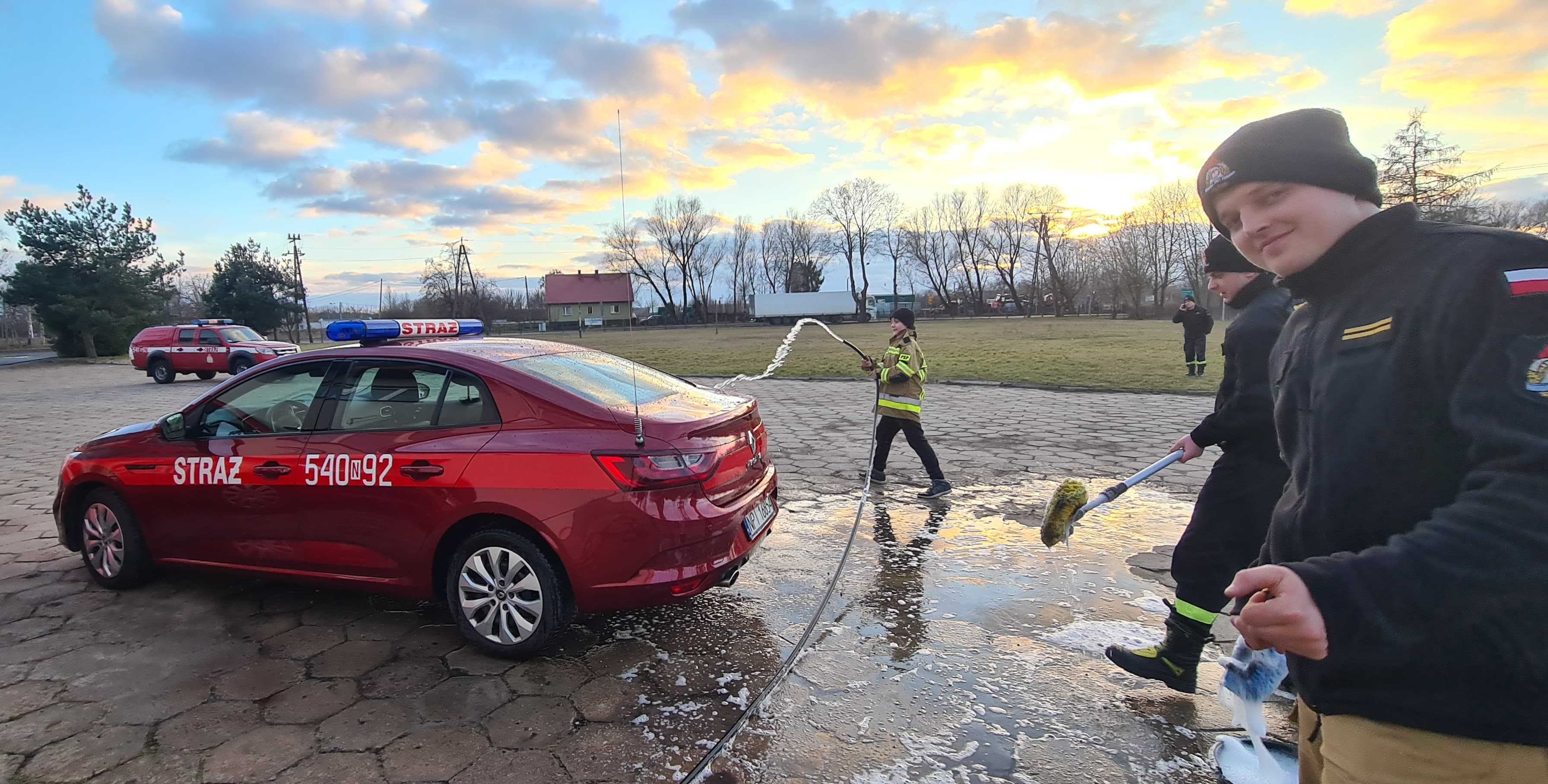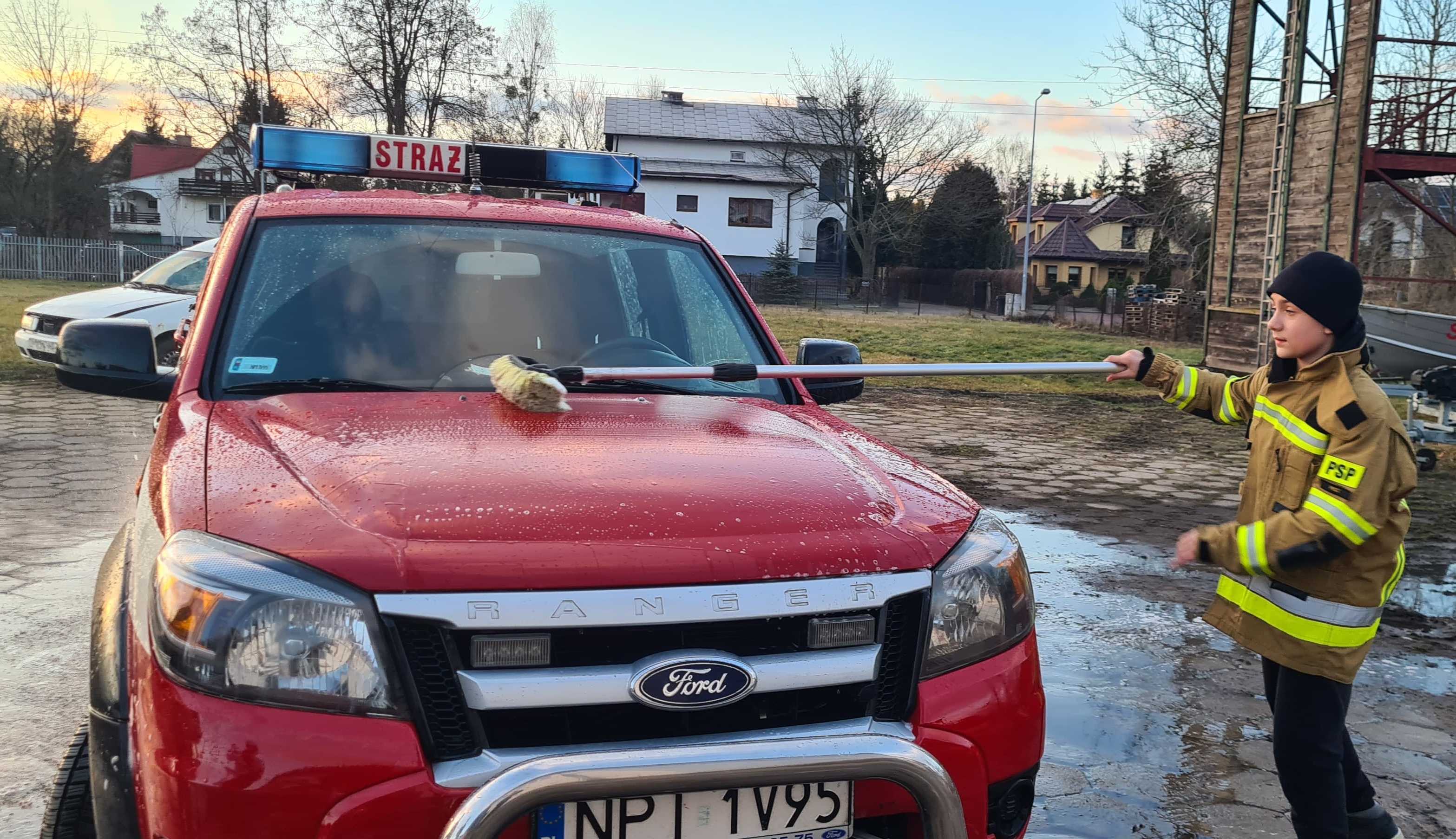 - wspólne mycie pojazdów po zakończonych ćwiczeniach - Igor miał również możliwość przekonania się, że nie tylko działaniami ratowniczo-gaśniczymi w straży się żyje. Utrzymanie pojazdów pożarniczych w czystości to równie ważny element służby, który nigdy nie jest zaniedbywany.
