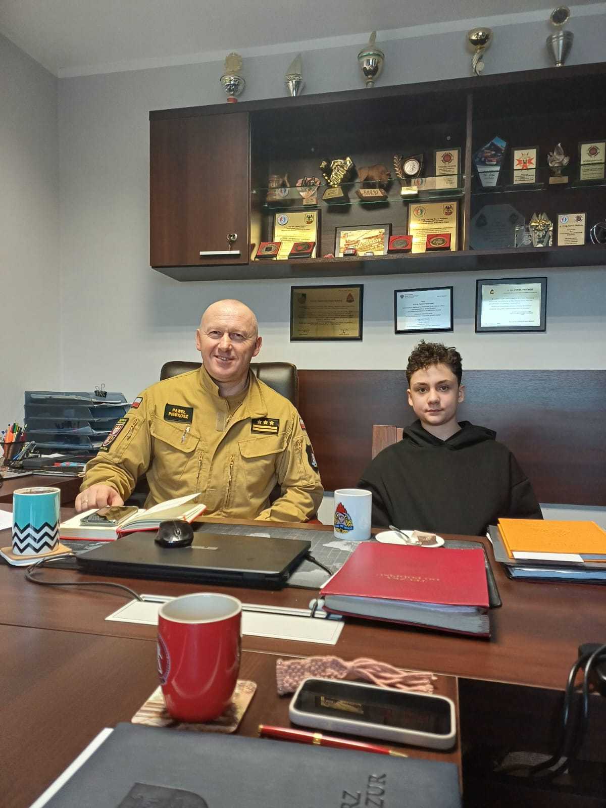 Cały dzień minął w wyjątkowej atmosferze, pełnej wrażeń, emocji i edukacji. Igor miał szansę nie tylko poznać tajniki pracy strażaków, ale także zobaczyć, jak zorganizowana jest praca w jednostce i jak wiele wysiłku oraz zaangażowania wymaga służba na rzecz społeczeństwa. Dziękujemy za udział w licytacji WOŚP i mamy nadzieję, że doświadczenie to na długo pozostanie w pamięci naszego gościa.