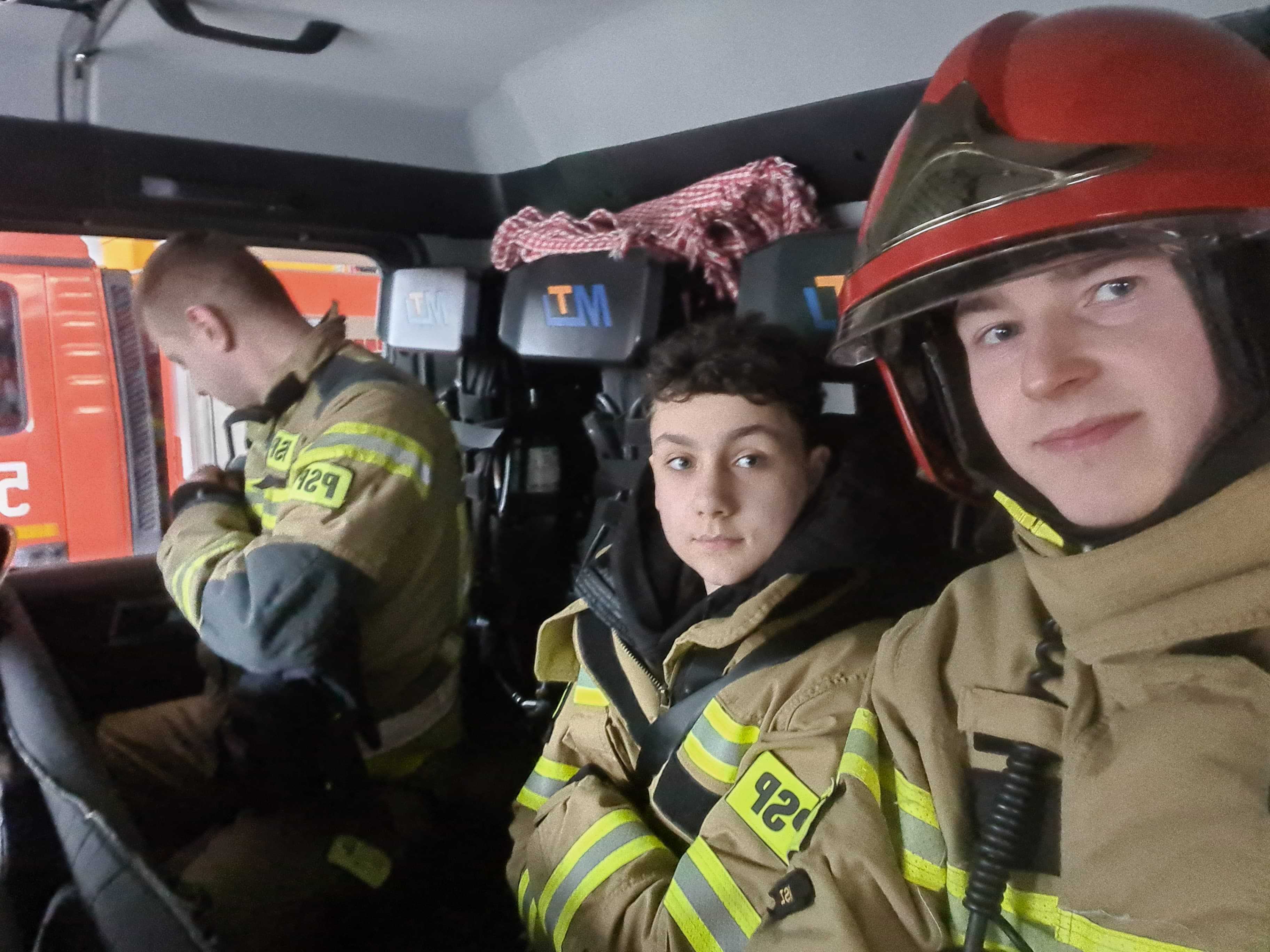 - przejażdżka samochodem strażackim – Igor miał również okazję wziąć udział w przejażdżce samochodem strażackim, co pozwoliło poczuć się jak strażak w trakcie realnej interwencji. Z bliska zobaczył, jak wygląda mobilność jednostki w sytuacjach kryzysowych.