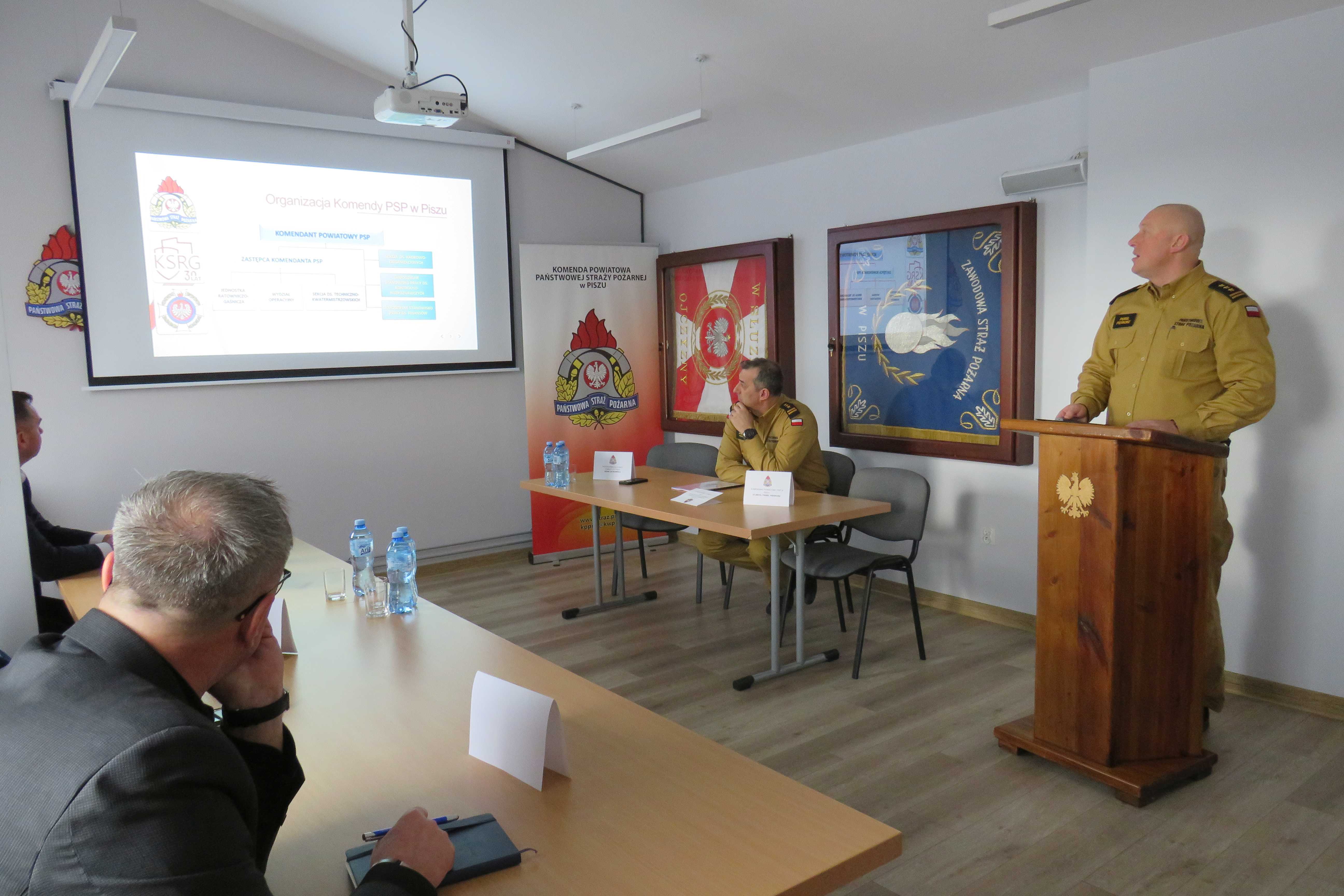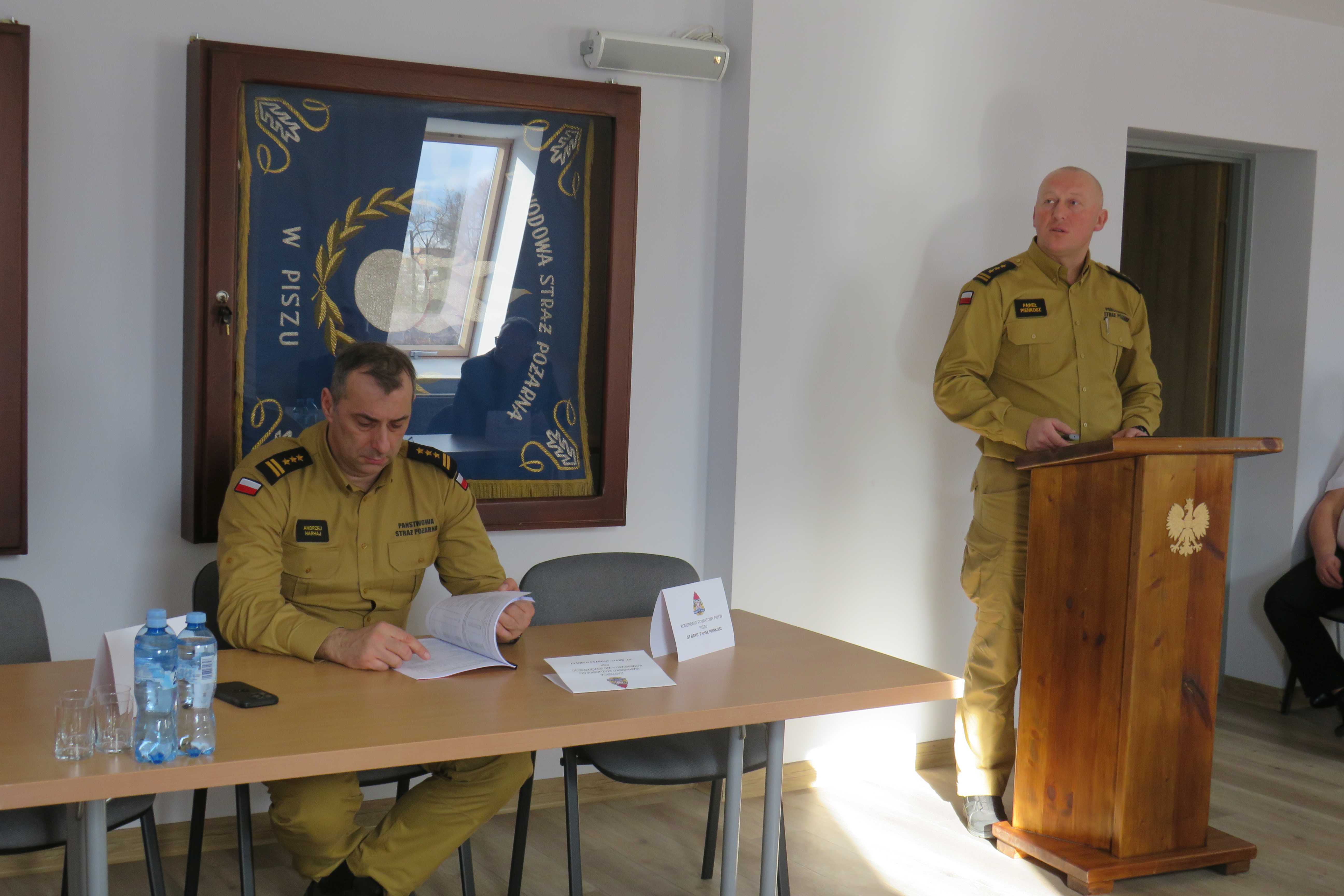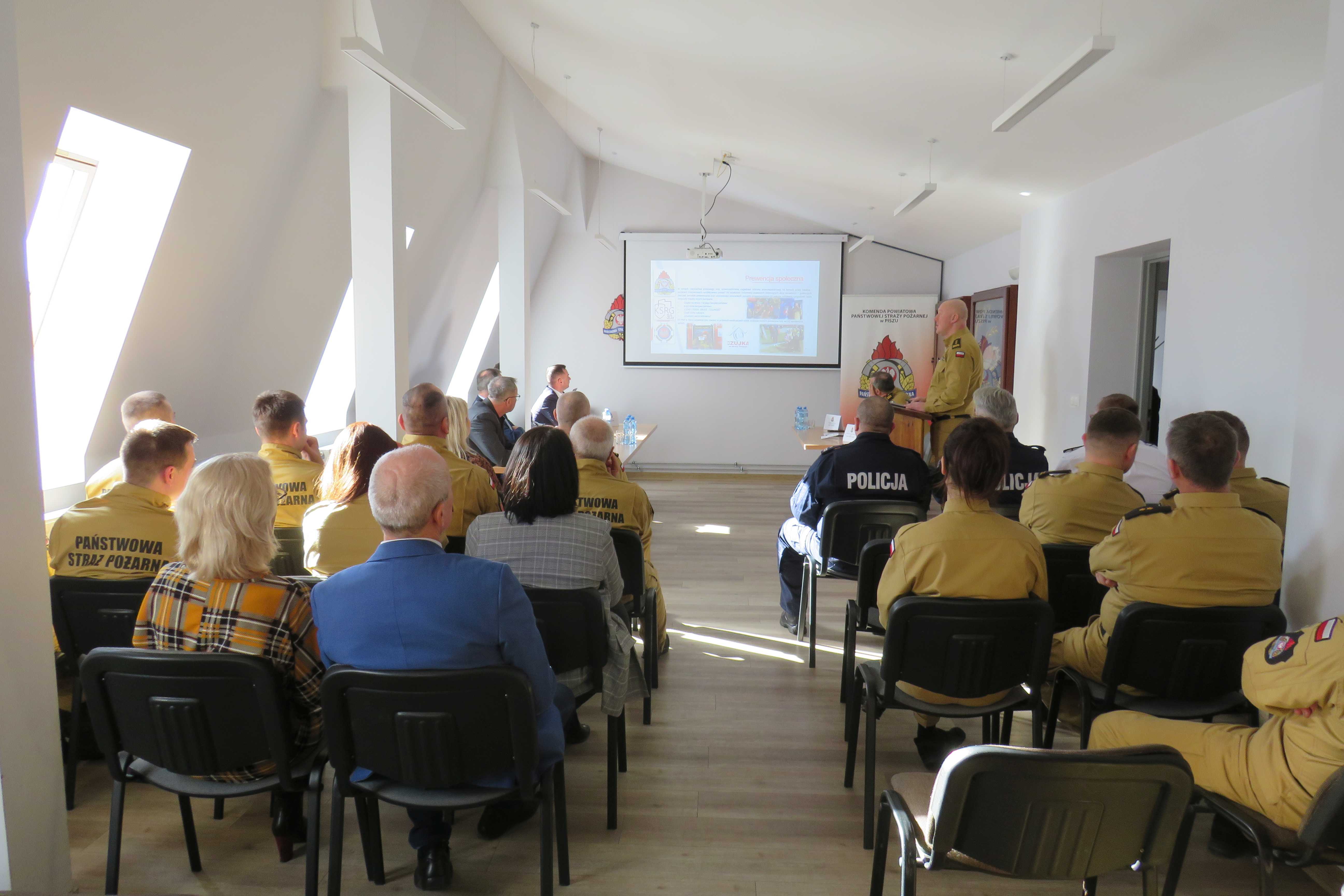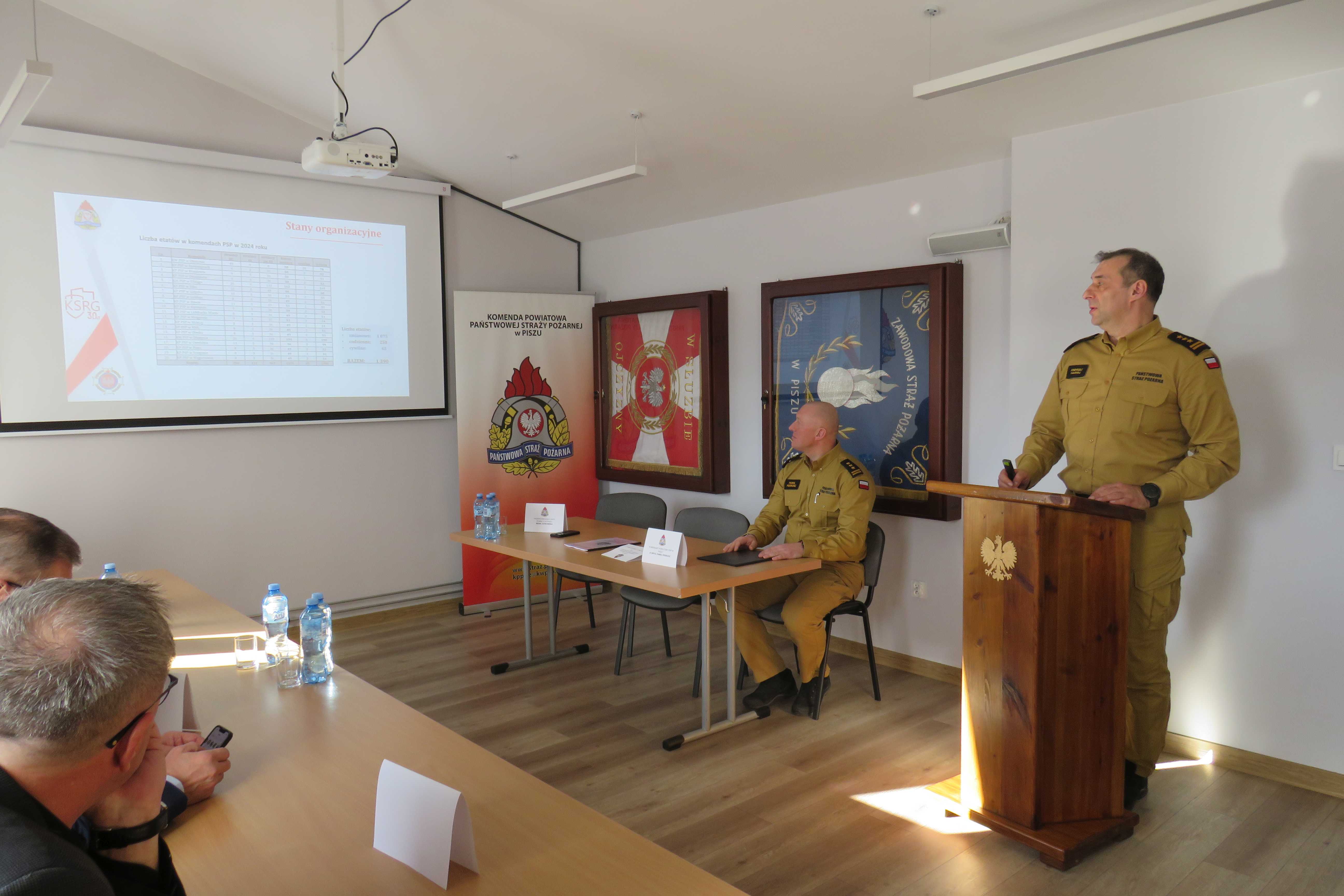 18 lutego br. odbyła się narada roczna podsumowująca działalność KP PSP w Piszu w 2024 r. W naradzie wziął udział Zastępca Warmińsko-Mazurskiego Komendanta Wojewódzkiego PSP st. bryg. Andrzej Harhaj, przedstawiciel samorządu powiatowego, samorządów gminnych, policji oraz Prezydium Zarządu Oddziału Wojewódzkiego ZOSP RP w Olsztynie. Podczas narady Komendant Powiatowy PSP w Piszu, st. bryg. Paweł Pieńkosz przedstawił w formie prezentacji multimedialnej informacje dotyczące działalności Komendy Powiatowej PSP w Piszu w roku 2024 oraz nakreślił główne kierunki działań i cele wyznaczone dla piskiej komendy na rok 2025. Skierował także słowa podziękowania dla władz samorządowych dziękując za całoroczną współpracę oraz otrzymane wsparcie finansowe. Po zakończeniu prezentacji głos zabrał Zastępca Warmińsko-Mazurskiego Komendanta Wojewódzkiego PSP st. bryg. Andrzej Harhaj, który podziękował m.in. wszystkim przybyłym gościom, władzom samorządowym, pracownikom cywilnym komendy, strażakom za codzienną służbę i zaangażowanie oraz przedstawił główne cele i kierunki działań Państwowej Straży Pożarnej w województwie warmińsko-mazurskim. W dalszej części odprawy głos zabrali: Burmistrz Orzysza Zbigniew Włodkowski oraz Burmistrz Pisza Dariusz Kiński, którzy w ciepłych słowach podziękowali strażakom zarówno PSP, jak i OSP za codzienną służbę oraz zapewnili w imieniu wszystkich samorządów gminnych o wzajemnej współpracy i wsparciu tym materialnym, jak i finansowym.