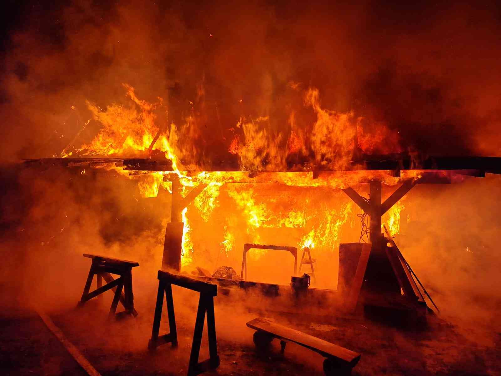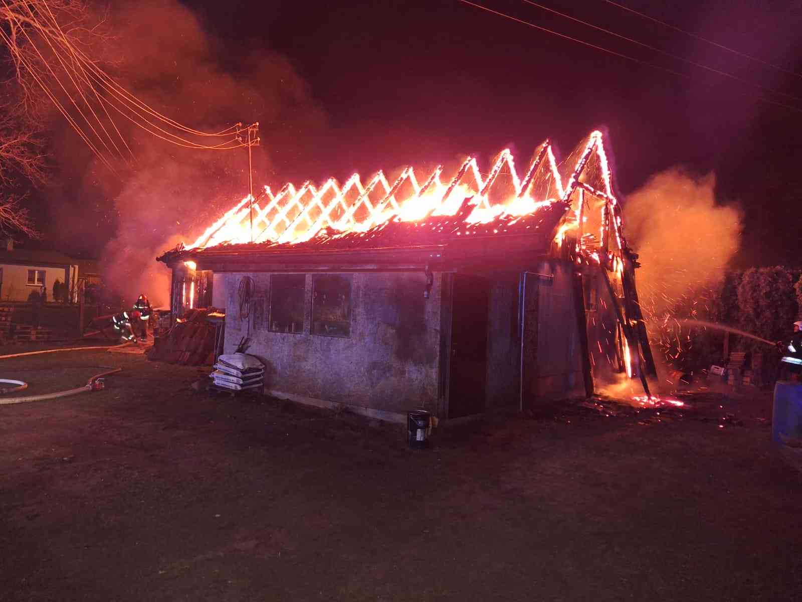 Nocny pożar stolarni w Warnowie