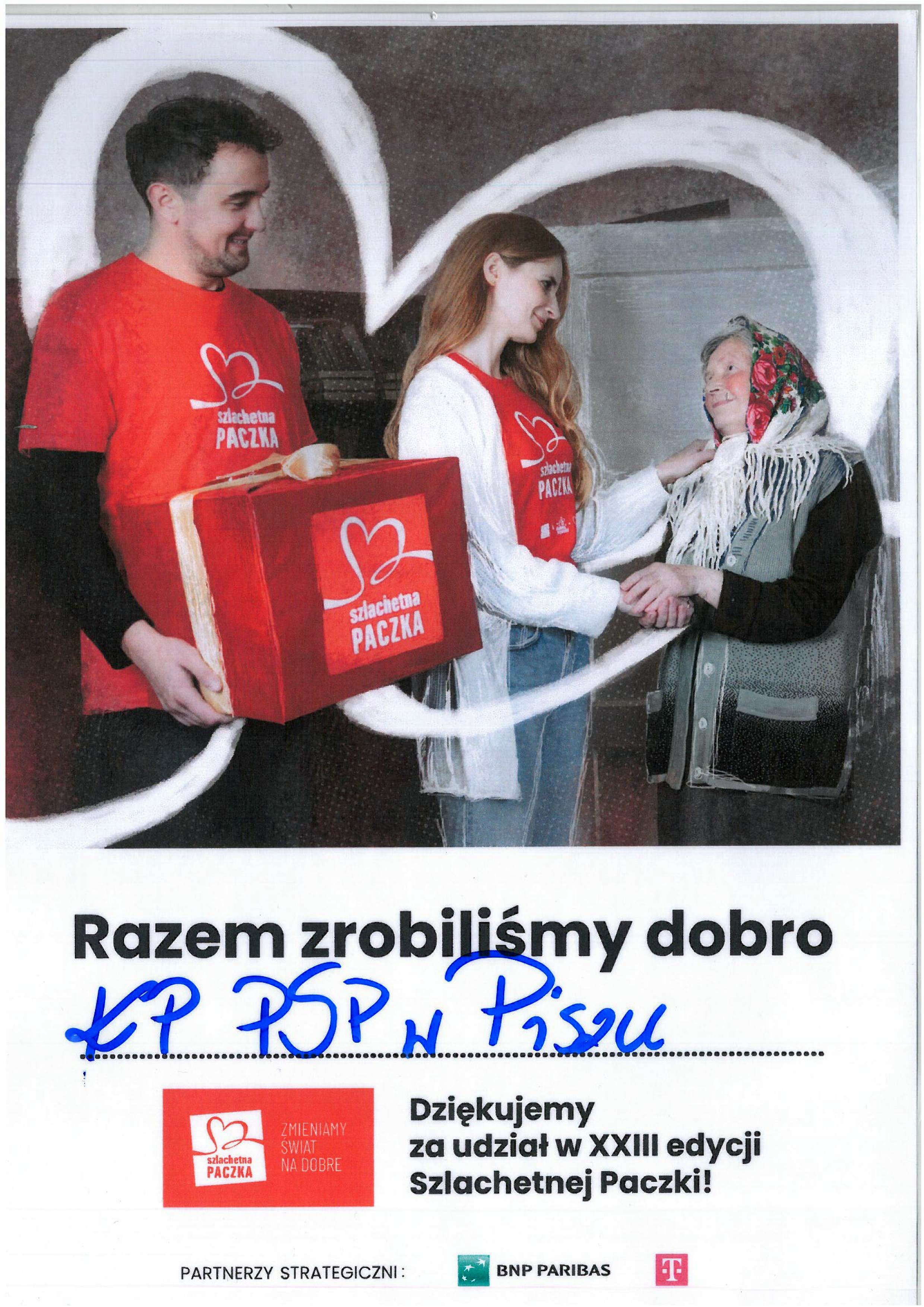 W grudniu funkcjonariusze i pracownicy cywilni Komendy Powiatowej Państwowej Straży Pożarnej w Piszu po raz kolejny włączyli się w akcję pomocy rodzinom „Szlachetna Paczka”. Tym razem strażacy w ramach akcji zakupili m.in. lodówkę, kuchnię mikrofalową, aparat telefoniczny, a także odzież i obuwie. Wśród podarunków nie zabrakło również materiałów szkolnych, środków czystości oraz artykułów spożywczych. Całość zakupów została przekazana 15 grudnia do magazynu mieszczącego się w „Nowym Ogólniaku”.