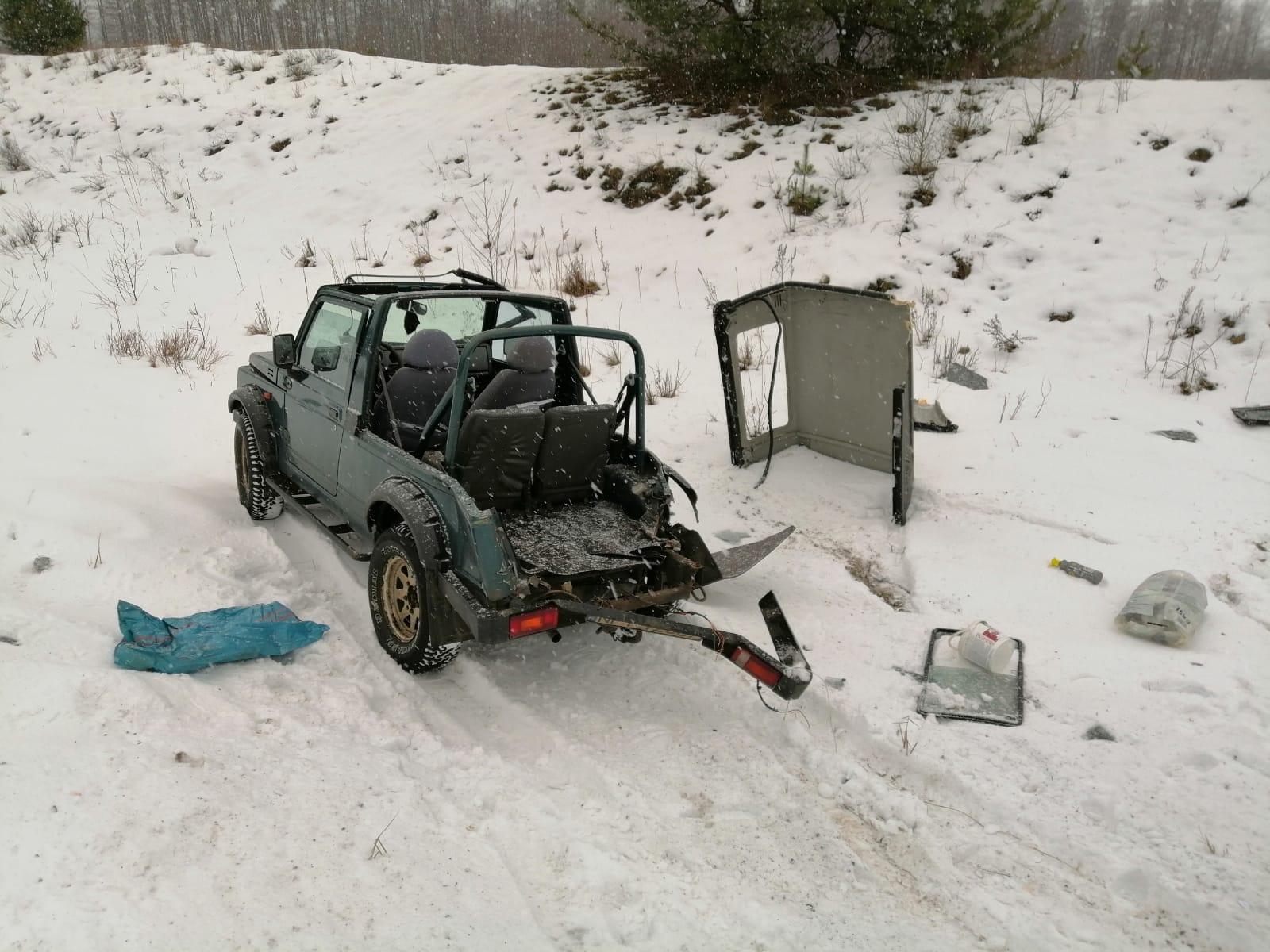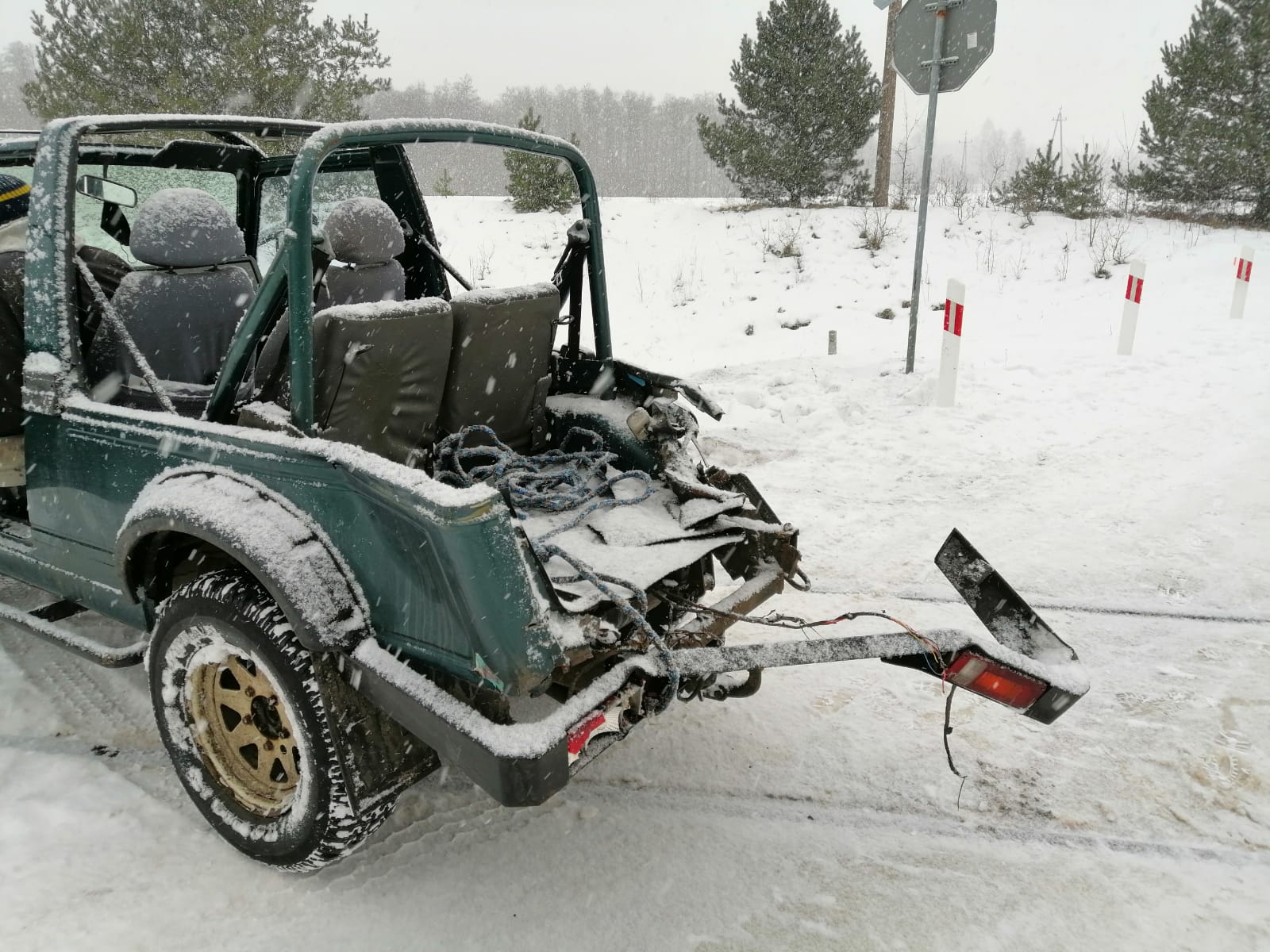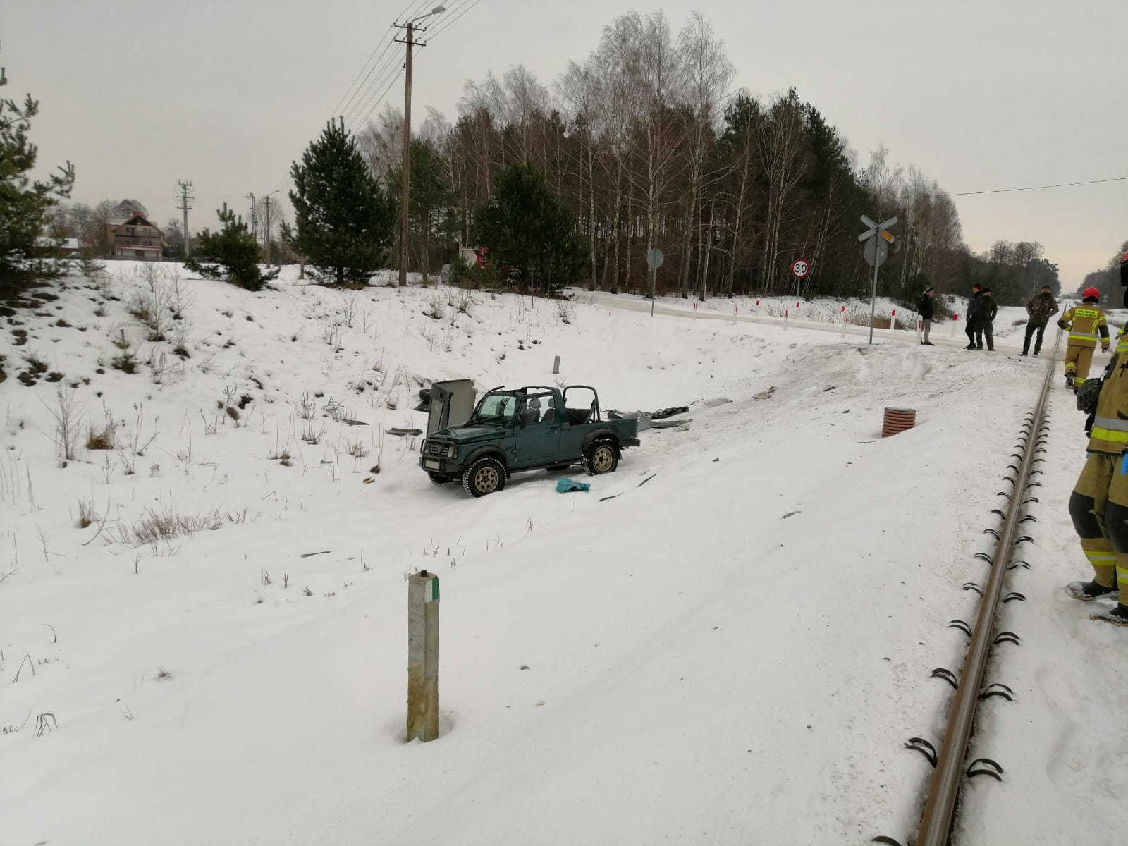 28 stycznia 2021 r., ok. godz. 14:00, na szlaku kolejowym Ełk-Olsztyn w miejscowości Snopki, doszło do zderzenia samochodu osobowego marki Suzuki Samuraj z szynobusem. Pojazdem podróżowały dwie osoby. W chwili przybycia jednostek straży pożarnej, samochód stał na kołach w rowie. Na szczęście kierowca i pasażer nie odnieśli żadnych obrażeń. Działania zastępów straży pożarnej polegały na zabezpieczeniu miejsca zdarzenia oraz odłączeniu akumulatora w pojeździe.