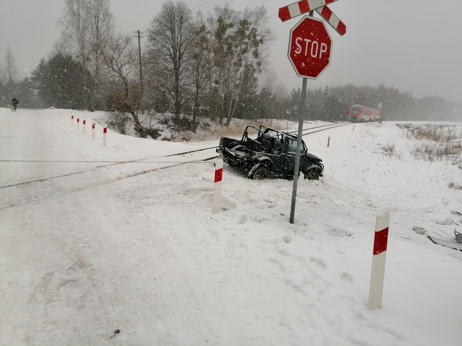 Snopki — zderzenie samochodu osobowego z szynobusem.