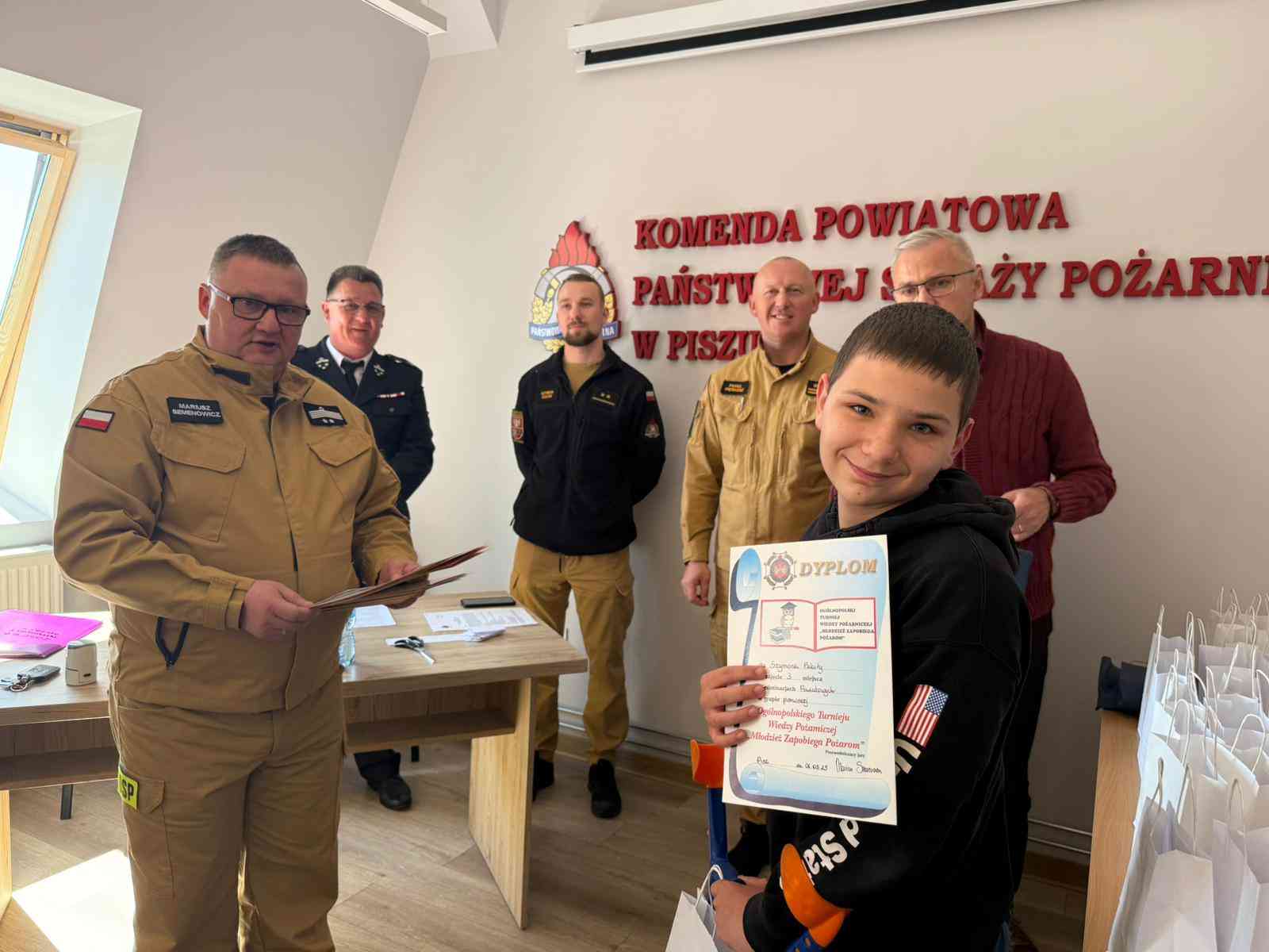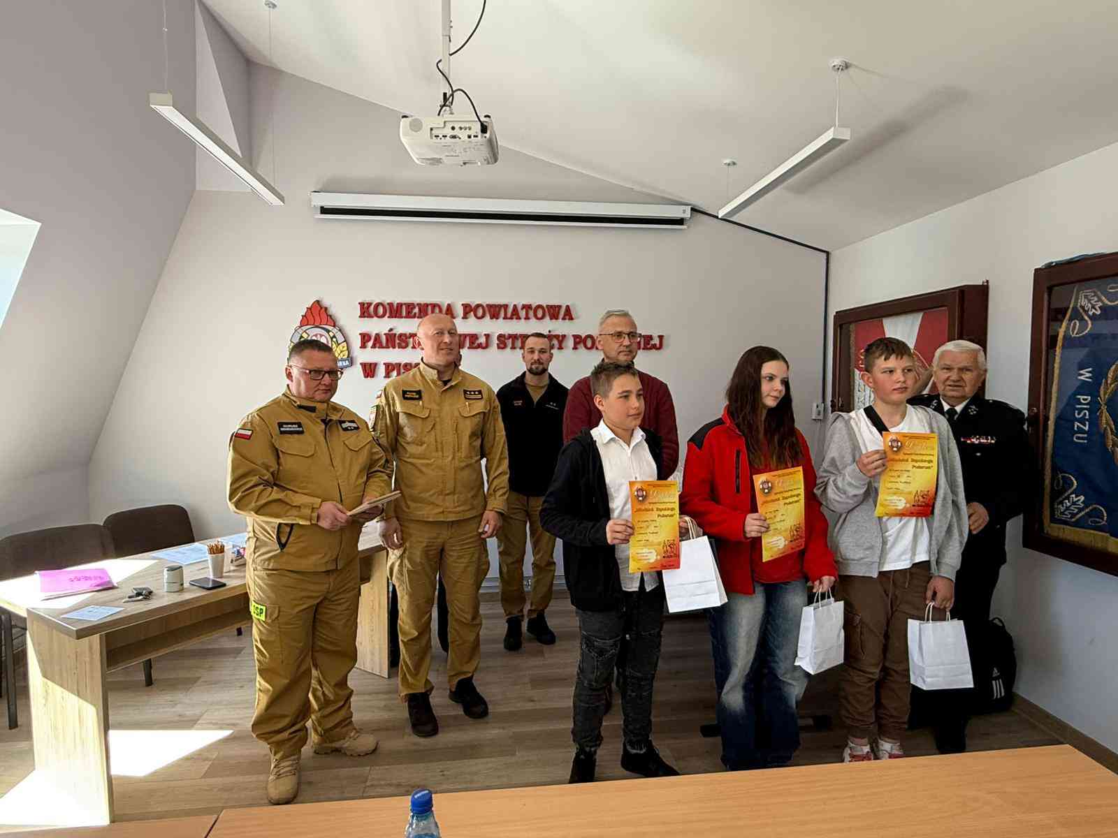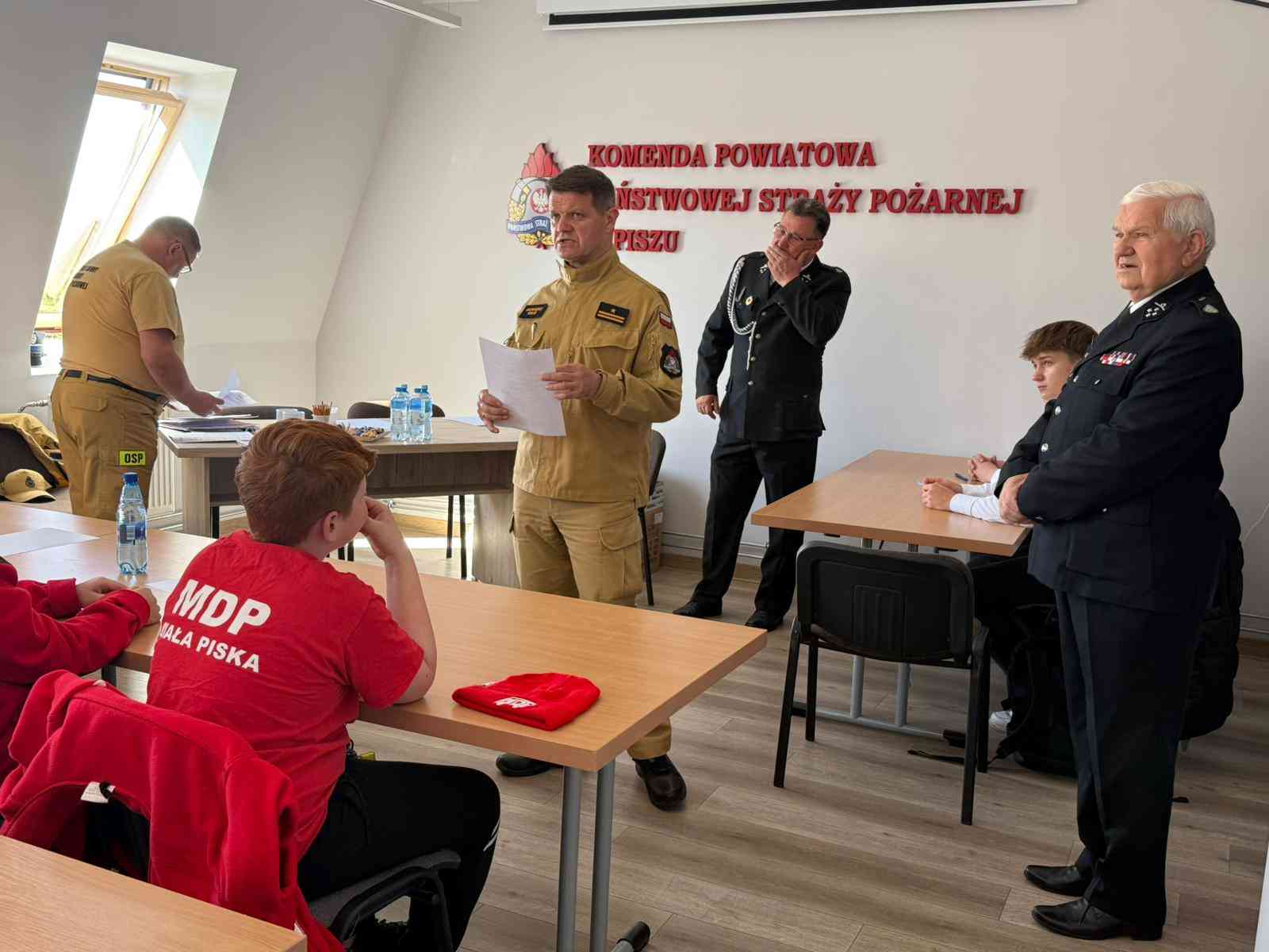 6 maja 2025 r. w naszej komendzie odbyły się powiatowe eliminacje Ogólnopolskiego Turnieju Wiedzy Pożarniczej „Młodzież Zapobiega Pożarom”. Spośród dwudziestu siedmiu uczestników w dwóch kategoriach wiekowych, dwunastu przeszło do rozgrywek finałowych, w których zmierzyli się z wiedzą pożarniczą w formie eliminacji ustnych. Zwycięzcy turnieju z każdej grupy wiekowej będą reprezentowali powiat piski na eliminacjach wojewódzkich w Olsztynie.