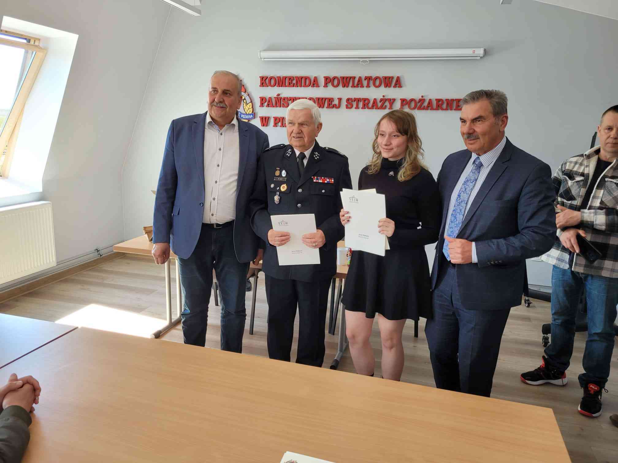 9 maja 2023 r. w naszej komendzie odbyły się powiatowe eliminacje Ogólnopolskiego Turnieju Wiedzy Pożarniczej „Młodzież Zapobiega Pożarom”. Spośród piętnastu uczestników w trzech kategoriach wiekowych, dziewięciu przeszło do rozgrywek finałowych, w których zmierzyli się z wiedzą pożarniczą w formie eliminacji ustnych. Zwycięzcy turnieju z każdej grupy wiekowej będą reprezentowali powiat piski na eliminacjach wojewódzkich w Olsztynie.