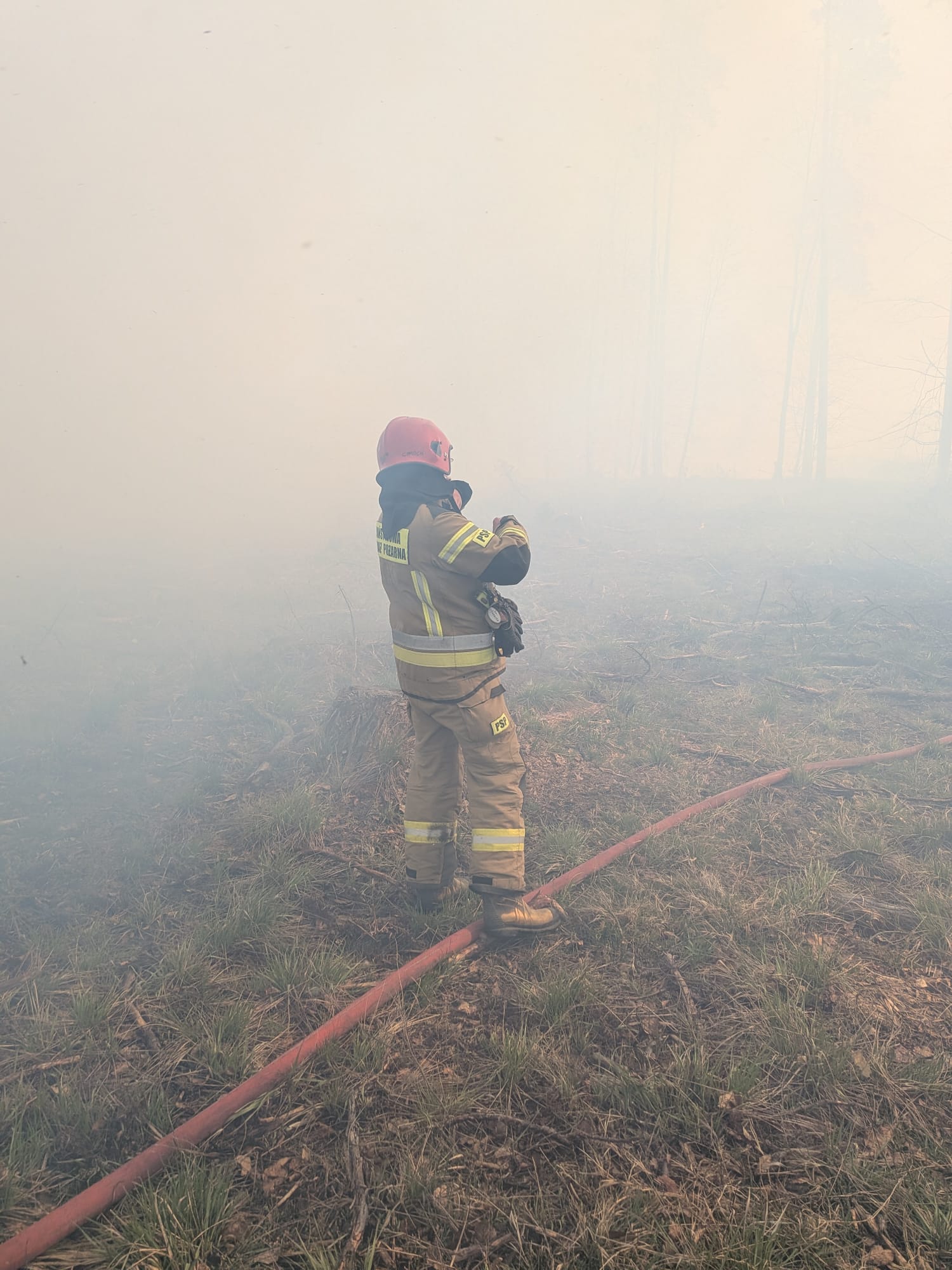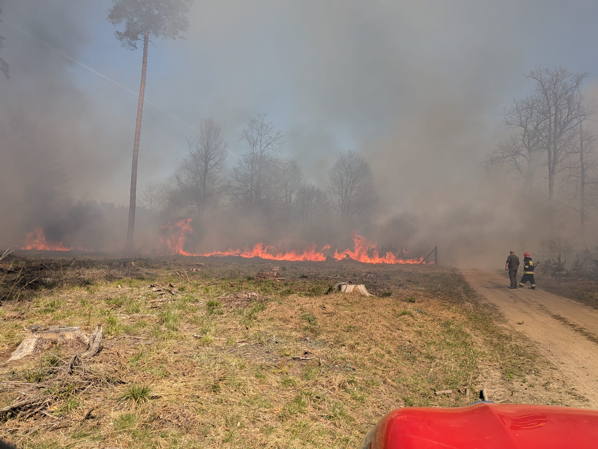 23 kwietnia 2026 roku o godzinie 13:25 Dyżurny Stanowiska Kierowania Komendanta Powiatowego w Piszu odebrał zgłoszenie o pożarze lasu w okolicach Rucianego-Nidy. Pożar powstał wskutek zwarcia, do jakiego doszło w wyniku upadku drzewa na linię wysokiego napięcia. Na miejsce natychmiast skierowano liczne siły ratownicze. Po przybyciu i przeprowadzeniu rozpoznania stwierdzono, że ogień objął poszycie leśne wraz z drzewostanem – zarówno młodnikiem sosnowym w wieku około 12 lat, jak i starodrzewem liczącym około 120 lat. Łączna powierzchnia objęta pożarem wyniosła ponad 9 hektarów. Na miejscu obecne były również służby leśne, które bardzo mocno wspierały działania ratownicze. Strażacy zabezpieczyli teren zdarzenia, a następnie przystąpili do intensywnej akcji gaśniczej. W działaniach, oprócz podanej wody, używano również tłumic oraz hydronetek plecakowych. Kluczowe znaczenie miała sprawna organizacja zaopatrzenia wodnego – wodę dowożono z Rucianego-Nidy, a dodatkowe wsparcie zapewnił beczkowóz z nadleśnictwa. W porozumieniu z Lasami Państwowymi zadysponowano również wsparcie z powietrza. W akcji uczestniczyły dwa samoloty gaśnicze typu Dromader oraz śmigłowiec, które wykonały kilkanaście zrzutów wody na obszar objęty pożarem. Dzięki skoordynowanym działaniom wszystkich służb pożar udało się opanować i ugasić, ratując przyległe oddziały leśne. W dalszej fazie działań całe pogorzelisko zostało dokładnie przelane, aby wyeliminować ryzyko ponownego pojawienia się ognia. W działaniach uczestniczyły 22 zastępy Państwowej i Ochotniczej Straży Pożarnej oraz liczne służby leśne. Działania łącznie trwały 10 godzin.