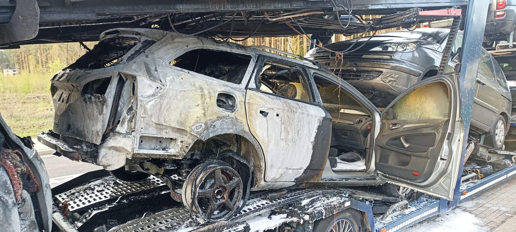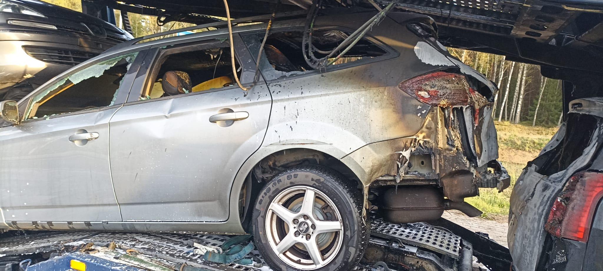 W dniu 11.04.2024 o godz. 17:21 do Stanowiska Kierowania Komendanta Powiatowego w Piszu wpłynęło zgłoszenie o pożarze samochodu ciężarowego przewożącego samochody osobowe znajdującego się na zatoczce autobusowej przy drodze krajowej nr 58 nieopodal miejscowości Szeroki Bór Piski gm. Pisz. Po dojeździe na miejsce zdarzenia pierwszych zastępów zastano pożar czterech samochodów osobowych oraz kół lawety. Na lawecie łącznie znajdowało się osiem samochodów osobowych. Działania zastępów polegały na zabezpieczeniu miejsca zdarzenia, zablokowaniu drogi, podaniu piany ciężkiej na palące się samochody i lawetę oraz podaniu wody w obronie pozostałych pojazdów. Pożar ugaszono. Na szczęście w zdarzeniu nikt nie ucierpiał. W działaniach brały udział zastępy z JRG Pisz, OSP Ruciane-Nida oraz WSP Szeroki Bór Piski w sile dziewiętnastu ratowników. Działania trwały ponad półtorej godziny.