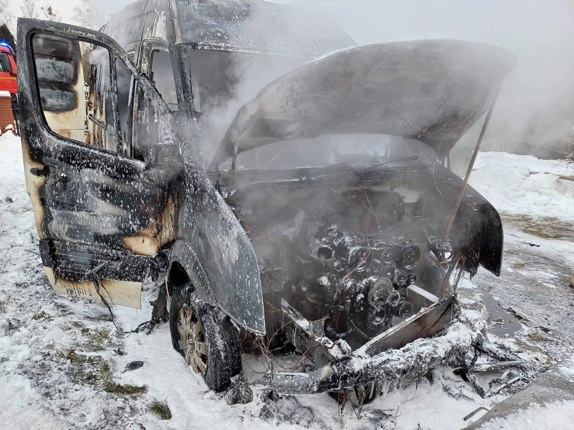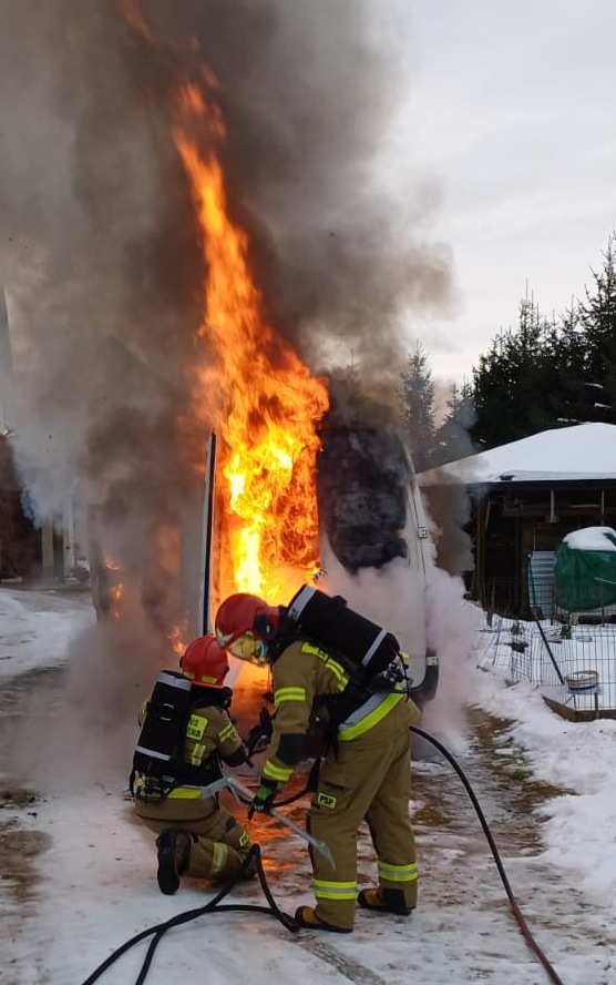 12 stycznia 2024 r. o godz. 8:16 do Stanowiska Kierowania Komendanta Powiatowego w Piszu wpłynęło zgłoszenie o pożarze samochodu dostawczego we wsi Łupki. Po przybyciu na miejsce zdarzenia Kierujący Działaniem Ratowniczym (KDR) zastał samochód VW Crafter objęty całkowicie ogniem. Działania zastępów polegały na zabezpieczeniu miejsca zdarzenia oraz podaniu wody i piany na palący się samochód. Po ugaszeniu pojazdu ratownicy przeszukali jego wnętrze w celu wyeliminowania osób poszkodowanych. Na szczęście nikt nie odniósł obrażeń. W działaniach udział brały zastępy z PSP w sile ośmiu ratowników, działania gaśnicze trwały blisko godzinę.