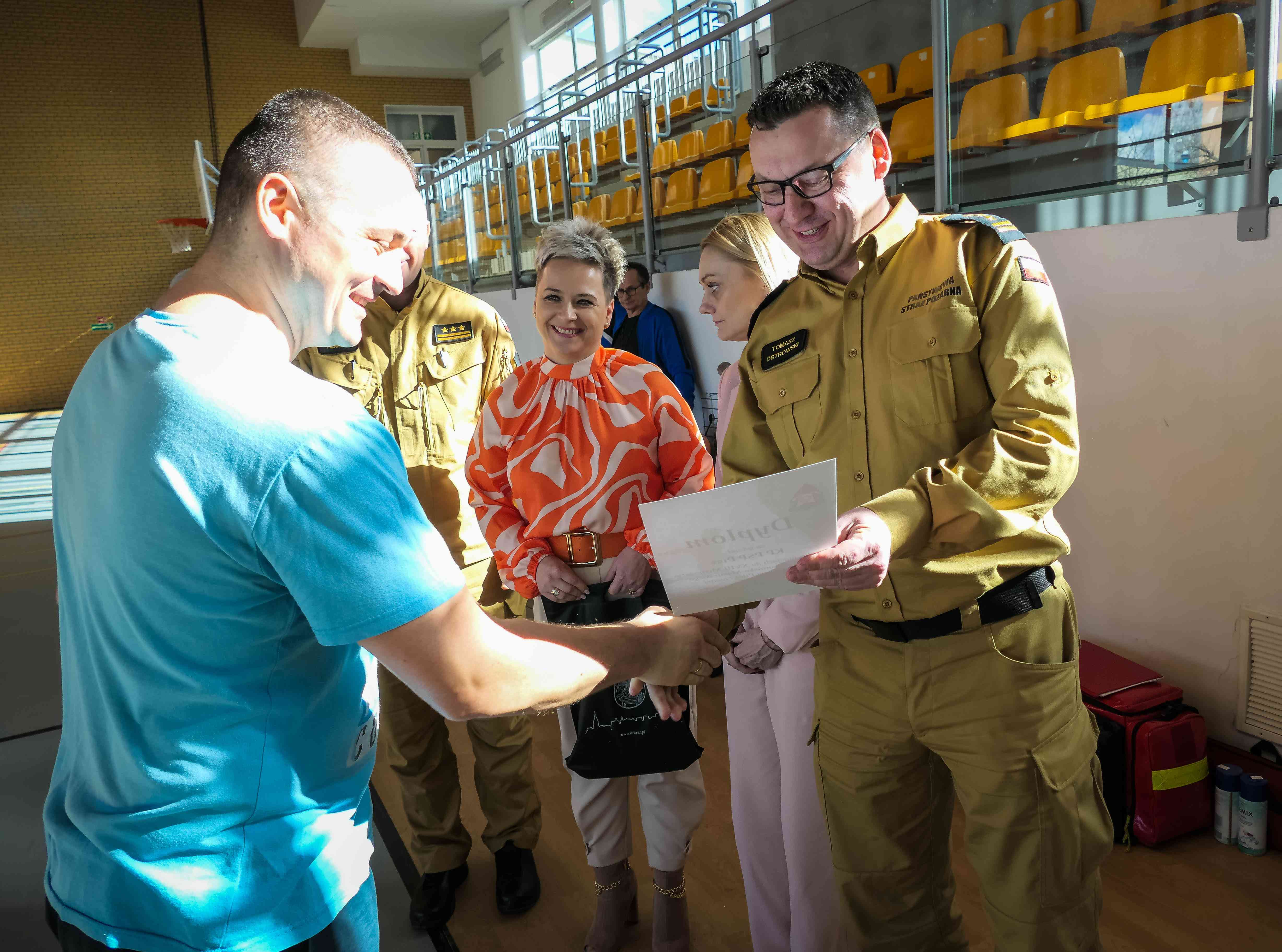 Wręczenia dyplomów dokonał Zastępca Warmińsko-Mazurskiego Komendanta Wojewódzkiego PSP w Olsztynie st. bryg. Tomasz Ostrowski.