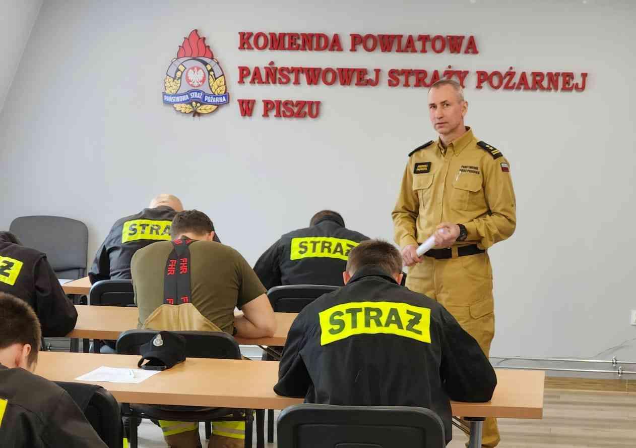 W dniach 24.02.2024 r. – 20.04.2024 r w Komendzie Powiatowej PSP w Piszu prowadzone było szkolenie podstawowe strażaków ratowników OSP. Druhowie biorący udział w szkoleniu pozyskali wiedzę i umiejętności m.in. z zakresu obsługi sprzętu pożarniczego, pracy w aparatach ochrony dróg oddechowych, prowadzenia działań gaśniczych, udzielania pomocy medycznej i ratownictwa technicznego. W ostatni weekend odbył się egzamin, który był podsumowaniem pracy wykonanej przez uczestników szkolenia. Siedemnaście osób ukończyło szkolenie z wynikiem pozytywnym, dzięki czemu mogą brać czynny udział w działaniach ratowniczych. Wszystkim serdecznie gratulujemy.