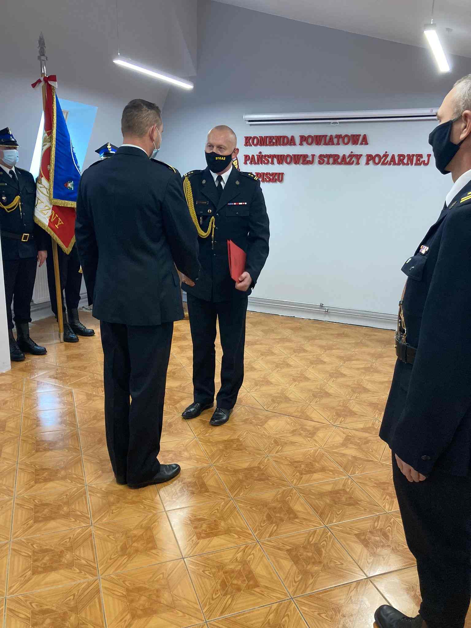 Uroczystość zakończył Komendant Powiatowy PSP w Piszu bryg. Paweł Pieńkosz, składając gratulacje na ręce wyróżnionych strażaków oraz życząc im dalszych sukcesów w służbie.