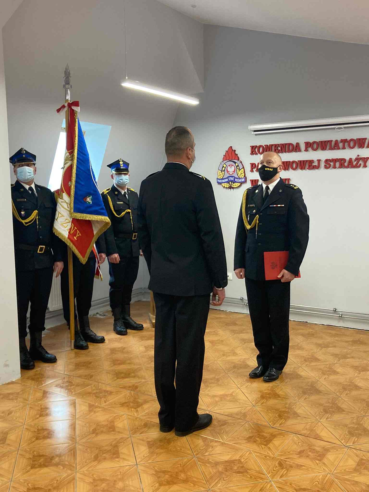 W środę 17 listopada 2021 roku w siedzibie Komendy Powiatowej Państwowej Straży Pożarnej w Piszu odbyła się uroczysta zbiórka z okazji nadania wyższych stopni i powierzenia obowiązków służbowych strażakom Państwowej Straży Pożarnej w Piszu.