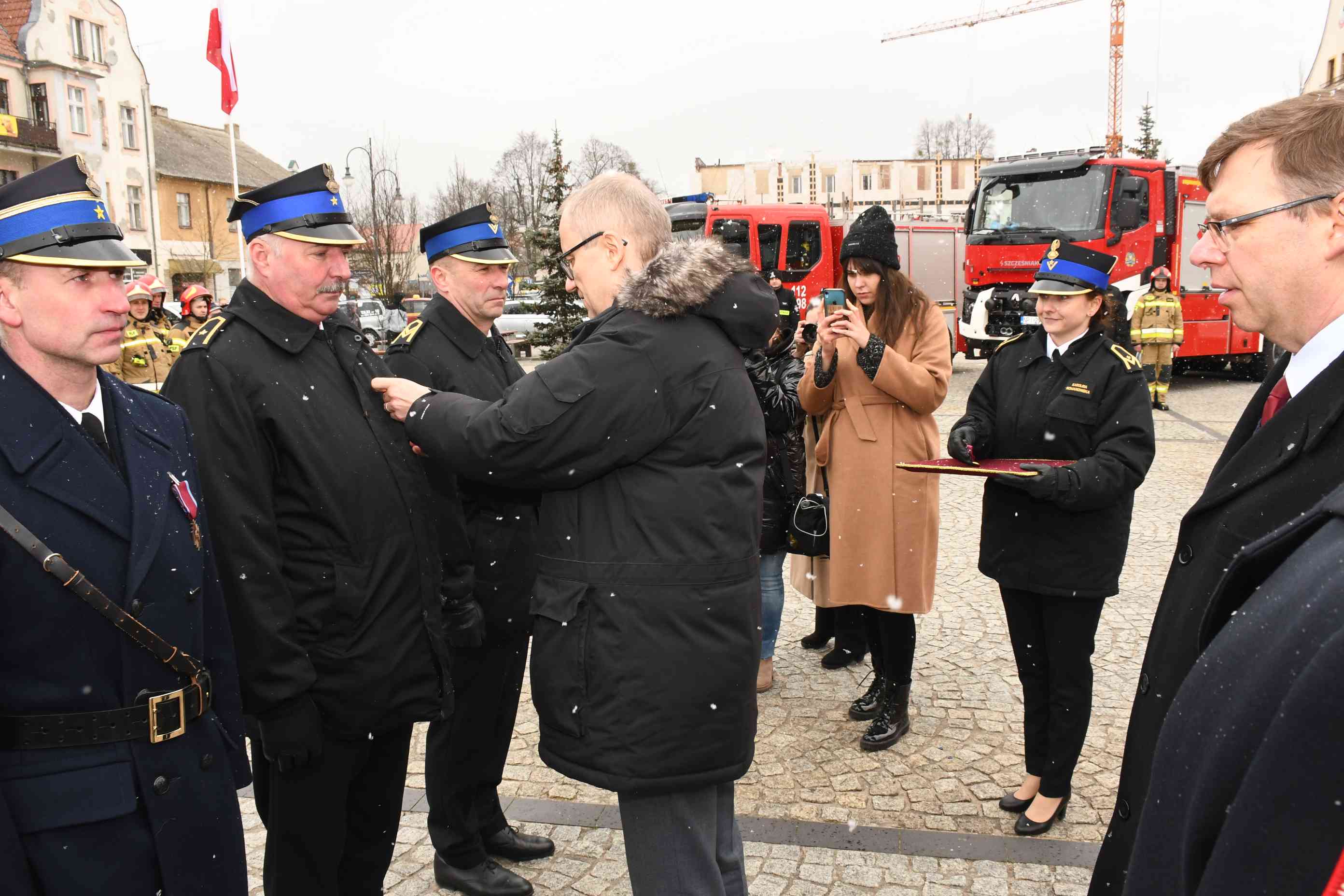 Podczas uroczystości wyróżniający się strażacy otrzymali odznaczenia państwowe i resortowe, które w imieniu Prezydenta RP i Ministra SWiA wręczył Błażej Poboży Wiceminister Spraw Wewnętrznych i Administracji w asyście Wojewody Warmińsko-Mazurskiego Artura Chojeckiego i nadbryg. Tomasza Komoszyńskiego Warmińsko-Mazurskiego Komendanta Wojewódzkiego PSP w Olsztynie.