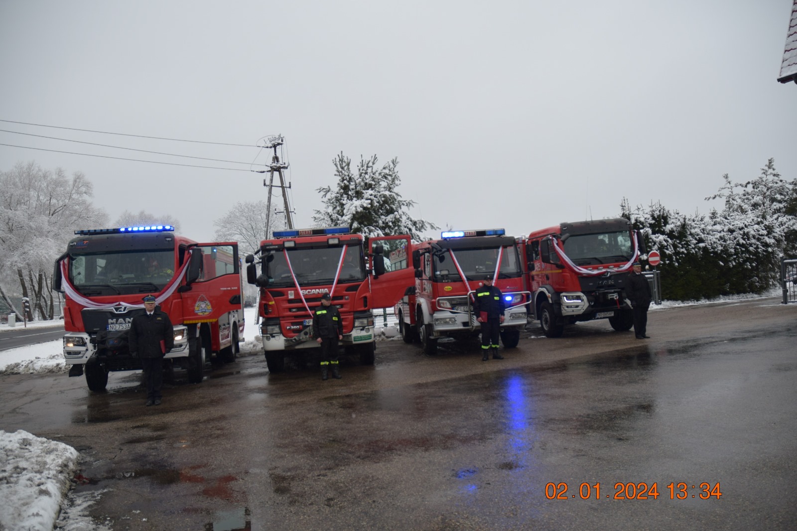 Strażacy z Pisza oraz ratownicy OSP z Chmielewa i Skarżyna świętowali przekazanie nowych samochodów