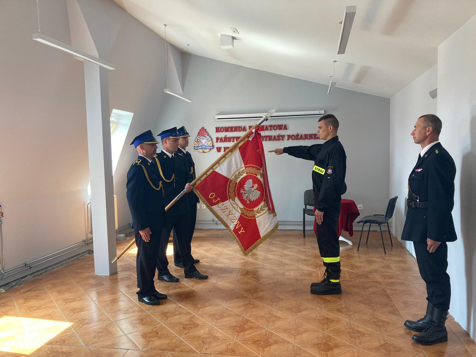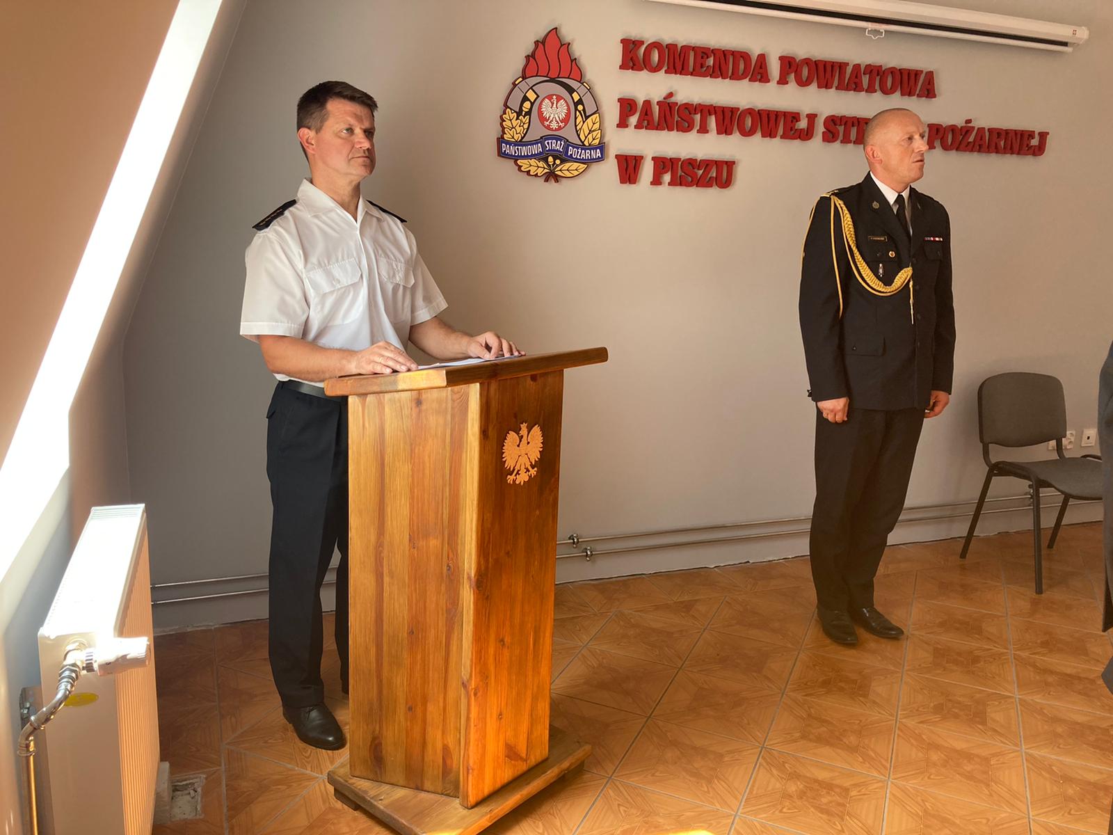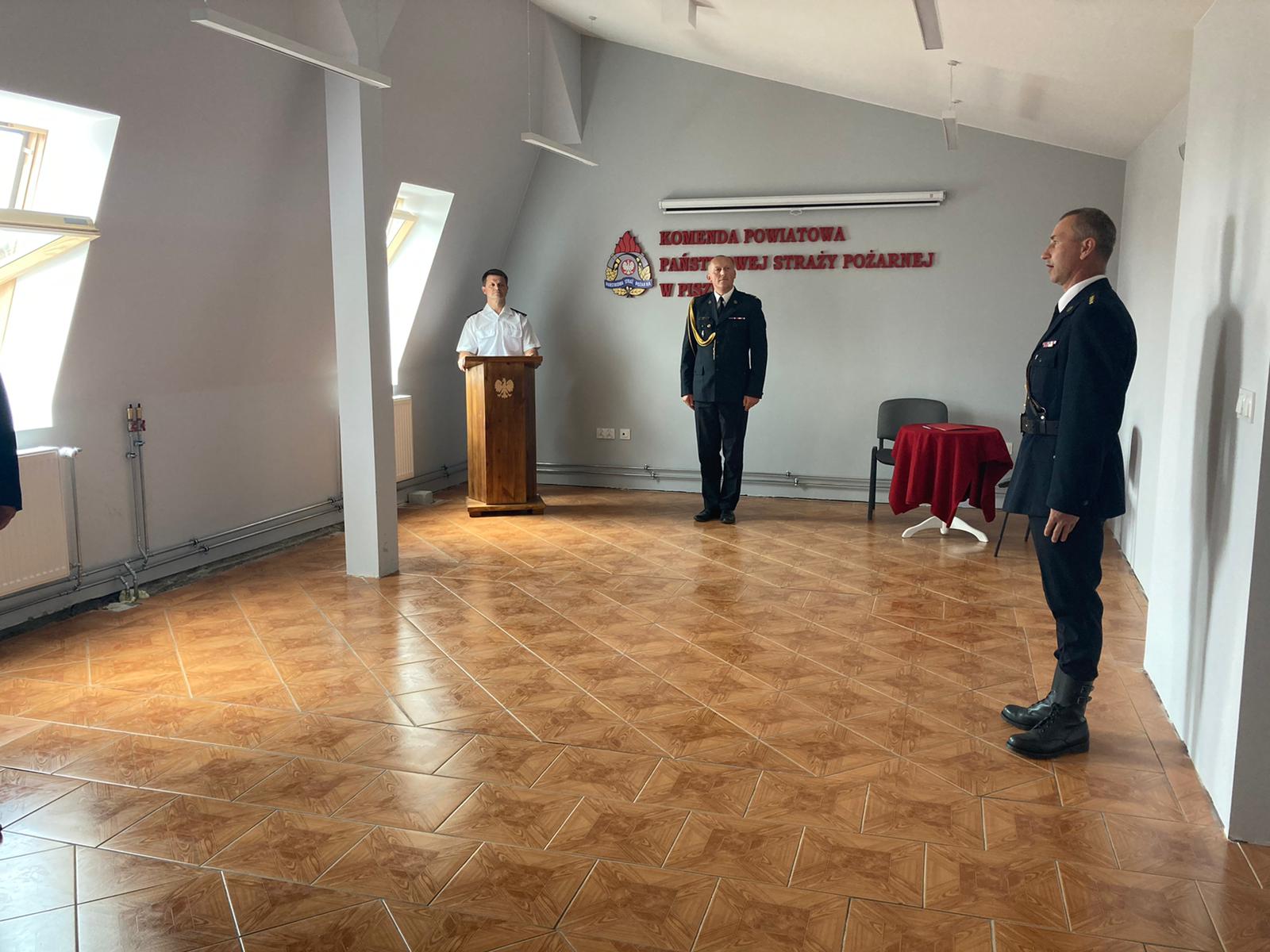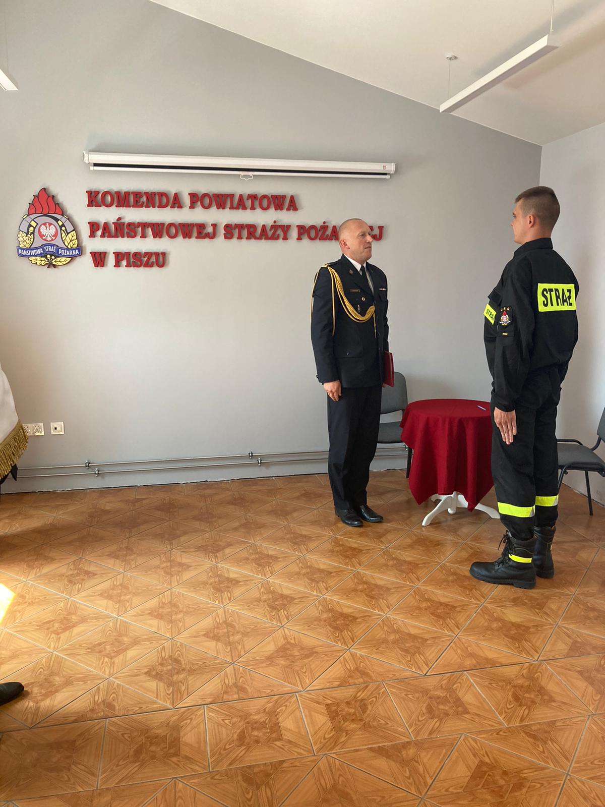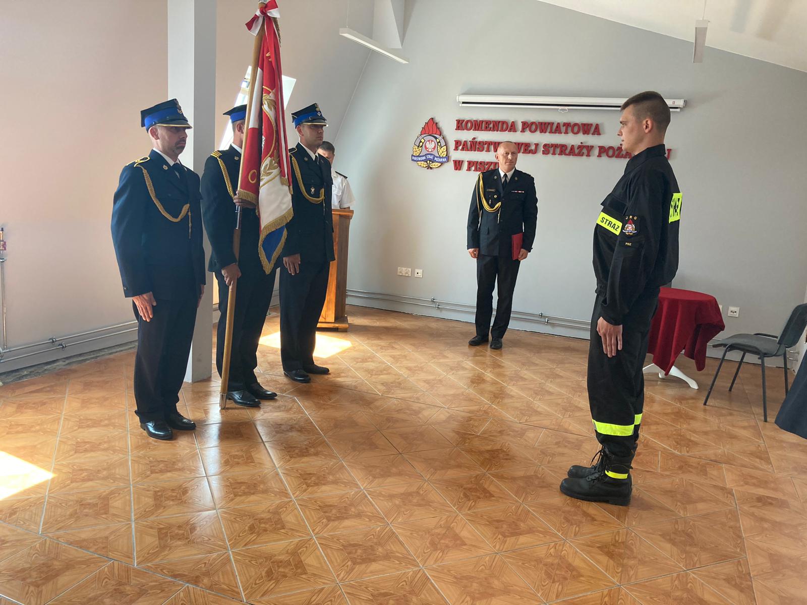 W piątek 23 lipca 2021 roku, w siedzibie Komendy Powiatowej Państwowej Straży Pożarnej w Piszu odbyło się uroczyste ślubowanie nowego funkcjonariusza przyjętego do służby w Państwowej Straży Pożarnej.