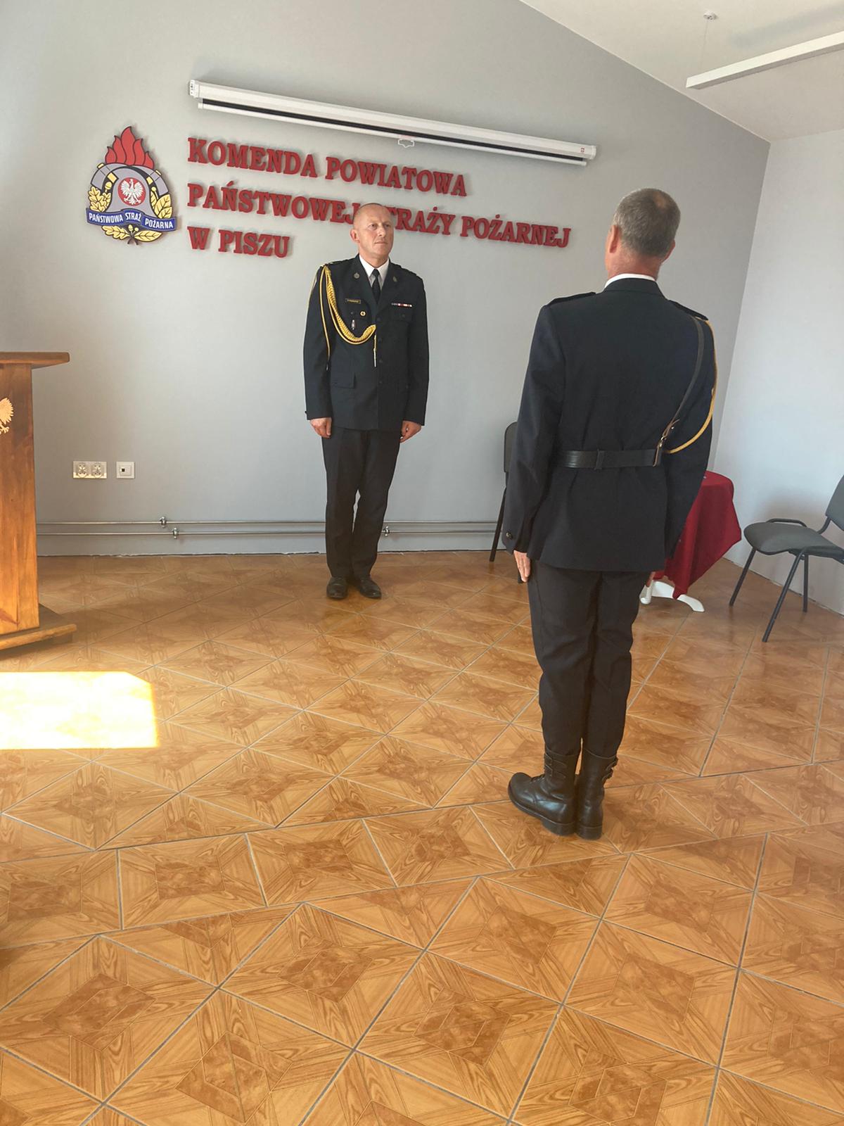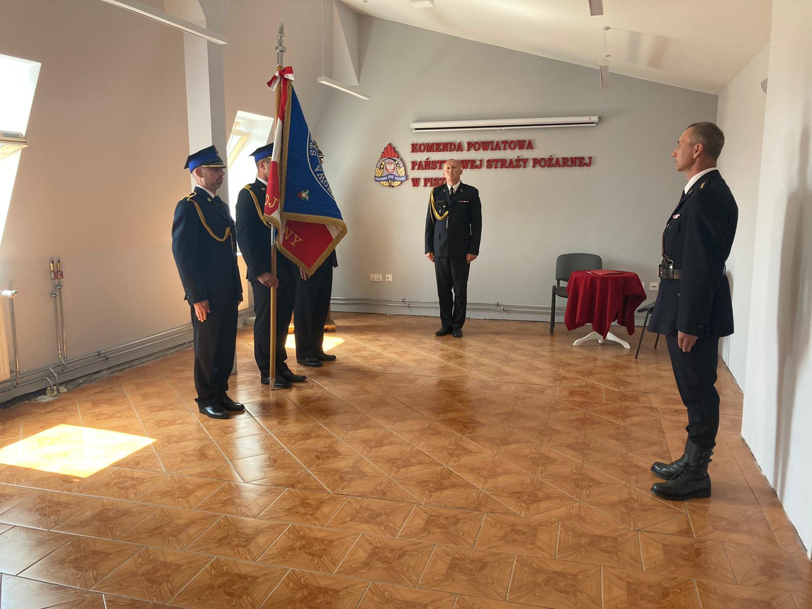Ślubowanie przyjął komendant powiatowy PSP w Piszu bryg. Paweł Pieńkosz w obecności swojego zastępcy st. kpt. Andrzeja Paproty. Uroczystość z udziałem sztandaru komendy powiatowej poprowadził Zastępca Komendanta st. kpt. Andrzej Paprota.
