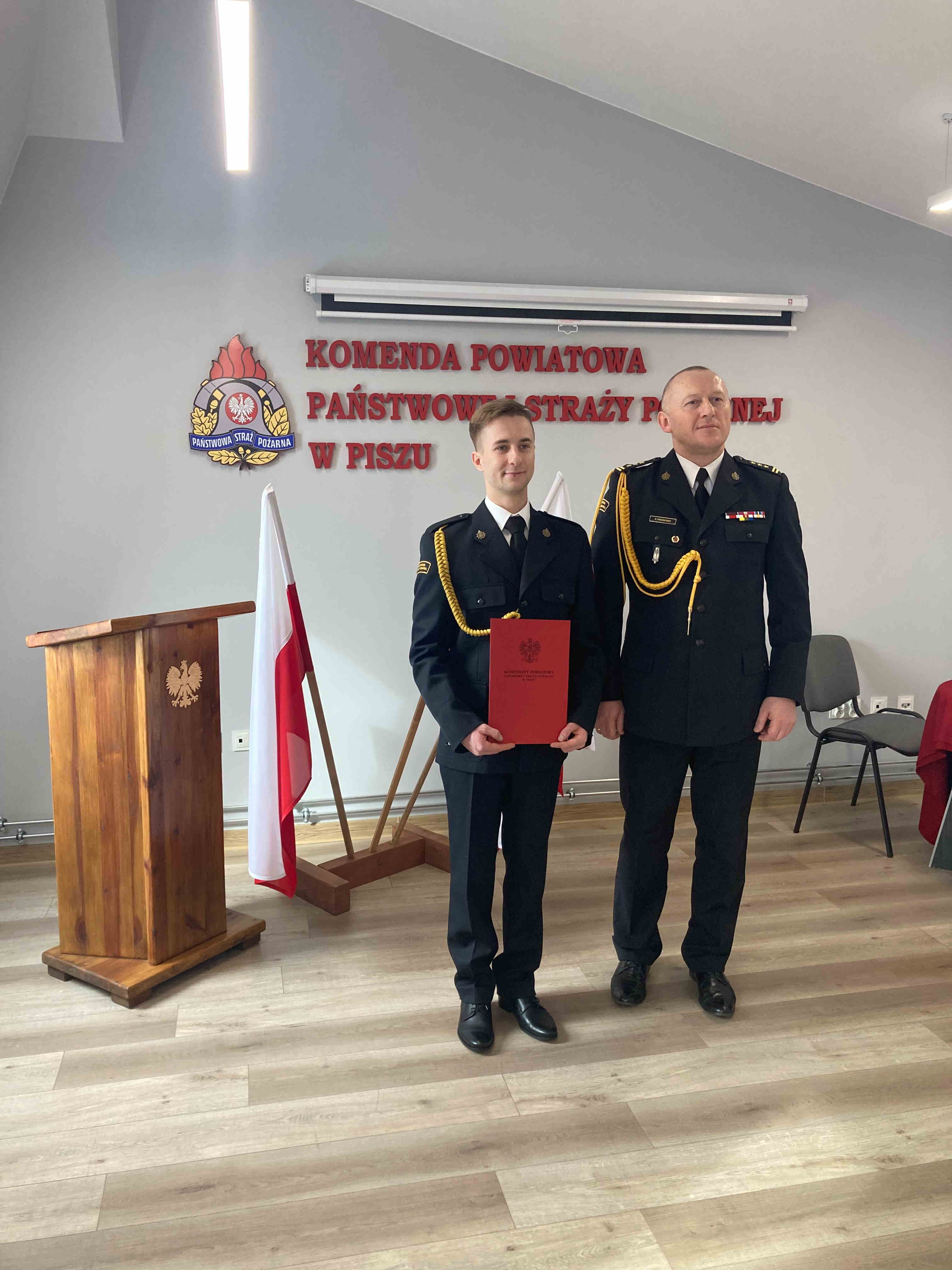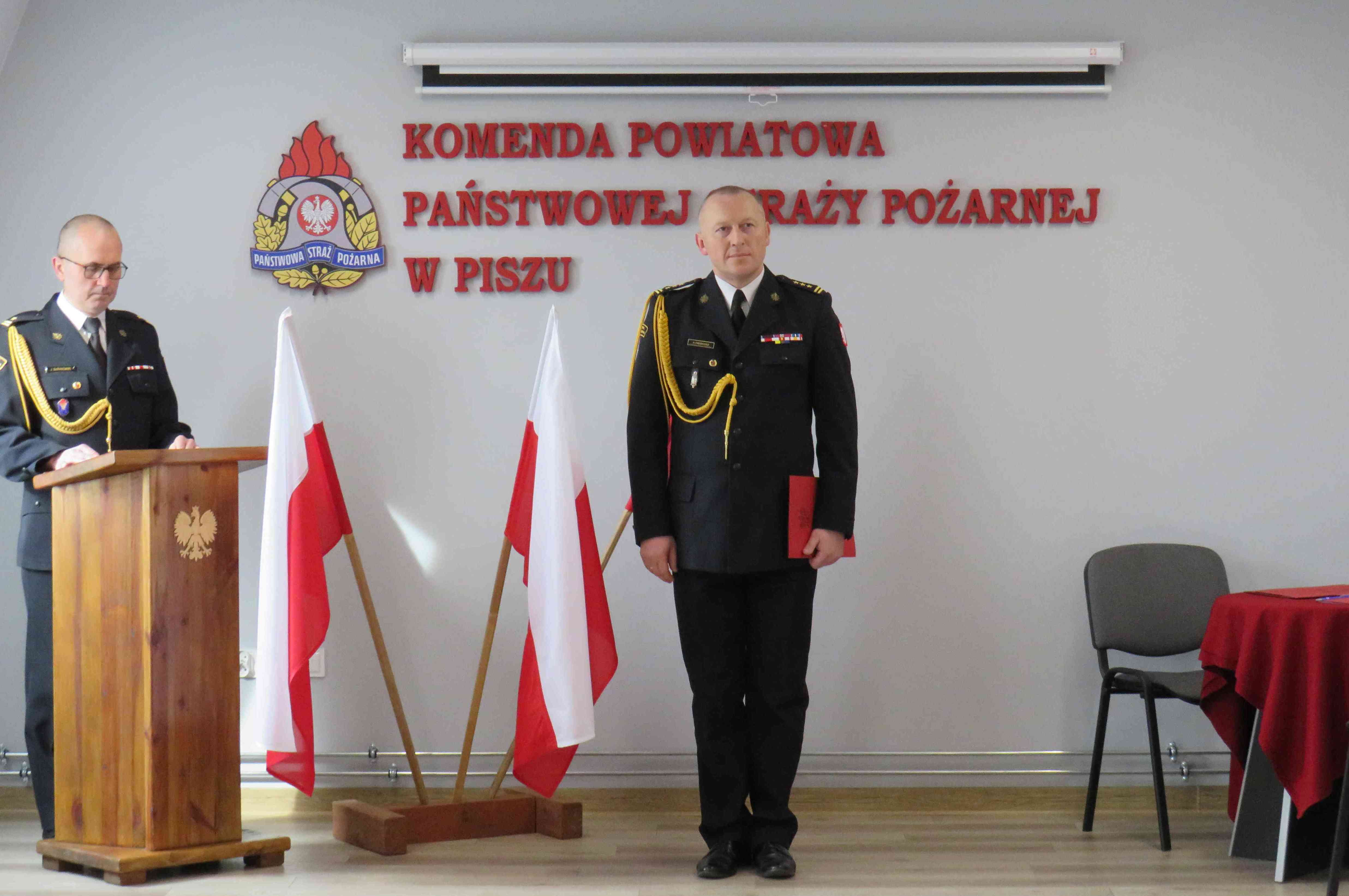 W piątek 24 marca 2023 roku, w siedzibie Komendy Powiatowej Państwowej Straży Pożarnej w Piszu odbyło się uroczyste ślubowanie nowego funkcjonariusza przyjętego do służby w Państwowej Straży Pożarnej oraz wręczenie awansów