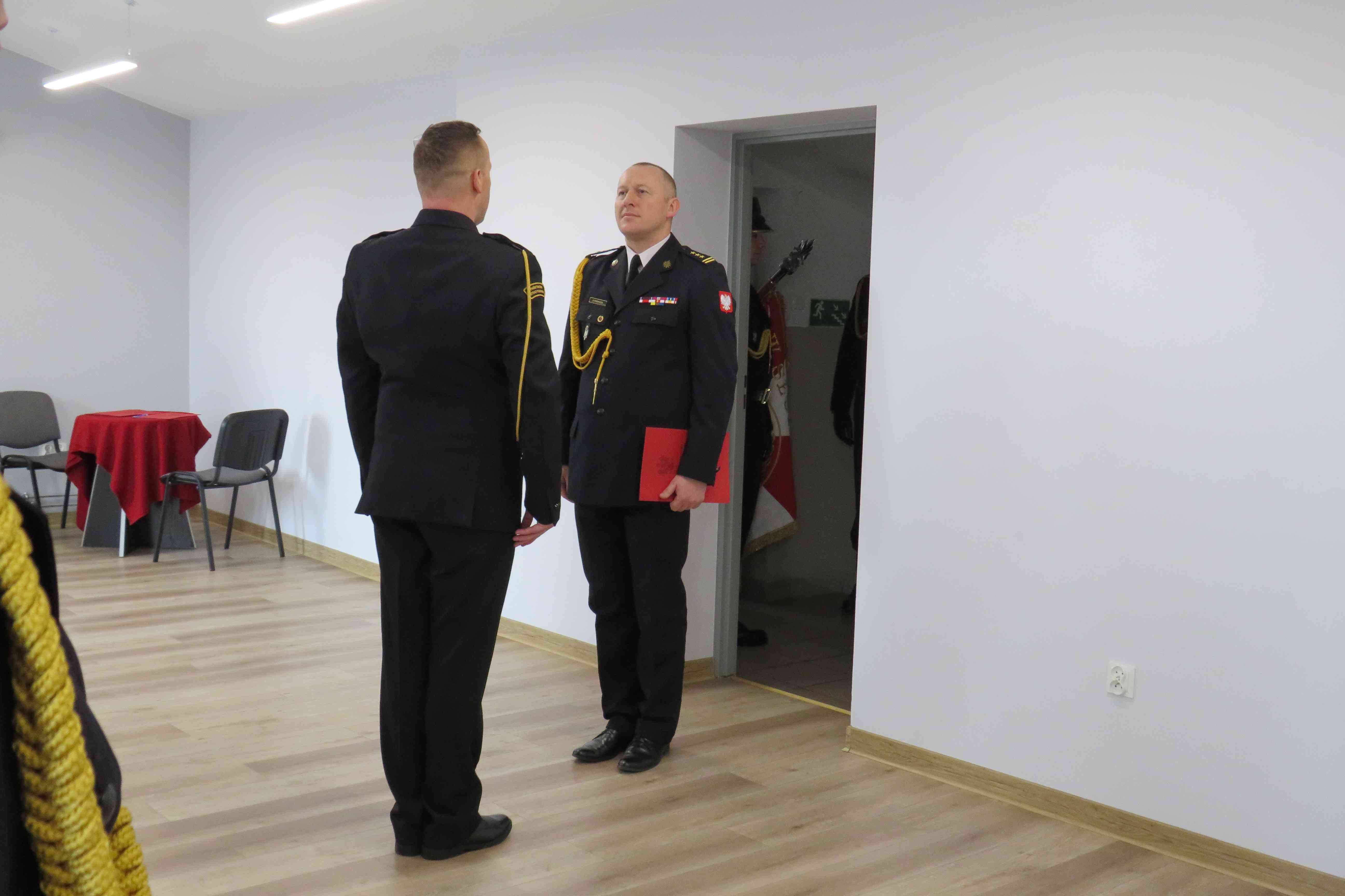 Słowem wstępu Komendant Powiatowy nawiązał do roty ślubowania, podkreślając znaczenie tej chwili w życiu zawodowym każdego strażaka. Zaznaczył także, że funkcjonariusz reprezentuje tą zasłużoną formację nie tylko w czasie służby, ale także poza nią.