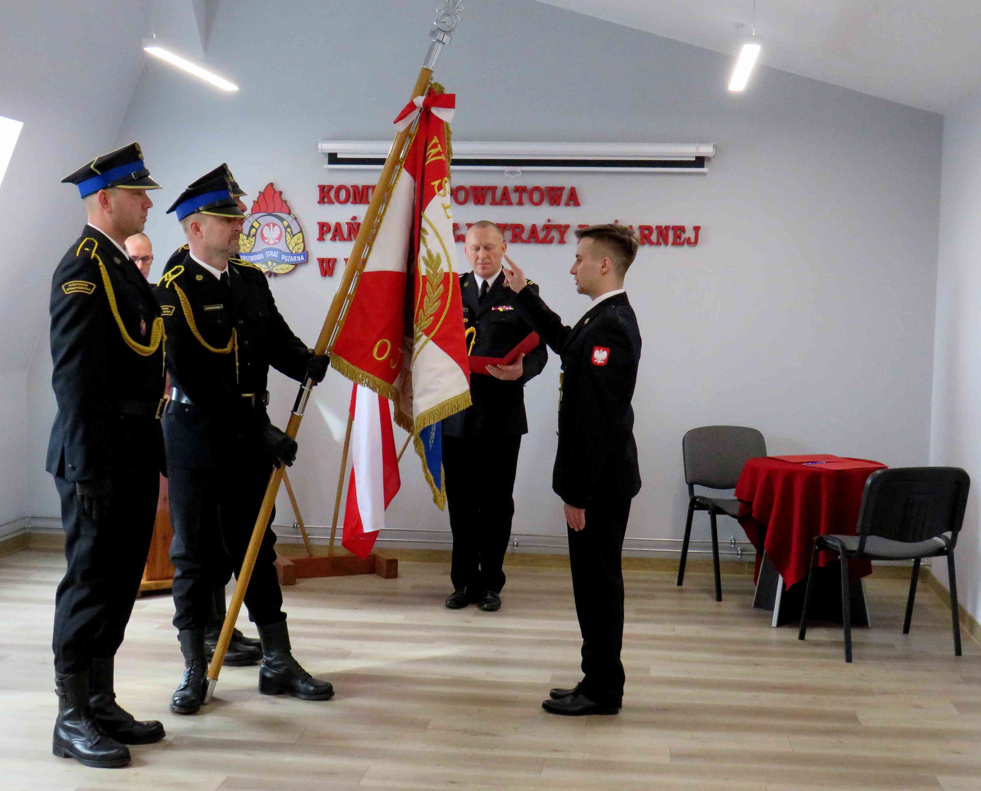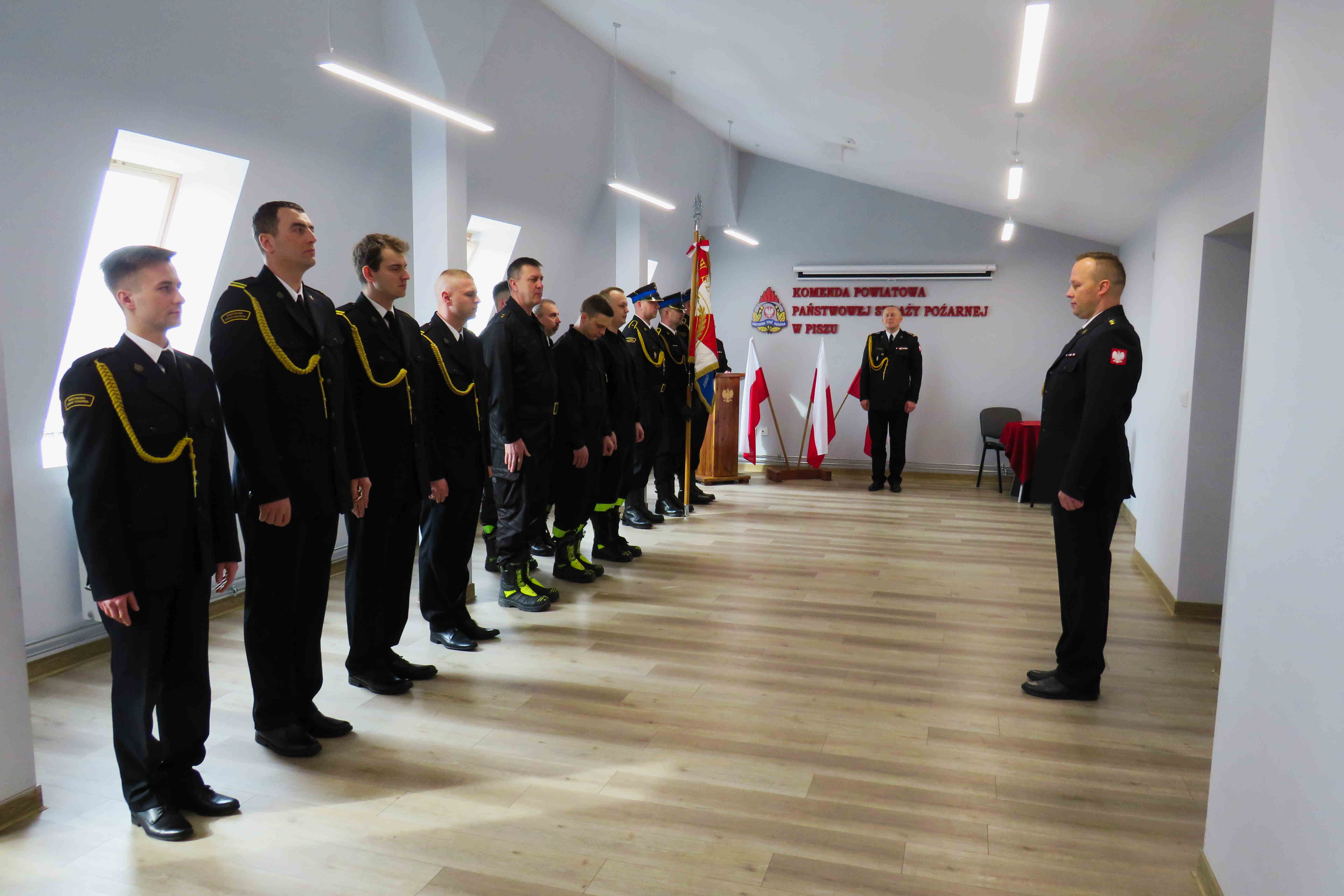 Ślubowanie przyjął komendant powiatowy PSP w Piszu st. bryg. Paweł Pieńkosz. Uroczystość z udziałem sztandaru komendy powiatowej poprowadził Dowódca Jednostki Ratowniczo-Gaśniczej kpt. Robert Szafranek.
