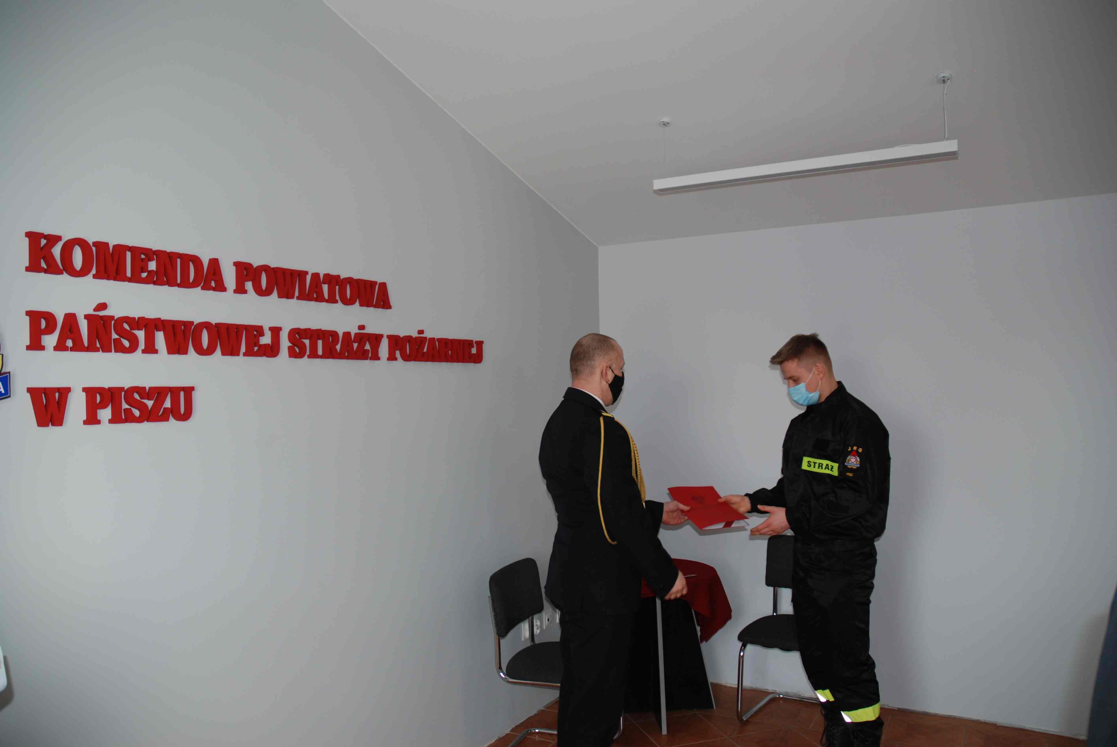 We czwartek 25 lutego 2021 roku w siedzibie Komendy Powiatowej Państwowej Straży Pożarnej w Piszu odbyło się uroczyste ślubowanie dwóch nowych funkcjonariuszy przyjętych do służby w Państwowej Straży Pożarnej.