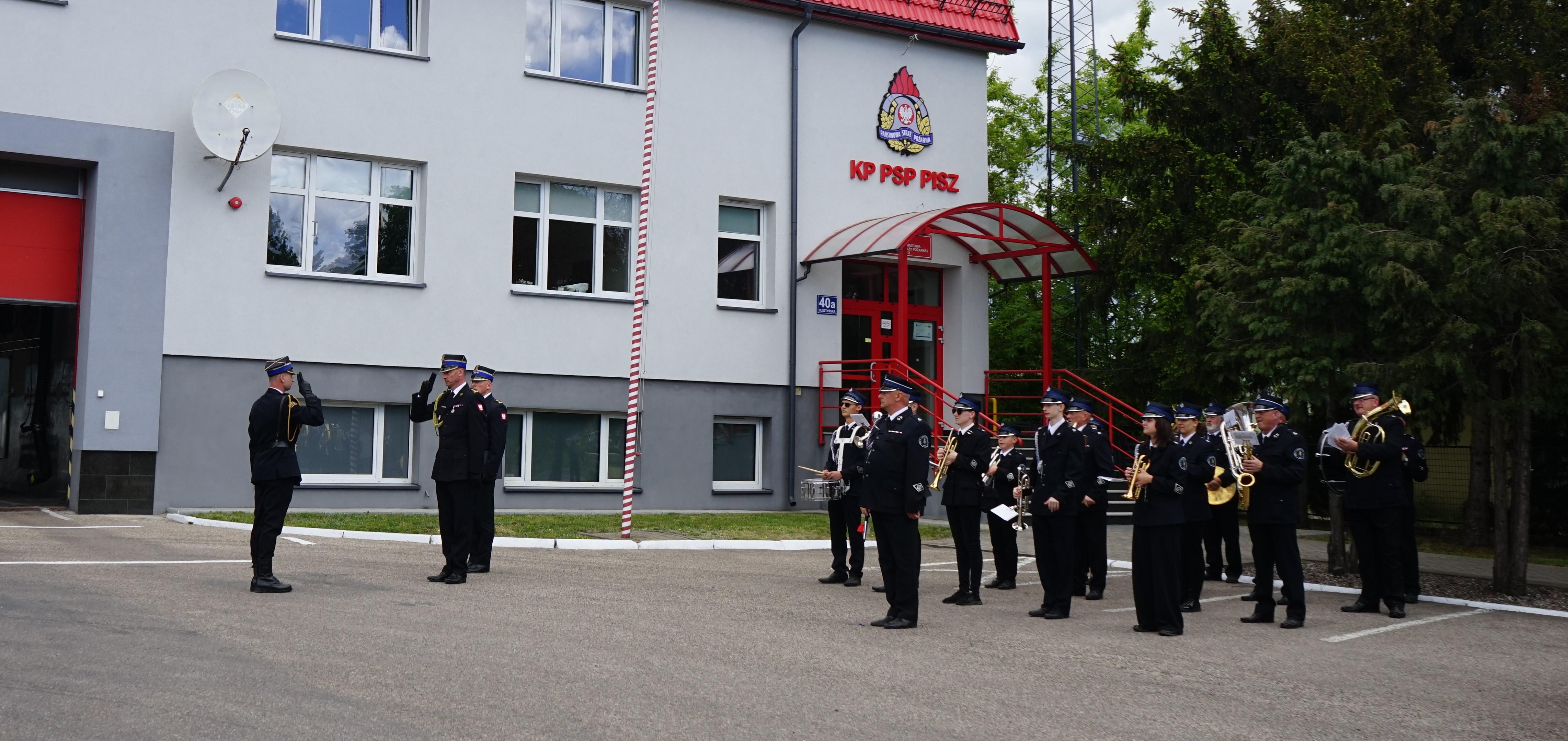 W uroczystym apelu udział wzięli funkcjonariusze oraz pracownicy korpusu służby cywilnej Komendy Powiatowej Państwowej Straży Pożarnej w Piszu, a także zaproszeni goście, wśród których znaleźli się: