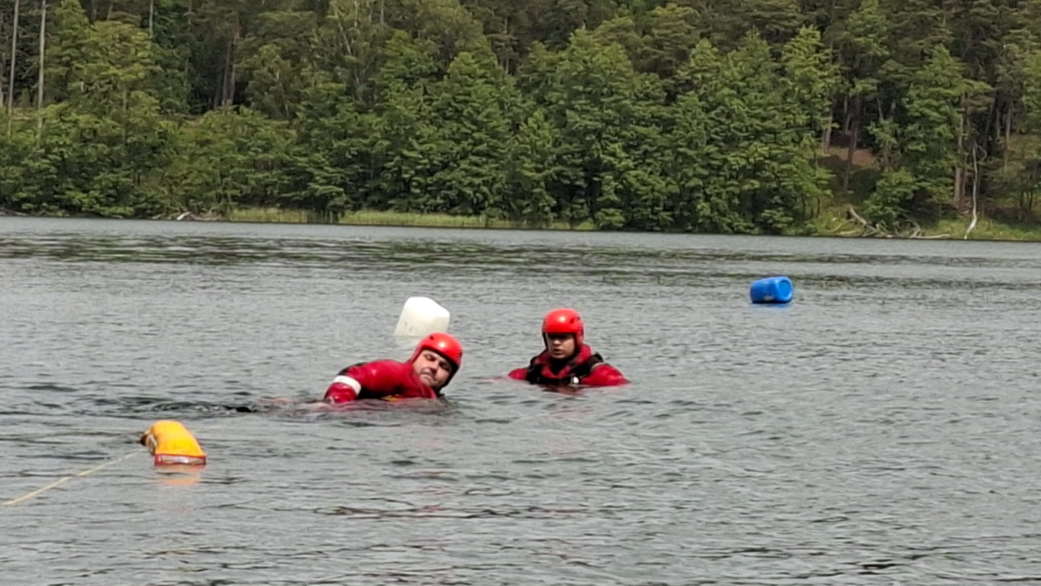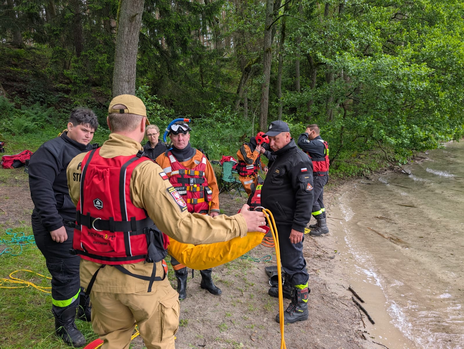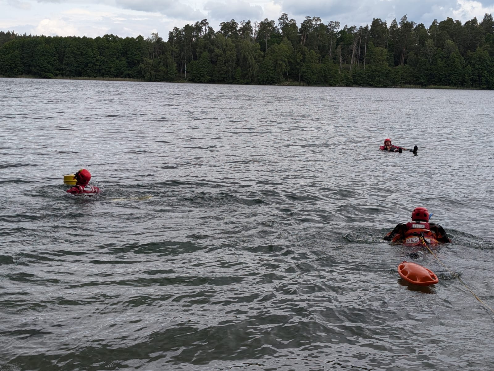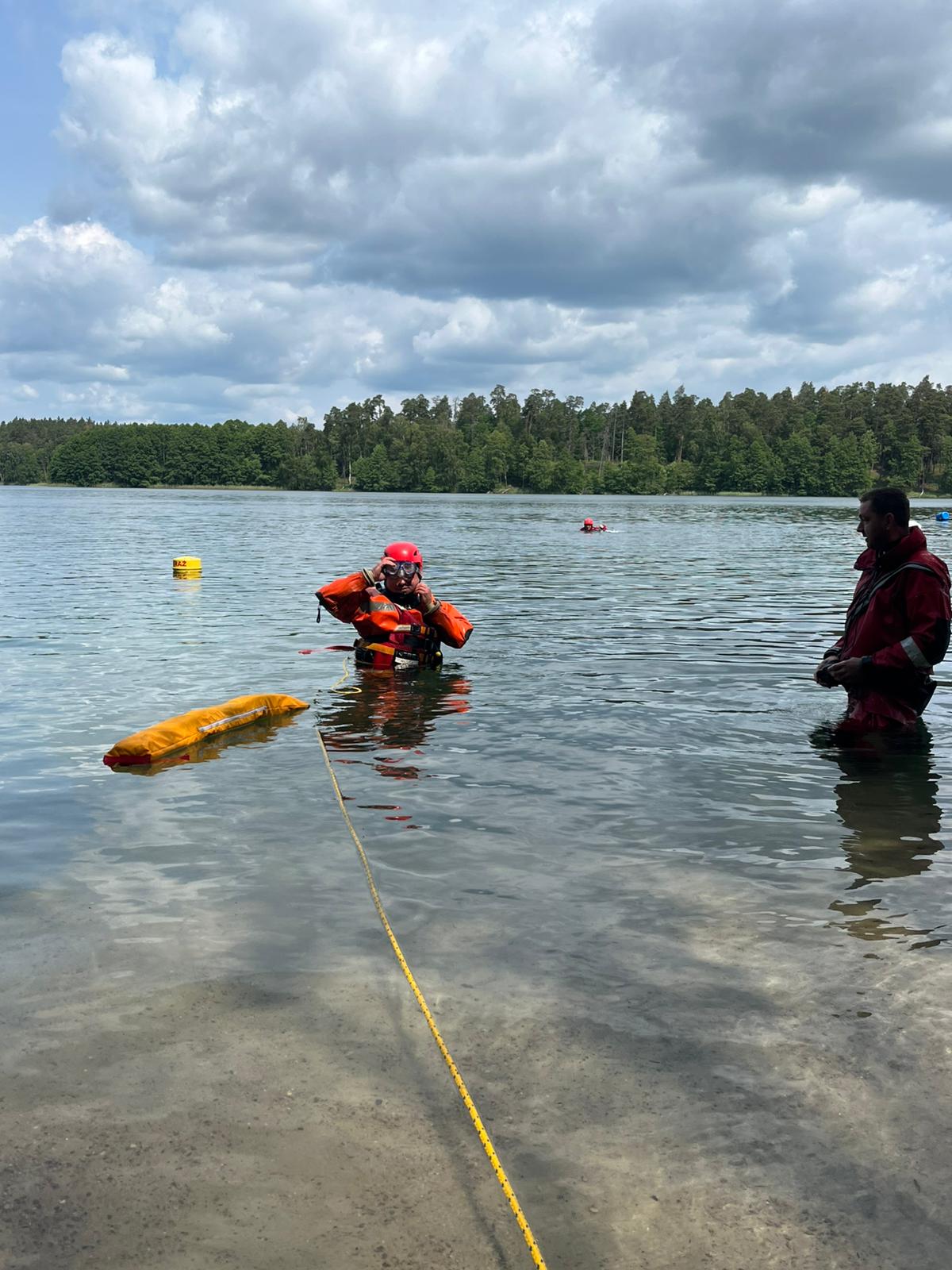- Ratownictwa wodnego – na jeziorze Jegocin, dwie osoby pływały kajakiem, który się przewrócił. Jedna z osób posiadała kapok, druga nie. Zadaniem strażaków była bezpieczna ewakuacja osób poszkodowanych z jeziora i udzielenie im kwalifikowanej pierwszej pomocy.