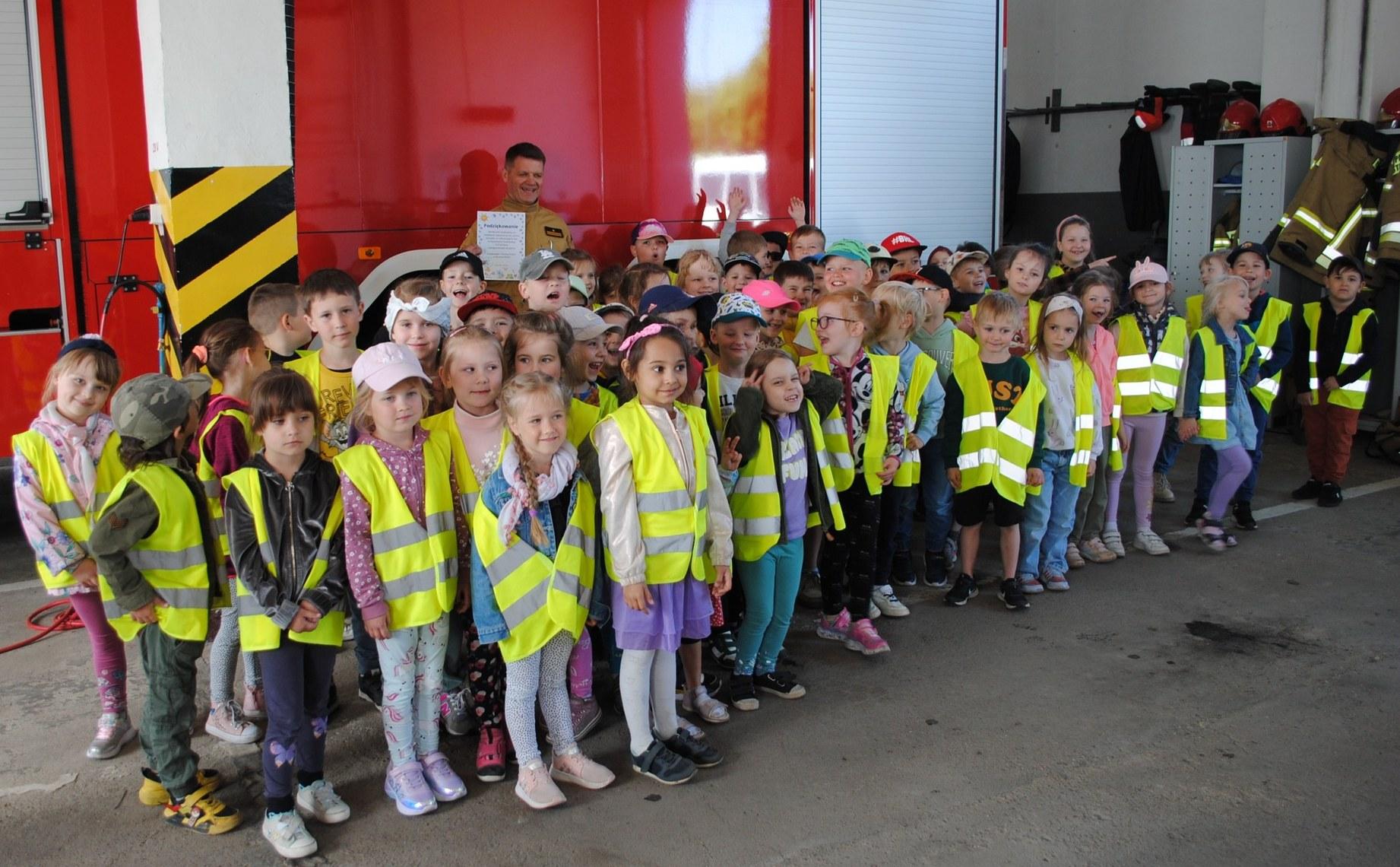 Wczoraj przed południem piską straż pożarną odwiedziły „Żabki”, „Pszczółki” i „Tygrysy” czyli przedszkolaki z Przedszkola Miejskiego „Zielona Kraina” w Rucianem-Nidzie. Z zachwytem zwiedzały komendę, chłonąc jednocześnie wiedzę przekazywaną przez strażaków. Poznały tajniki podawania wody oczywiście z myślą o ugaszeniu pożaru, a także zapoznały się z pracą Stanowiska Kierowania Komendanta Powiatowego w Piszu podczas realnego wyjazdu alarmowego do pożaru (na szczęście niegroźnego). Radości i uśmiechom nie było końca. Ostatnim elementem wycieczki było wspólne zdjęcie, na którym wszyscy śmialiśmy się od ucha do ucha. Z nieoficjalnych informacji wiemy, iż wszystkie dzieci deklarują, że w przyszłości zostaną strażakami – możemy być spokojni o przyszłość formacji :)