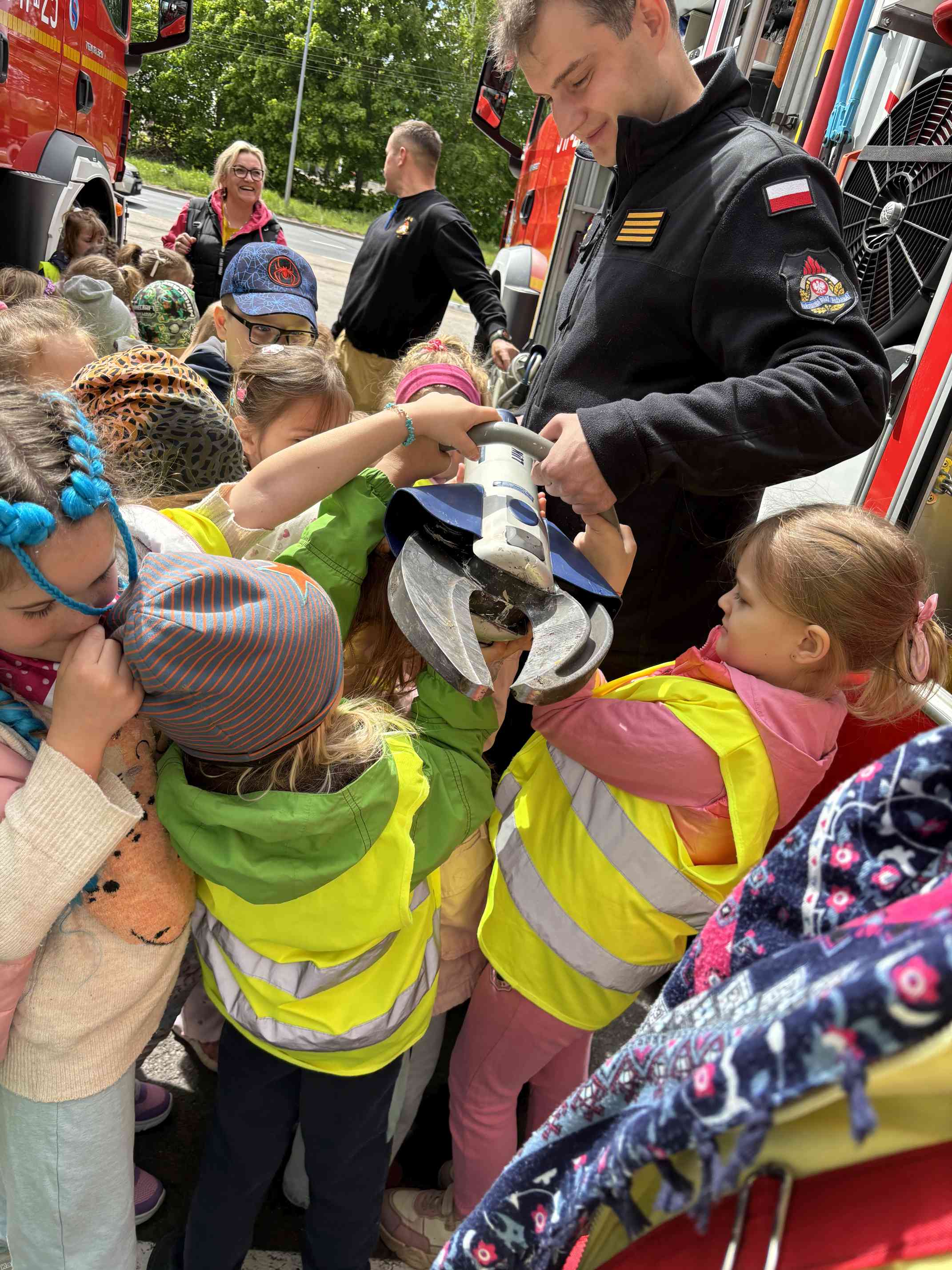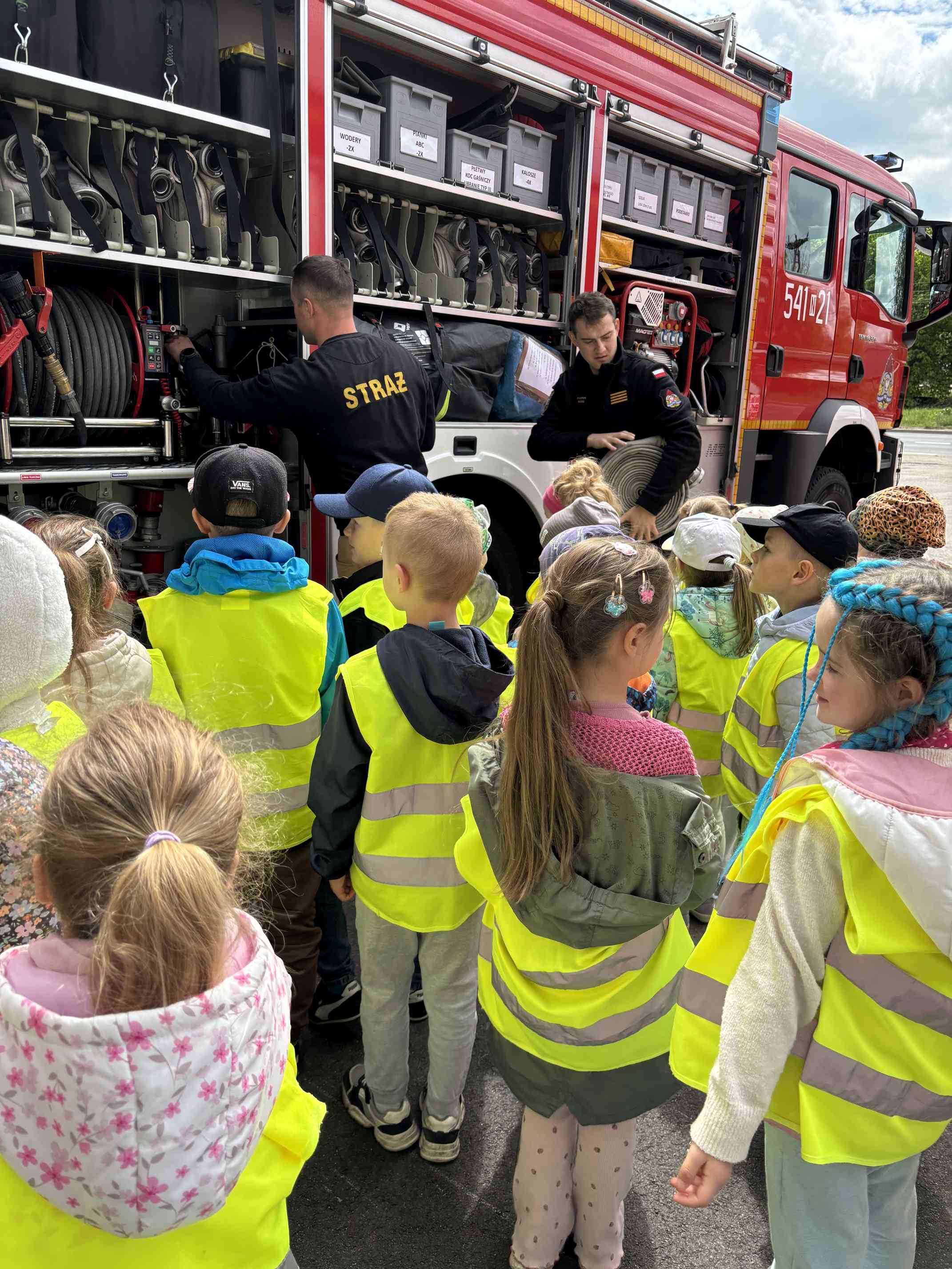 19 maja br. piską straż pożarną odwiedziły przedszkolaki z Przedszkola Miejskiego „Zielona Kraina” w Rucianem-Nidzie. Z zachwytem zwiedzały komendę, chłonąc jednocześnie wiedzę przekazywaną przez strażaków. Zapoznały się z pracą Stanowiska Kierowania Komendanta Powiatowego w Piszu, a także poznały tajniki pracy strażaka z myślą o ugaszeniu pożaru. Jak zwykle największą frajdą była zabawa z wodą. Radości i uśmiechom nie było końca. Z nieoficjalnych informacji wiemy, iż większość dzieci deklaruje, że w przyszłości zostaną strażakami – możemy być spokojni o przyszłość formacji :)