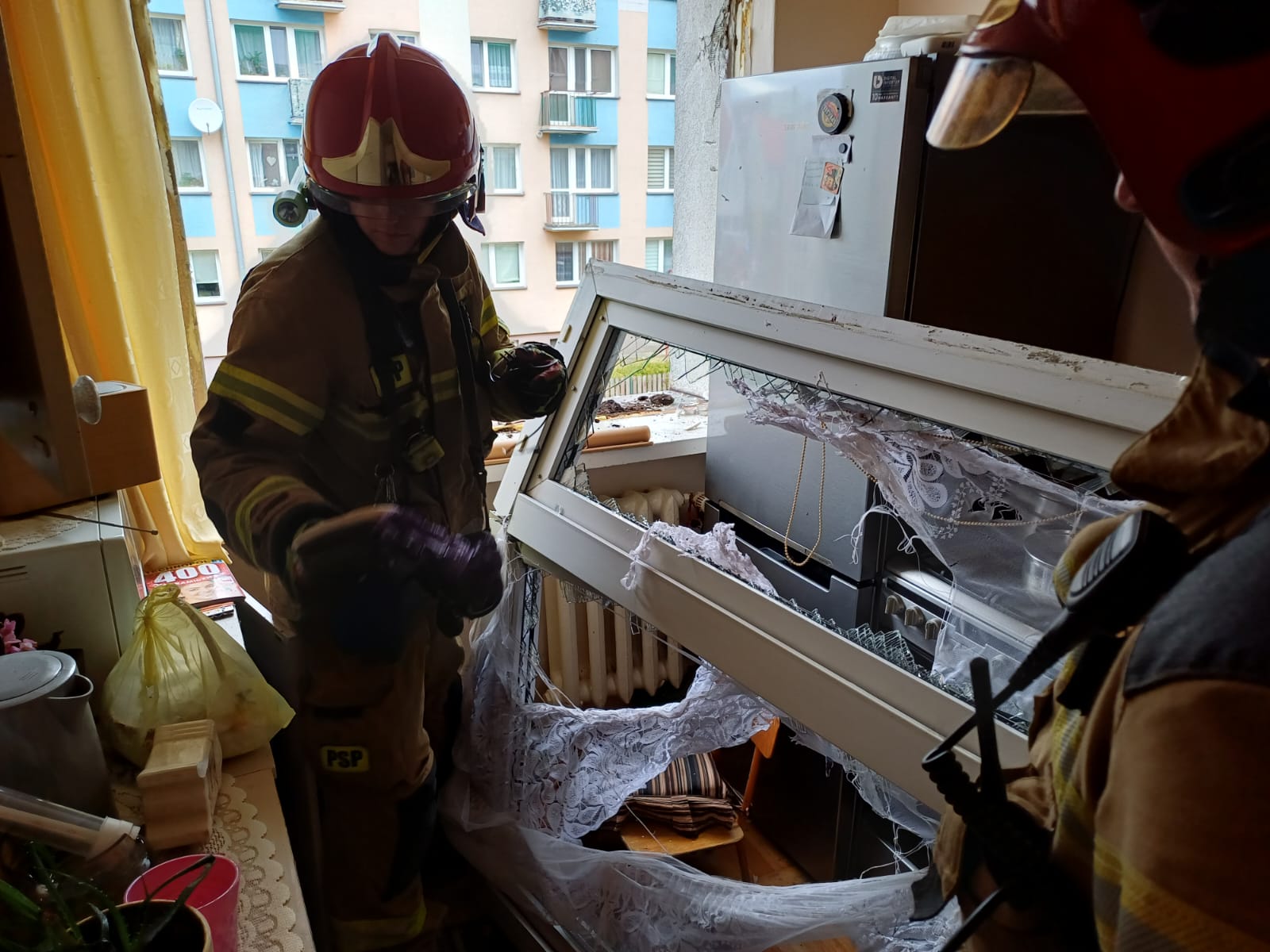 Po dotarciu na miejsce zdarzenia strażacy potwierdzili informacje zawarte w zgłoszeniu. Przed ich przybyciem z budynku ewakuowało się 14 osób dorosłych. Na klatce schodowej zastano lokatorkę mieszkania, w którym doszło do wybuchu - kobieta samodzielnie opuściła lokal.
