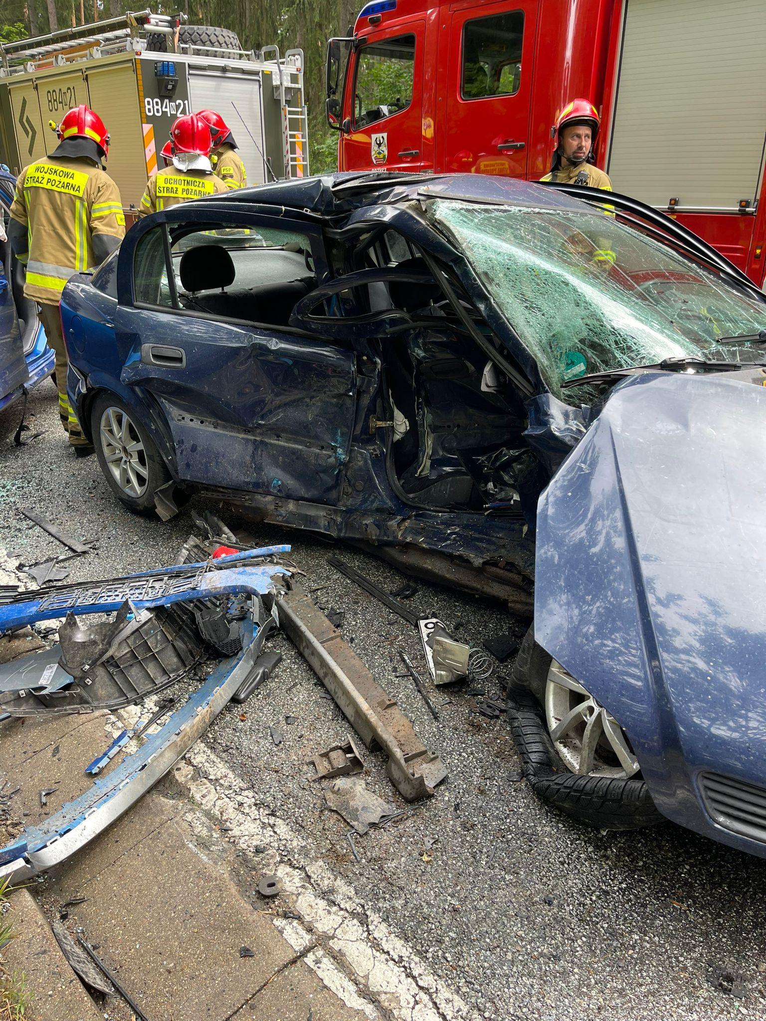 Zderzenie dwóch samochodów osobowych na trasie Orzysz - Ełk
