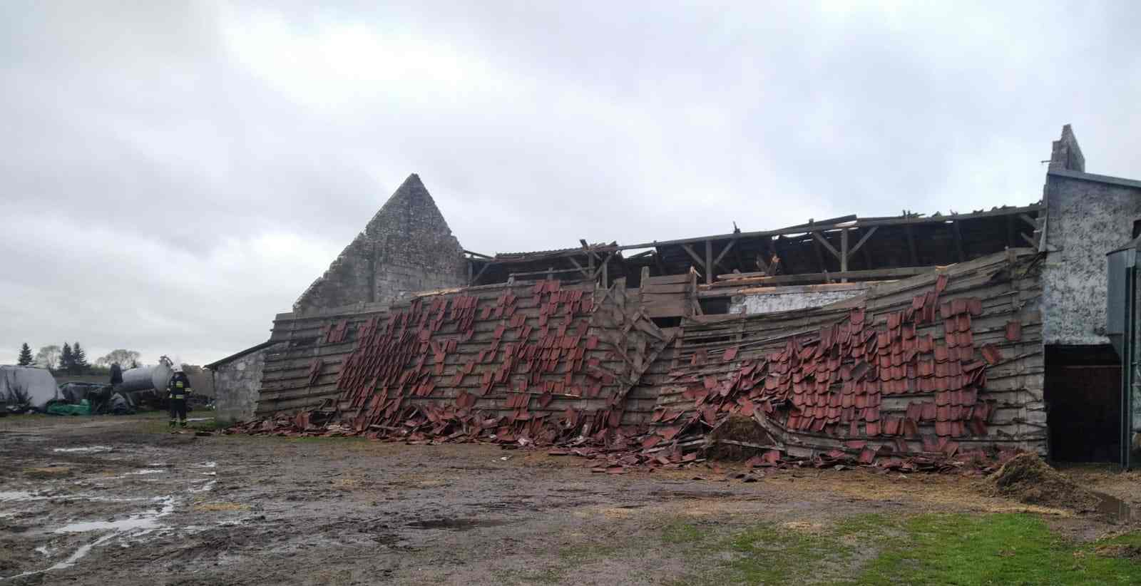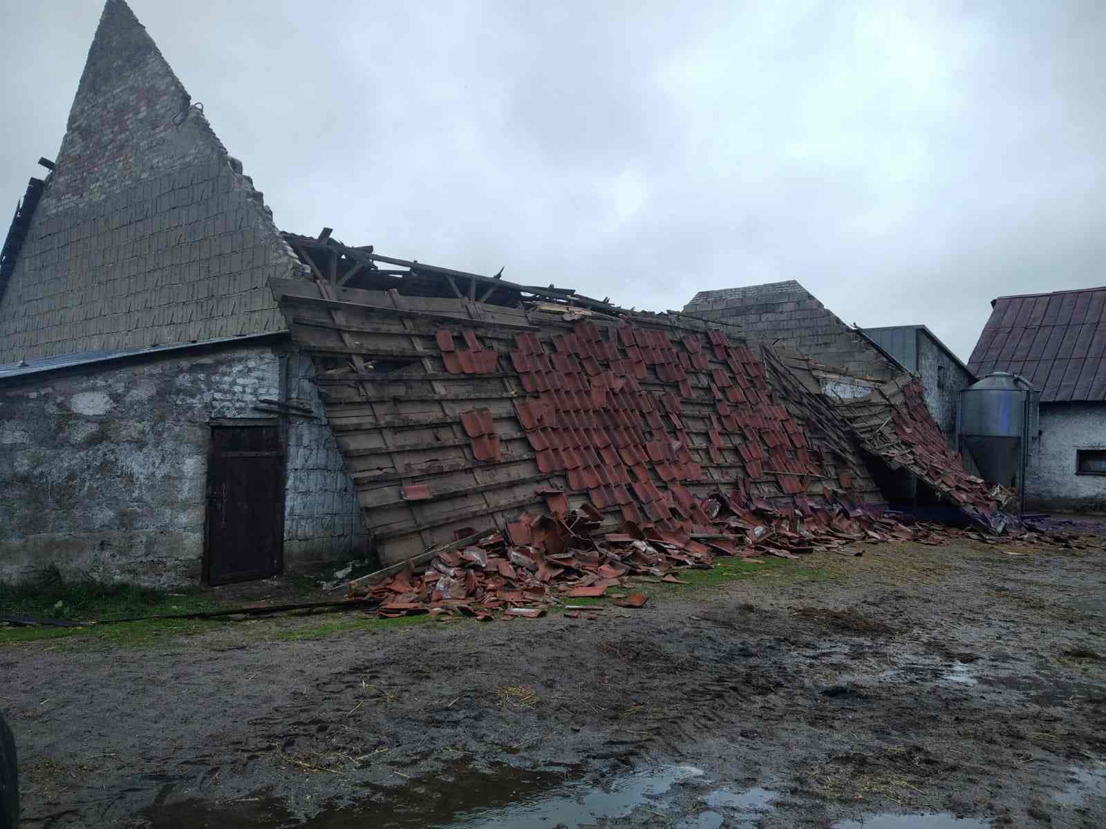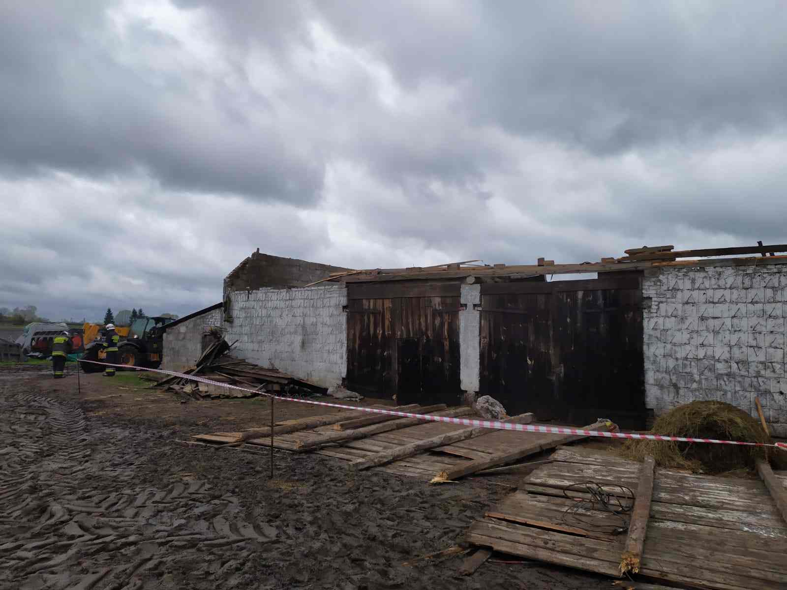 Silny wiatr zerwał dach na budynku inwentarskim.