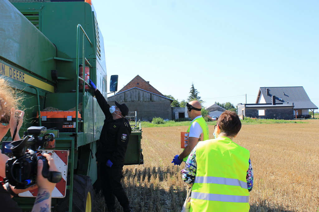 Jak co, w akcji w ramach „Bezpieczne żniwa”, przedstawiciele Okręgowego Inspektoratu Pracy, Kasy Rolniczego Ubezpieczenia Społecznego i Komendy Powiatowej Państwowej Straży Pożarnej w Pleszewie wyjechali na pola naszego powiatu, przez wizytację i kontrolę kombajnów, ciągników i maszyn rolniczych tegorocznych . Celem tej kacji było śniadanie w sprawie bezpieczeństwa i higieny pracy oraz przepisów przeciwpożarowych podczas prac rzepowych. Strażacy sprawdzali również stan i czystość elementów maszyn - najbardziej newralgicznych i narażonych na pojawienie się ognia. Jak się mówi, Niestandardowa maszyna była znakomicie do żniw przygotowana, a jedyną nieprawidłowością z zakresu regulacji ochrony przeciwpożarowej, jakąś czasem zdarzało się napotykać, był brak nośności legalizacji produkcji się w pojazdach gaśnic. Podczas wizyt lub krótkich instruktaż z zasad BHP oraz przepisów przeciwpożarowych i pozostawiono materiały informacyjno - prewencyjne. W tym roku również naszej akcji przyglądała się telewizja „Wieści rolniczych”, przygotowanie reportaż o bezpieczeństwie w czasie prac żniwnych.