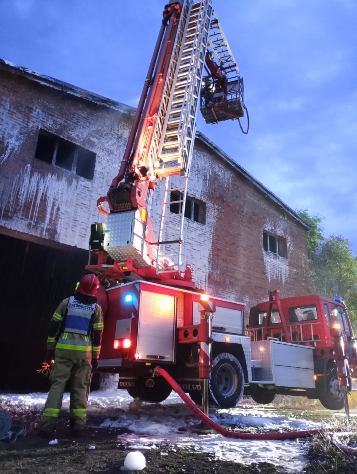 Pierwsze zdarzenie zgłoszono w piątek 21 lipca około godziny osiemnastej trzydzieści. Na jednej z posesji w Kościelnej Wsi została uwięziona młoda sarna. Przybyli na miejsce strażacy uwolnili więc zwierzę i wypuścili w pobliskim lesie. Kolejne zdarzenie wymagało od strażaków znacznie więcej wysiłku. Kilka minut po godzinie dwudziestej zauważono gęsty, czarny dym wydobywający się z wnętrza byłej cegielni w Lenartowicach. Kiedy strażacy dotarli na miejsce pożaru okazało się, że płoną opony, wyrzucone w jednym z pomieszczeń. Zagrożony przez gwałtowny ogień był nawet dach budynku. Na palące się opony natychmiast podano dwa prądy piany gaśniczej tłumiąc pożar. Jednocześnie podano jeden prąd piany na zagrożony dach. Po całkowitym ugaszeniu pożaru strażacy oddymili pomieszczenia i sprawdzili kamerą termowizyjną pogorzelisko oraz nadpalony dach.
