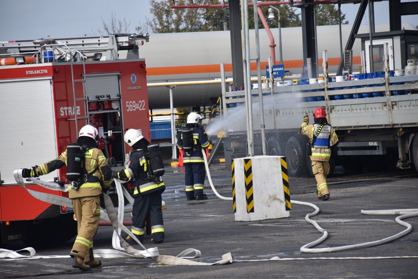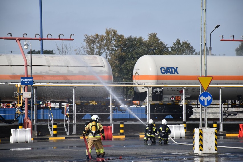 W chwili przybycia pierwszych jednostek ochrony przeciwpożarowej uruchomiony został system zraszania. Jednocześnie płomień i wysoka temperatura stwarzały bezpośrednie zagrożenie dla stojących w pobliżu dwóch naczep z przygotowanymi do transportu butlami z gazem (około 480 sztuk). Niezwłocznie przystąpiono do działań. Ratownicy błyskawicznie przygotowali linie gaśnicze i zapewnili sobie zaopatrzenie wodne, dzięki czemu przez cały czas chłodzili uszkodzoną cysternę oraz wszystkie pobliskie obiekty.