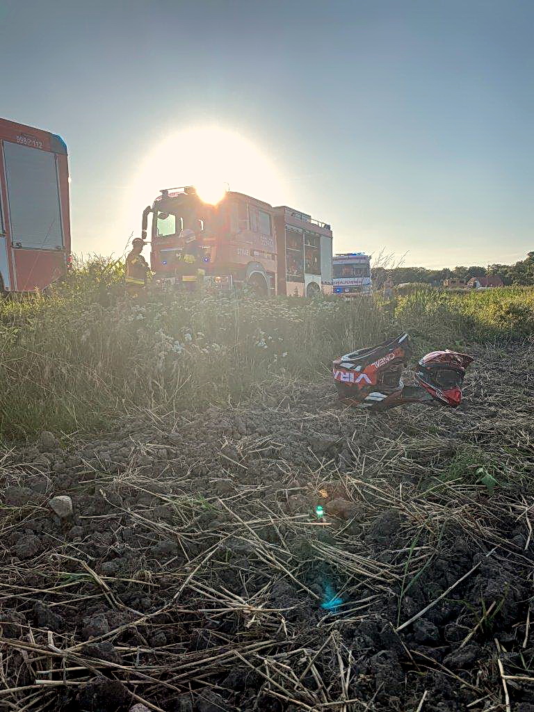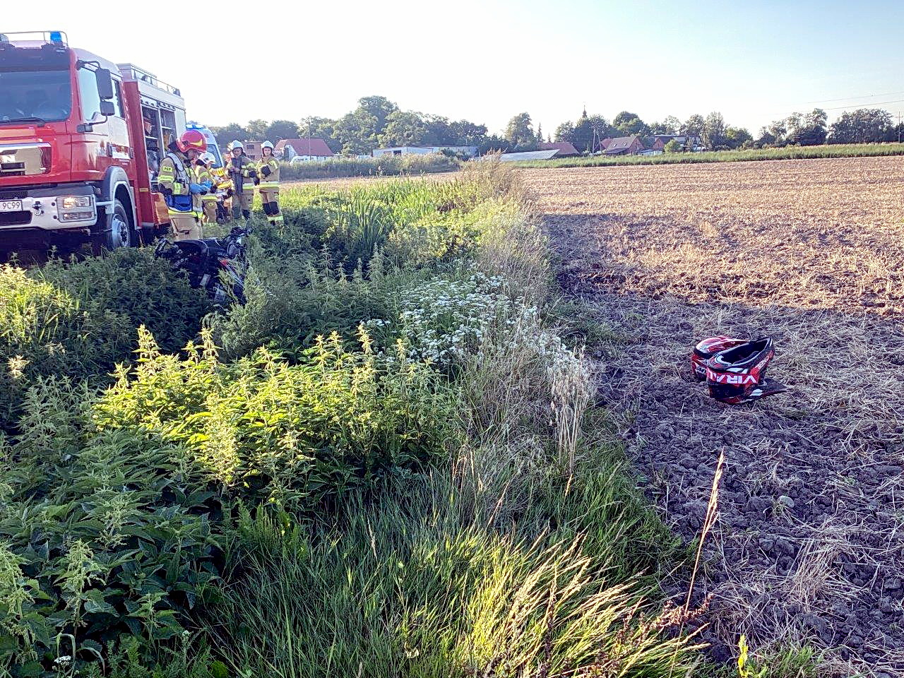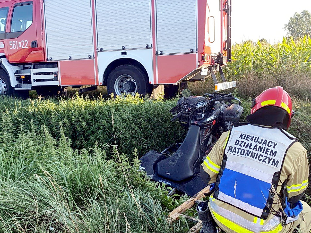 Pierwsze zgłoszenie wpłynęło z miejscowości Czerminek, tuż przed godziną osiemnastą. Płonęły tam pozostałości roślinne. Wysłani na miejsce strażacy z Jednostki Ratowniczo – Gaśniczej w Pleszewie i Ochotniczych Straży Pożarnych z Gołuchowa i Kars błyskawicznie opanowali pożar. Jednak nim zakończyło się dogaszanie dyspozytor Stanowiska Kierowania Komendanta Powiatowego PSP w Pleszewie otrzymał informację o wypadku dwóch młodych mężczyzn jadących quadem w okolicy Czermina. Na miejsce wypadku natychmiast udał się kolejny zastęp z pleszewskiej Jednostki Ratowniczo-Gaśniczej, zastęp z Ochotniczej Straży Pożarnej w Czerminie oraz zespół ratownictwa medycznego i policja. Strażacy zabezpieczyli teren zdarzenia wraz z uszkodzonym quadem. Jednocześnie udzielili uczestnikom wypadku pierwszej pomocy. Następnie poszkodowanych przekazano przybyłemu na miejsce zespołowi ratownictwa medycznego, który zdecydował o przewiezieniu jednego z nich do pleszewskiego szpitala.