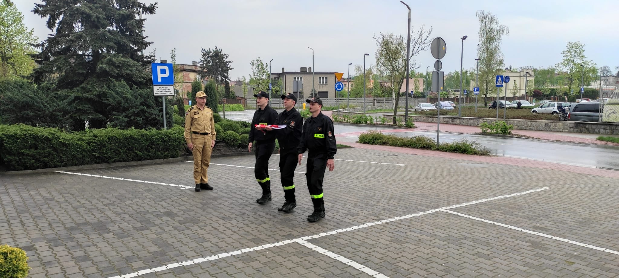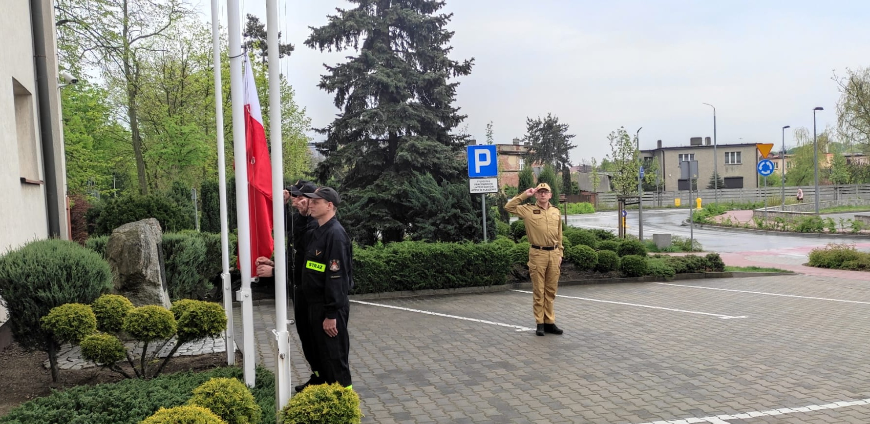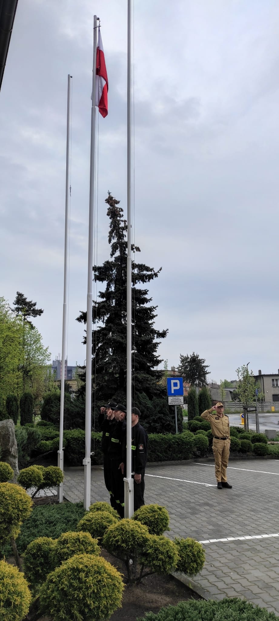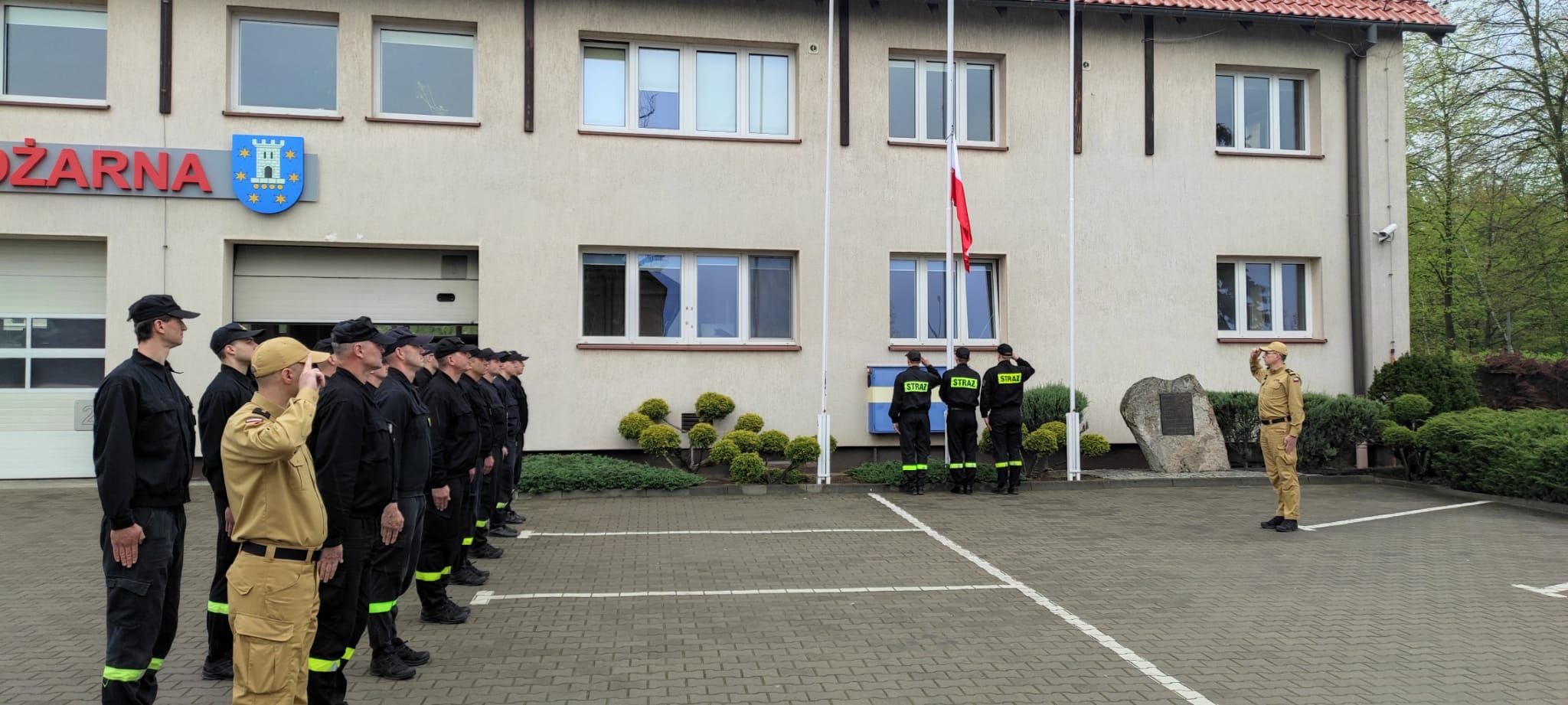 DZIEŃ FLAGI RZECZYPOSPOLITEJ POLSKIEJ - UROCZYSTE PODNIESIENIE FLAGI PAŃSTWOWEJ W PLESZEWSKIEJ KOMENDZIE PSP