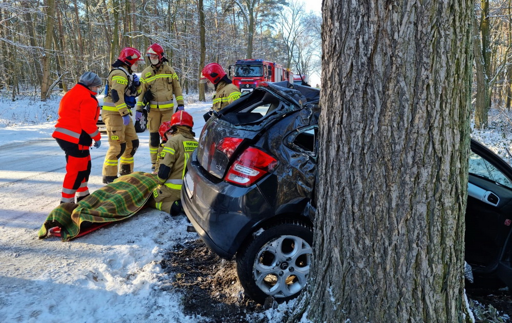 22 stycznia, kilka minut po godzinie dziesiątej trzydzieści, dyspozytor pleszewskiego Stanowiska Kierowania Komendanta Powiatowego Państwowej Straży Pożarnej otrzymał informację o aucie osobowym, które w Brzeziu uderzyło w przydrożne drzewo.