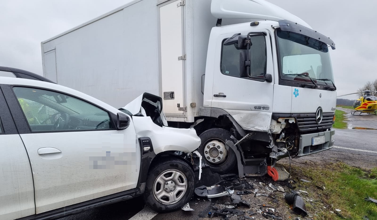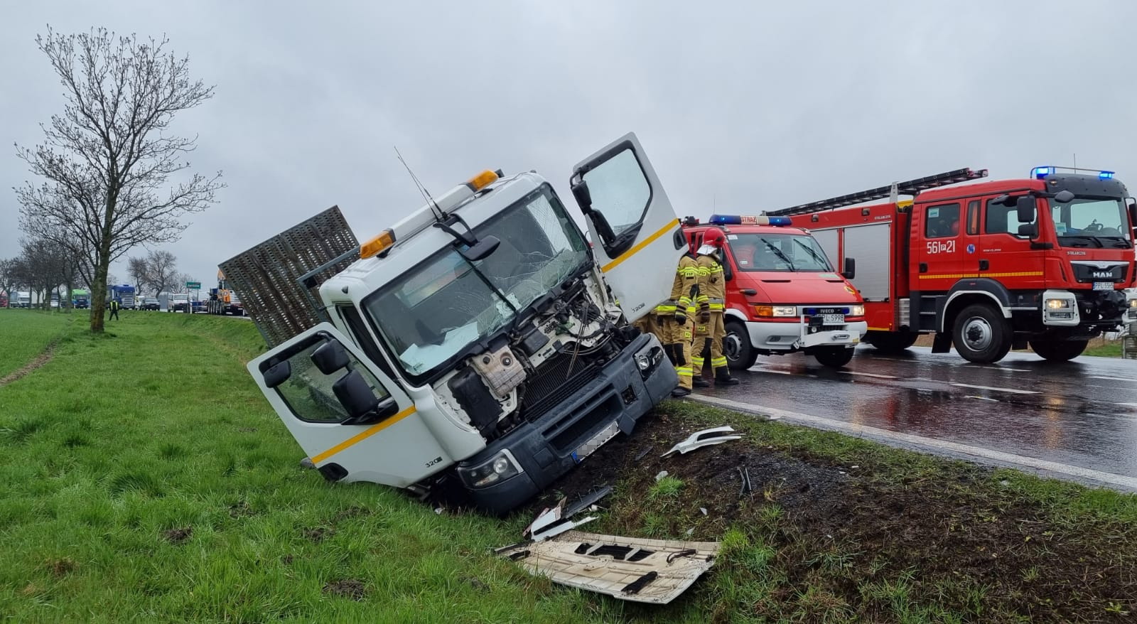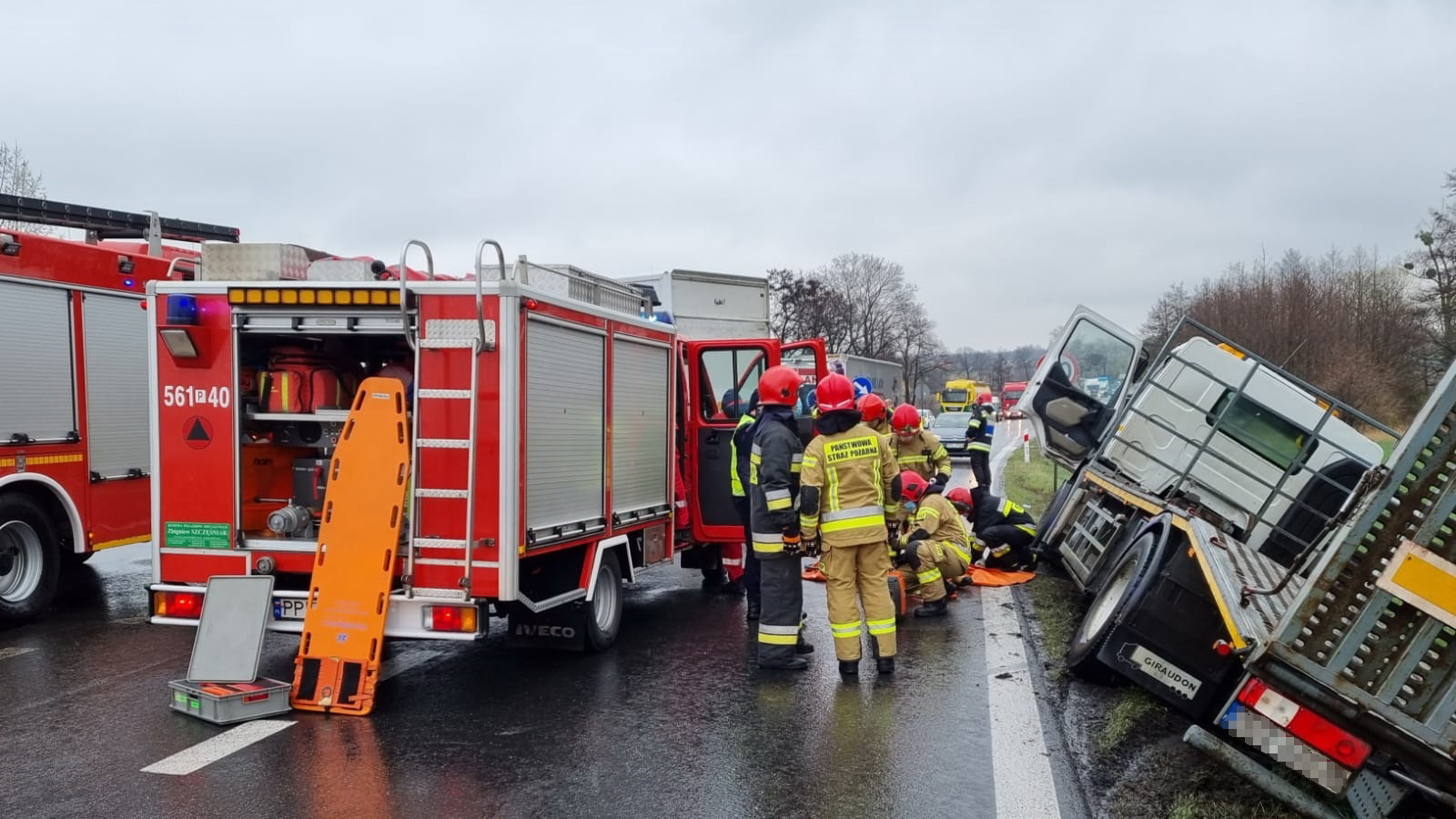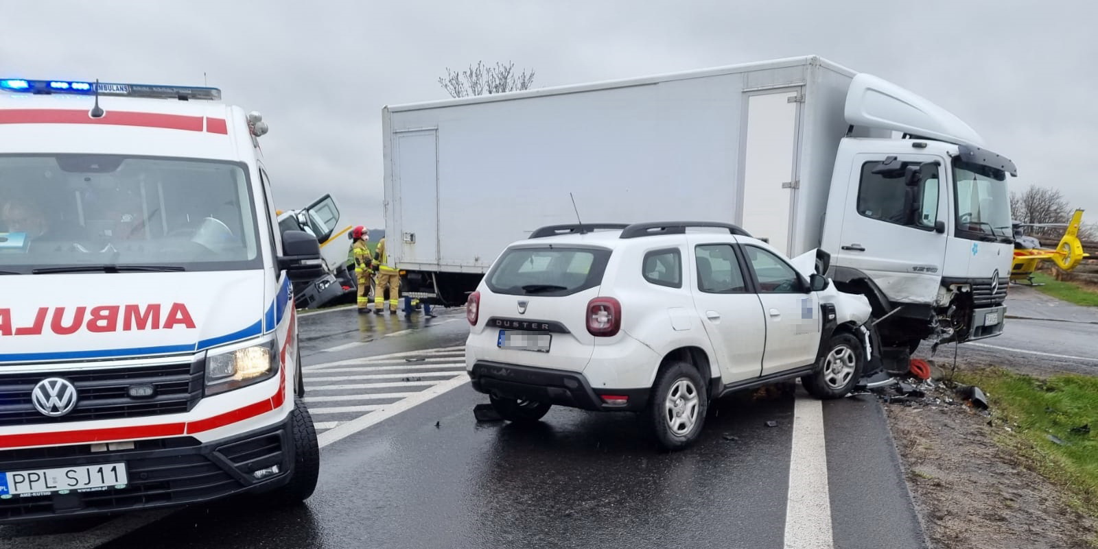 GROŹNY WYPADEK Z UDZIAŁEM DWÓCH CIĘŻARÓWEK I OSOBÓWKI