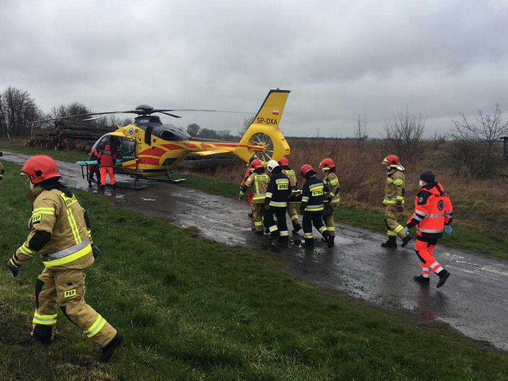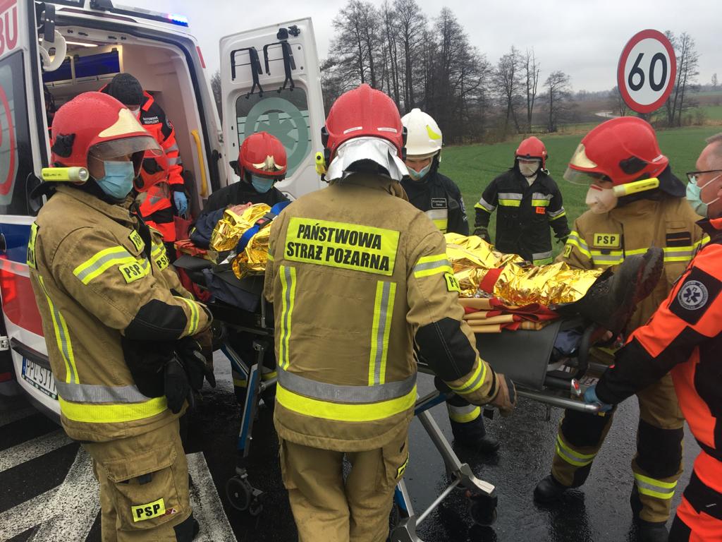 Na miejsce wypadku natychmiast zadysponowane zostały cztery zastępy z Jednostki Ratowniczo – Gaśniczej w Pleszewie, zastęp ratownictwa technicznego z Jednostki Ratowniczo – Gaśniczej w Ostrowie Wielkopolskim oraz zastępy z Ochotniczych Straży Pożarnych z Pleszewa, Kowalewa i Sowiny Błotnej. Na pomoc poszkodowanym wyruszyły także zespoły ratownictwa medycznego, Lotnicze Pogotowie Ratunkowe i policja. Gdy strażacy dotarli na miejsce zdarzenia okazało się, że jedna z rozbitych ciężarówek, po zderzeniu z osobówką, blokuje drogę krajową. Druga ciężarówka natomiast po uderzeniu zjechała do przydrożnego rowu. Wewnątrz tego pojazdu znajdowała się osoba, do której dostęp był utrudniony. Dlatego strażacy jak najszybciej dotarli do poszkodowanego i ewakuowali go. Jednocześnie zabezpieczono lądowisko śmigłowca Lotniczego Pogotowia Ratunkowego, do którego wraz z zespołem medycznym przeniesiono jedną z poszkodowanych osób. Kolejne dwie zabrane zostały przez zespół ratownictwa medycznego. Na zakończenie działań strażacy zneutralizowali i usunęli wycieki płynów eksploatacyjnych powstałe podczas wypadku.