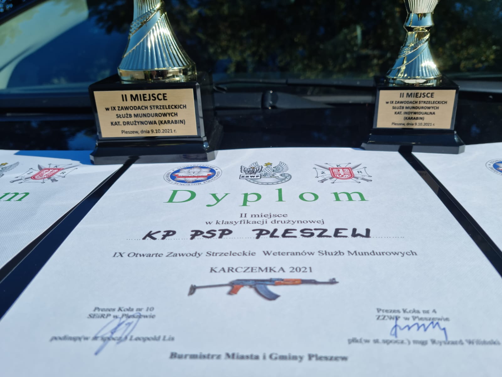 W dniu 9 października 2021 r. na terenie strzelnicy znajdującej się na Karczemce zorganizowane zostały IX Otwarte Zawody Strzeleckie Weteranów Służb Mundurowych. Po raz kolejny swoją drużynę w zawodach wystawiła Komenda Powiatowa Państwowej Straży Pożarnej w Pleszewie. Naszymi reprezentantami w tych zawodach byli: