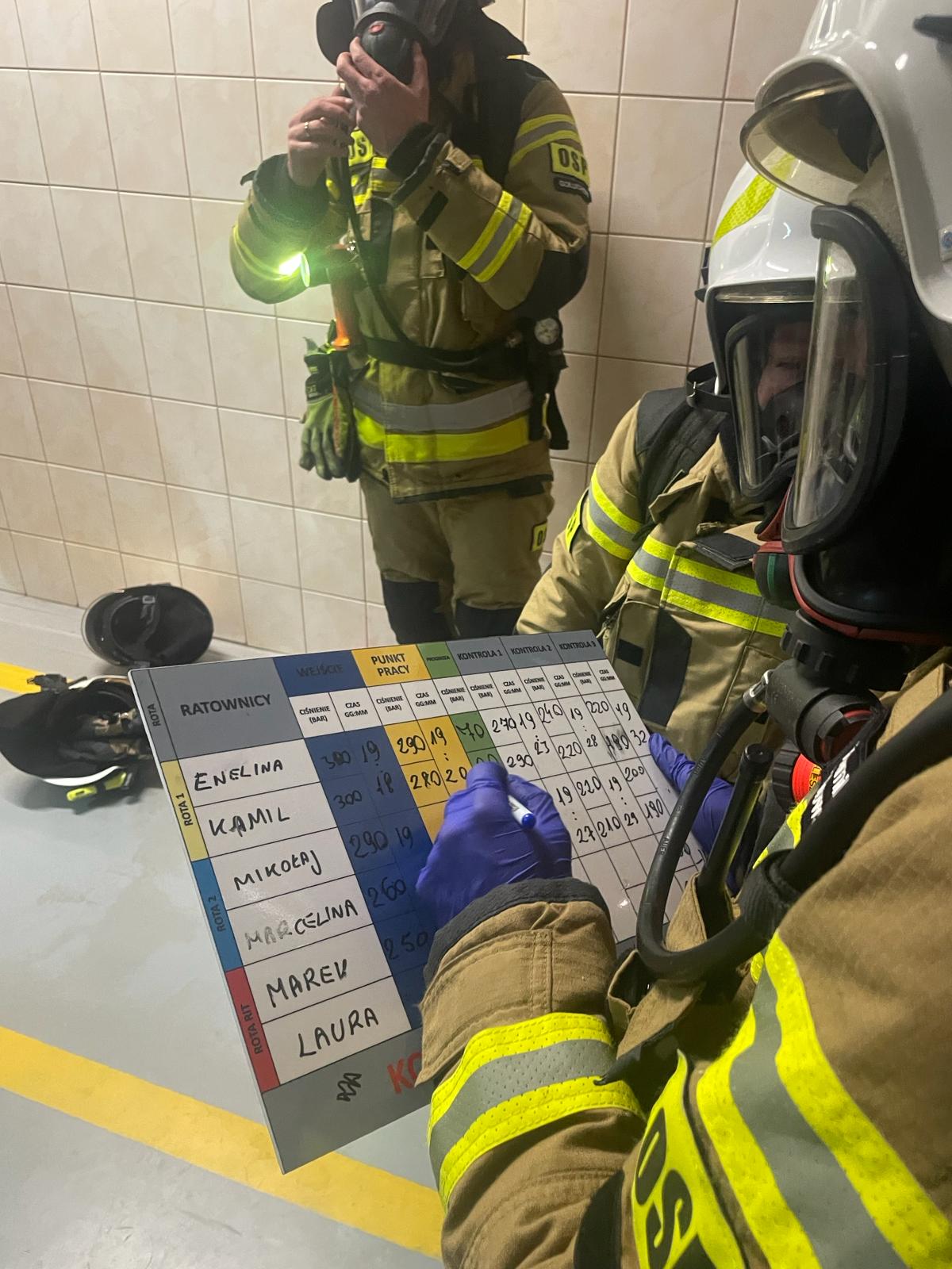 Następnie nabytą wiedzą sprawdzono podczas ćwiczeń praktycznych nadzorowanych przez strażaków z Jednostki Ratowniczo – Gaśniczej PSP w Pleszewie.