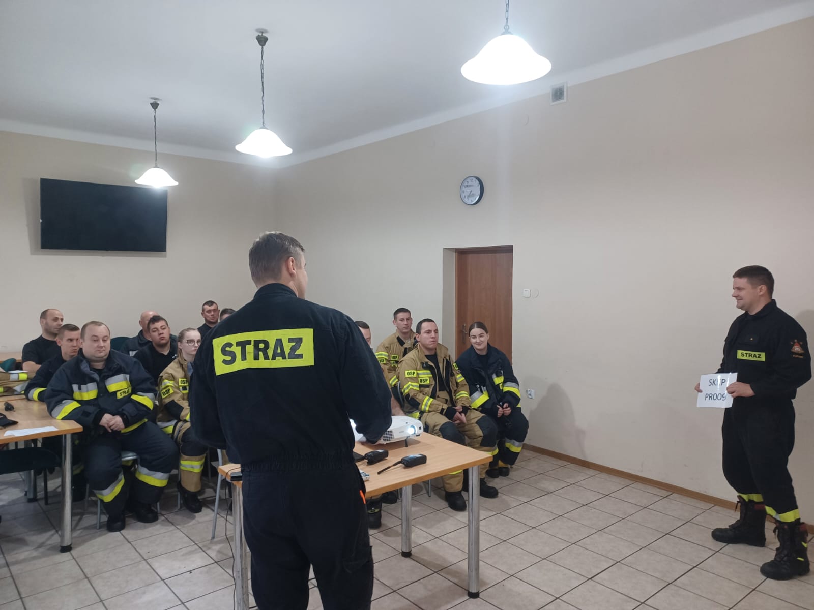 Ostatnim zagadnieniem ćwiczonym przez strażaków była organizacja łączności na terenie prowadzonych działań. Ten element ratownicy omawiali w remizie OSP Kwileń. Głównym wątkiem tego założenia była szczegółowa organizacja łączności z podziałem na działania szczebla interwencyjnego oraz taktycznego. Po omówieniu tych zagadnień zostały one przećwiczone przez strażaków w praktyce z użyciem sprzętu łączności i wykorzystaniu kanałów ratowniczo-gaśniczych (KRG), powiatowego (B009), wojewódzkiego (B012) oraz krajowej sieci współdziałania (B028).