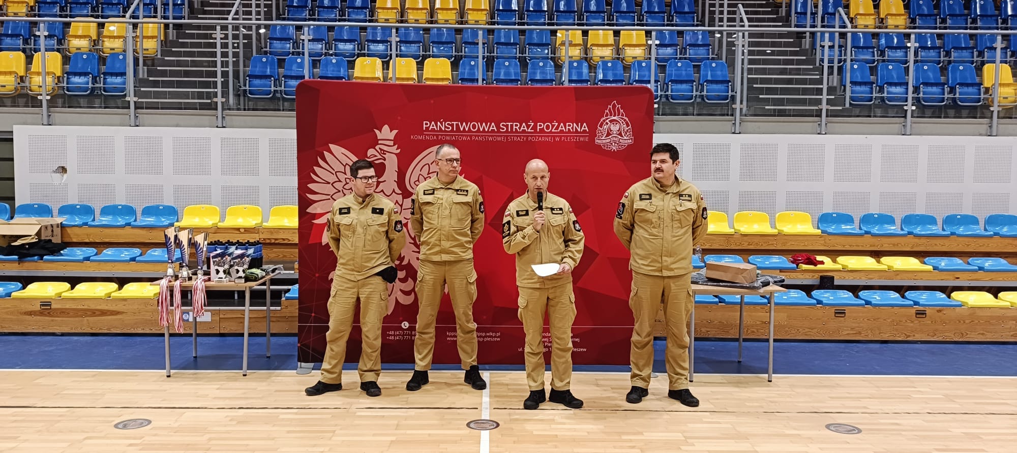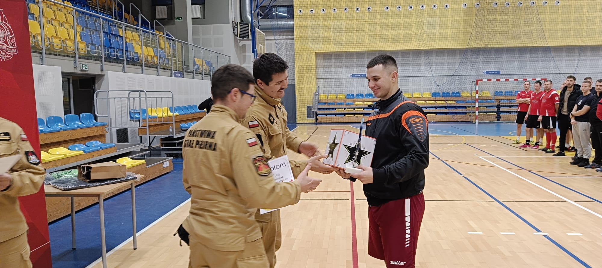Nagrody w imieniu Wielkopolskiego Komendanta Wojewódzkiego Państwowej Straży Pożarnej wręczył bryg. Michał Kierzek – Naczelnik Ośrodka Szkolenia Komendy Wojewódzkiej PSP w Poznaniu, w asyście Komendanta Powiatowego PSP w Pleszewie bryg. Rolanda Egierta, jego zastępcy st. bryg. Waldemara Barańskiego oraz instruktora Ośrodka Szkolenia KW PSP w Poznaniu - asp. Michała Wrembla