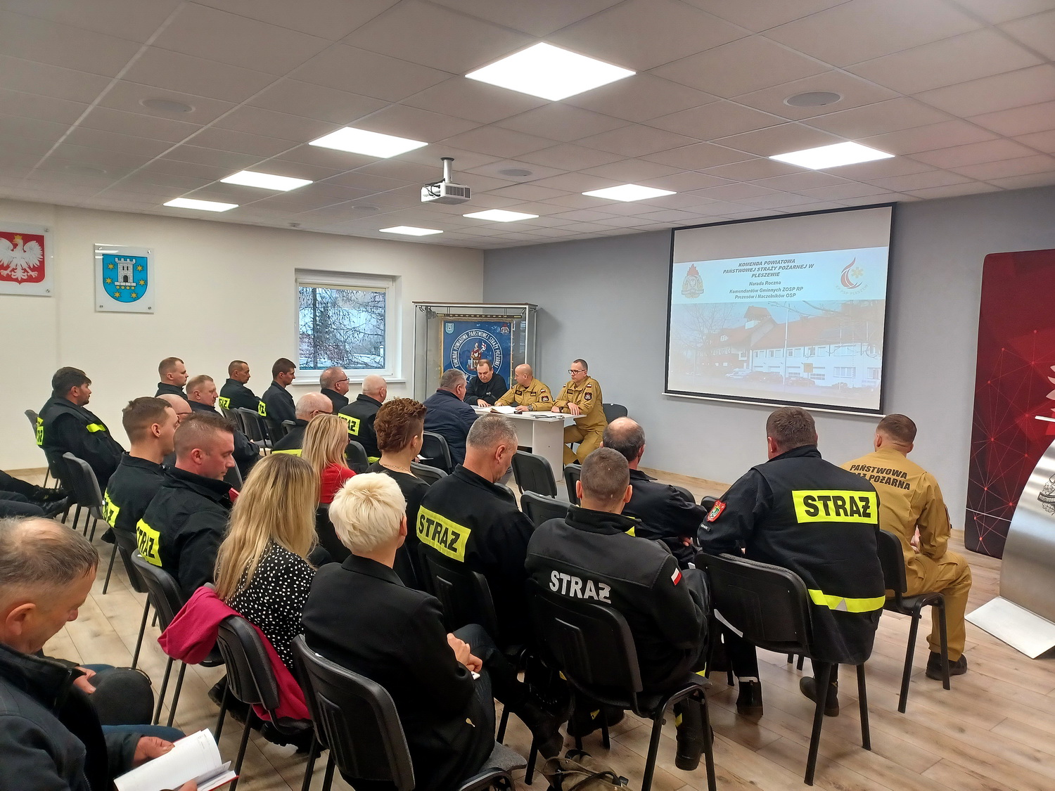 2 marca, w Komendzie Powiatowej Państwowej Straży Pożarnej w Pleszewie, odbyło się zebranie z prezesami i naczelnikami Ochotniczych Straży Pożarnych oraz przedstawicielami samorządów powiatu pleszewskiego.