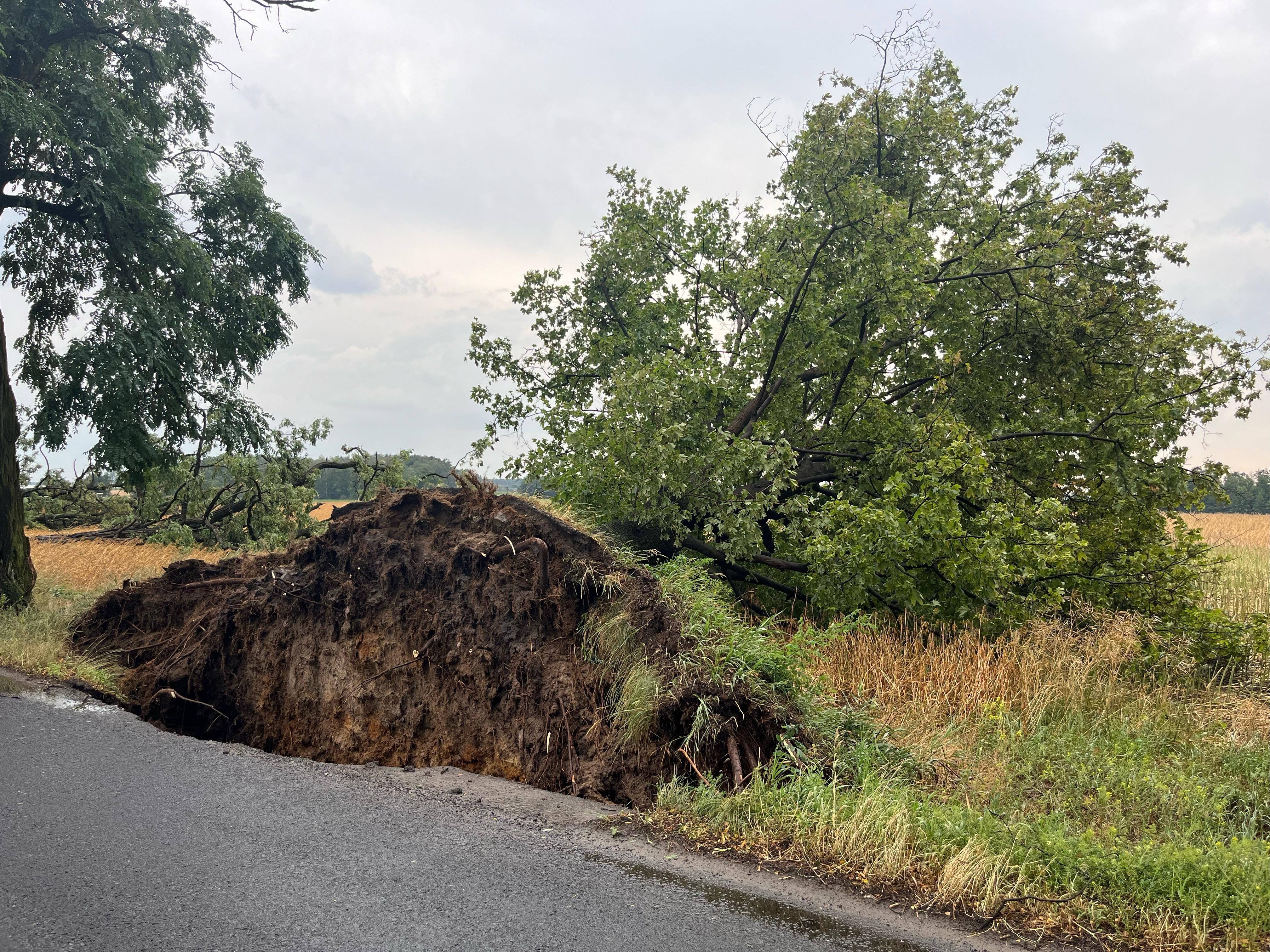 Ponad 50 zgłoszeń otrzymali strażacy z Komendy Powiatowej PSP w Pleszewie w trakcie wichury, która przeszła nad powiatem pleszewskim 10 lipca. Mimo, że silny wiatr wiał zaledwie kilkanaście minut, zdołał wyrwać kilkadziesiąt drzew z korzeniami i uszkodzić wiele linii energetycznych. Wichura nie ominęła także budynków: na 8 budynkach gospodarczych oraz 9 domach mieszkalnych doszło do zerwania lub uszkodzenia dachów. Najtrudniejsza sytuacja była w gminie Czermin oraz gminach Chocz, Gizałki, Dobrzyca
