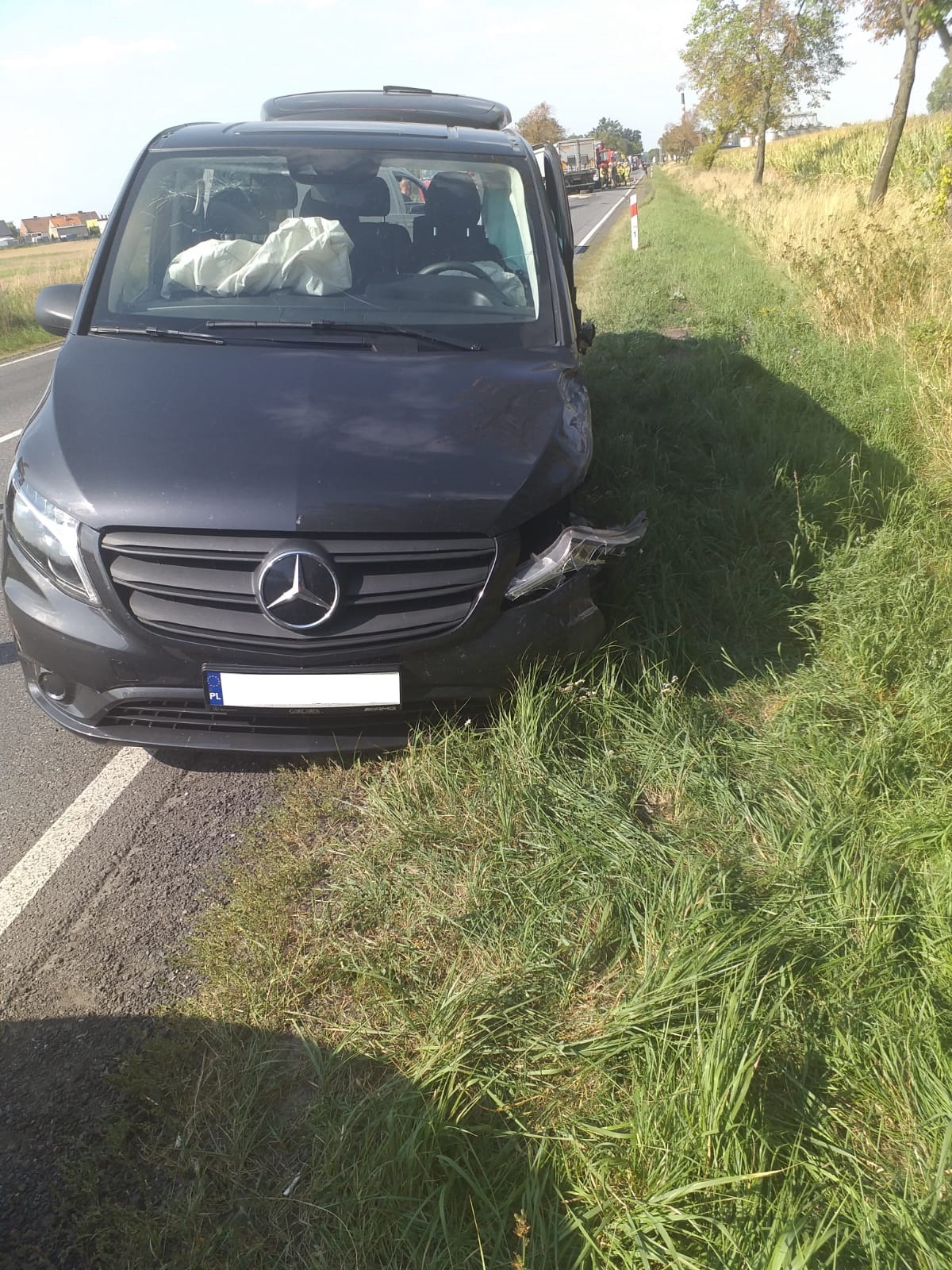 Kilka minut po zakończeniu tej akcji strażacy zostali wezwani na pomoc uczestnikom wypadku, do którego doszło na drodze krajowej nr 11 w Kuczkowie. Zderzył się tam bus osobowy z samochodem ciężarowym. Na miejsce zadysponowane zostały zastępy z Jednostki Ratowniczo Gaśniczej w Pleszewie oraz Ochotniczych Straży Pożarnych z Pleszewa i Bronowa. Strażacy musieli zabezpieczyć uszkodzone auta i udzielić pierwszej pomocy uczestniczącemu w wypadku mężczyźnie. Poszkodowanego przekazano następnie przybyłemu na miejsce zespołowi ratownictwa medycznego, który zdecydował o przewiezieniu go do szpitala.