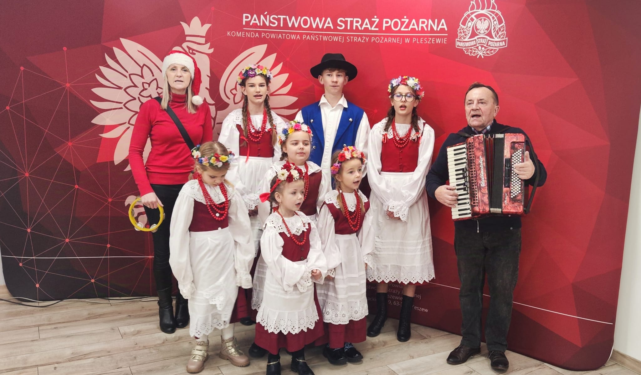 W mikołajowych strojach przybyły do nas uczennice Zespołu Szkół Podstawowych w Lenartowicach, które przyjął Komendant Powiatowy PSP w Pleszewie bryg. Roland Egiert. Kilka dni później odwiedziły nas ubrane w przepiękne ludowe stroje dzieci z Publicznej Szkoły Podstawowej w Kuczkowie, które wraz ze swoimi opiekunami zaśpiewały kolędy. Pleszewskim strażakom świąteczne życzenia na ręce st. bryg. Waldemara Barańskiego - Zastępcy Komendanta Powiatowego PSP w Pleszewie złożyli również przedstawiciele pleszewskiego Powiatowego Urzędu Pracy.