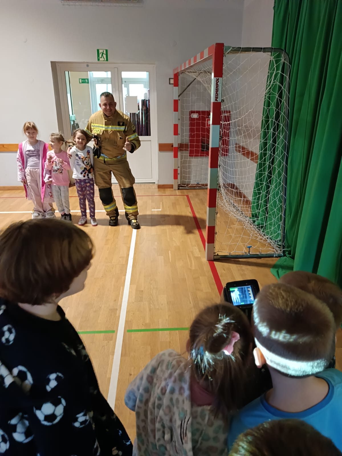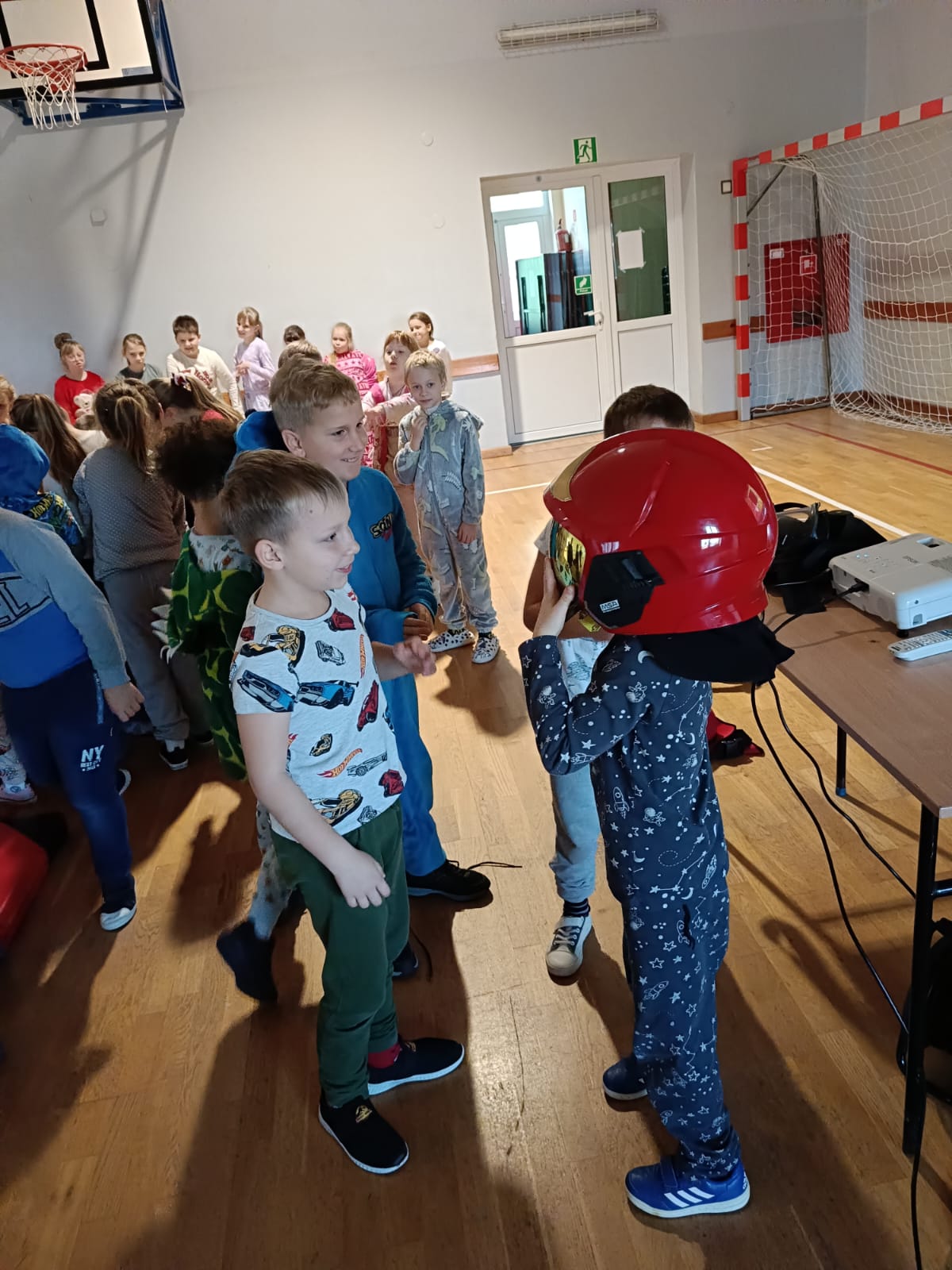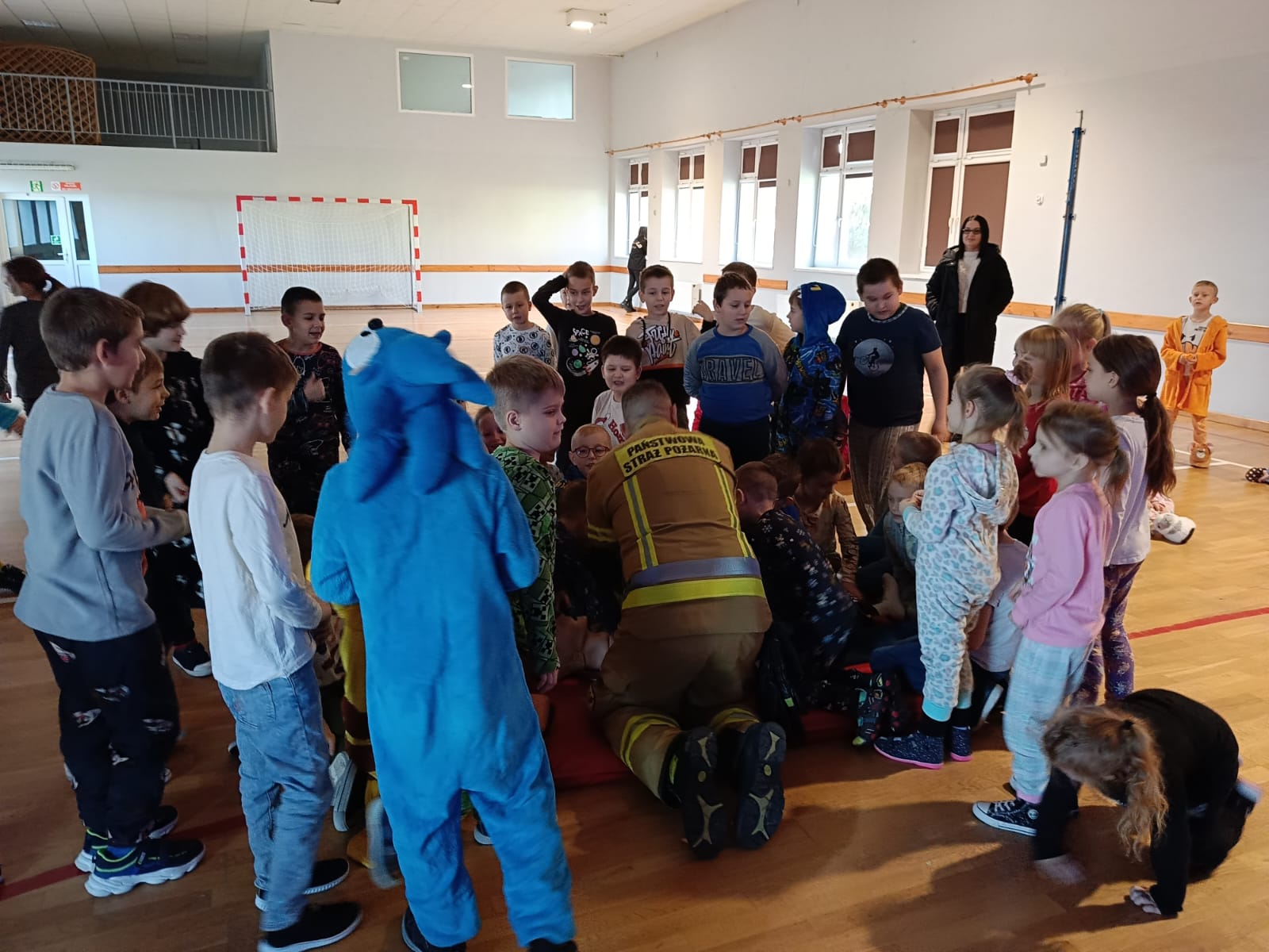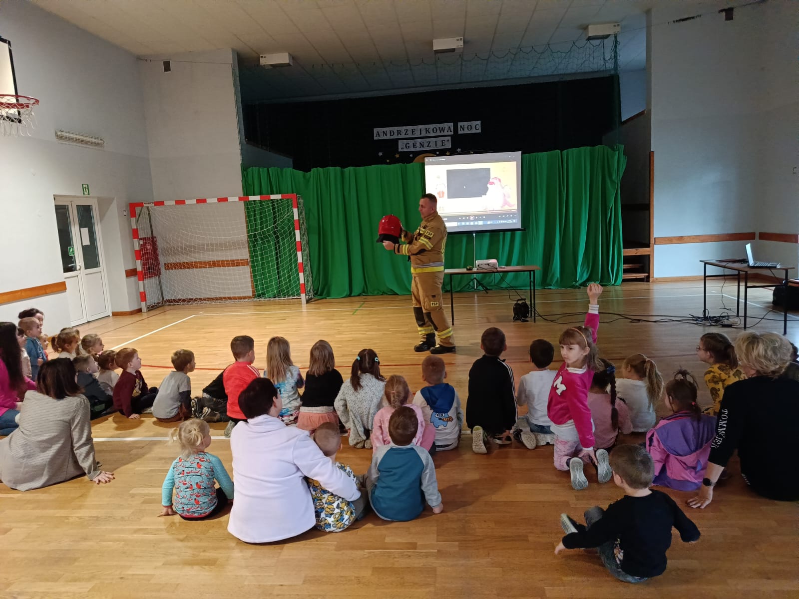Strażacy uświadomili dzieciom jak zachowywać się w sytuacjach różnych zagrożeń, w tym związanych z okresem grzewczym oraz jak powiadomić służby ratownicze i udzielać pierwszej pomocy. Przedszkolaki i uczniowie bardzo aktywnie i żywiołowo uczestniczyli w spotkaniu, podczas którego mogły poznać specyfikę pracy strażaków, umundurowanie strażackie oraz niektóre sprzęty jakimi strażacy dysponują. Dzieci dowiedziały się, że strażacy nie tylko gaszą pożary, ale również są wzywani do wypadków samochodowych, do zalanych domów, powalonych drzew, a także ratują zwierzęta.